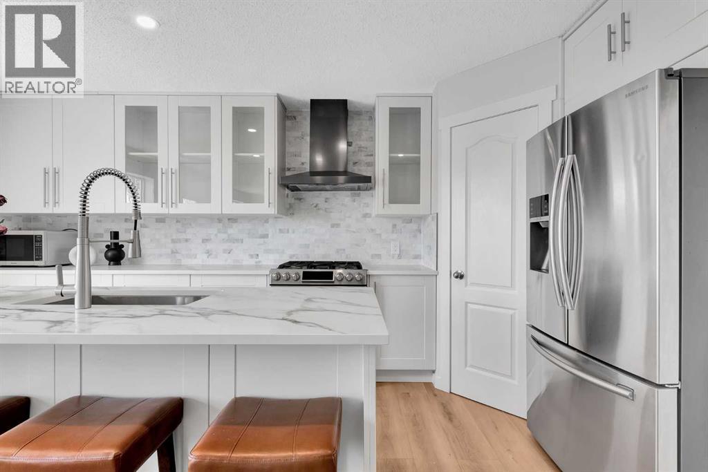 Open House 1-3pm Sat April 25. Welcome to this RENOVATED WALKOUT home, tucked away on a quiet CUL-DE-SAC in the sought-after community of Royal Oak. Offering over 2800 square feet of total living space, this home perfectly blends modern design with everyday functionality. The impressive open-concept main floor features a spacious office, a warm and inviting living room, a sunlit dining area, a gourmet kitchen, and a 2-piece powder room. Wide luxury vinyl plank flooring extends throughout the main level, creating a seamless and elegant flow. The chef-inspired kitchen is equipped with stainless steel appliances, a gas stove, chimney hood fan, quartz countertops, and a convenient walk-in pantry, an ideal setup for both daily living and entertaining. Brand new deck and south-facing backyard, making indoor-outdoor hosting a breeze. Upstairs, the luxurious primary suite serves as a private retreat, bathed in natural light from large windows. Two additional generously sized bedrooms share a well-appointed main bathroom. A versatile bonus room provides additional space for playroom, or media area, while the upper-level laundry room adds everyday convenience. The FULLY FINISHED WALKOUT basement adds tremendous value, offering a fourth bedroom, a full bathroom, and a spacious recreation room, perfect for entertaining guests or enjoying family activities. The fully fenced backyard offers privacy and security, ideal for children and pets. Located close to schools, parks, walking paths, and open green spaces, this home also enjoys proximity to a wide array of shops, restaurants, and convenient access to major routes such as Stoney Trail and Crowchild Trail, ensuring effortless commuting. This is a rare opportunity to own a thoughtfully renovated home in one of Calgary’s most family-friendly neighborhoods. Upgrades completed in 2025 include new cabinets, countertops, flooring, deck, lighting, refrigerator, dishwasher, chimney hood fan, fresh paint, and fully renovated washrooms (id:63190)