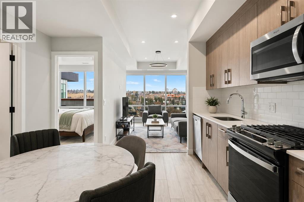 TOP FLOOR living at it's best, this beautifully designed 2-bedroom, 1-bathroom condo offers stunning city views and a layout that truly makes the most of every square foot. The open-concept main living space is bright and inviting, with large windows that flood the home with natural light and create a seamless connection to the private balcony—perfect for morning coffee or unwinding while taking in the skyline. The kitchen is both functional and stylish, featuring quartz countertops, modern cabinetry, stainless steel appliances, with gas stove—ideal for those who love to cook and entertain. The living and dining areas flow effortlessly together, creating a comfortable space for everyday living. Both bedrooms are well-proportioned and versatile, whether you need a guest room, home office, or both. The bathroom is finished with clean, contemporary details that keep the space feeling fresh and timeless.Additional features include a titled underground parking stall and access to excellent building amenities designed for convenience and lifestyle. Located in the heart of Kensington, you’re steps from some of Calgary’s best restaurants, coffee shops, boutique shopping, river pathways, and quick access to downtown—making this the perfect opportunity for first-time buyers, investors, or anyone looking to enjoy inner-city living without compromise. (id:63190)