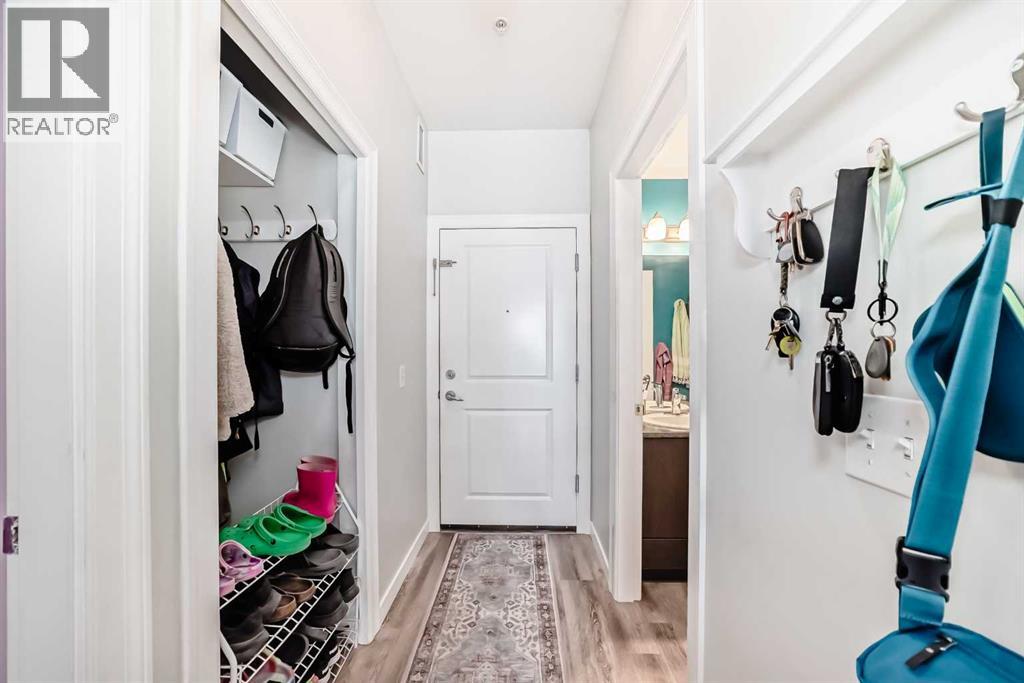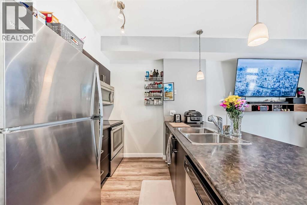 Welcome to this cozy, clean and cute conveniently located ground floor unit in Copperfield! As you enter this unit you have a den/bedroom that is perfect for a home office, bedroom for the kid or a roommate! The central kitchen is the focal point and has stainless steel appliances, a good amount of counter space at the island and opens up to the good sized living room that features sliding doors that lead out to the balcony. The main bedroom is a great size and has plenty of closet space! this unit also has a separate storage locker, a parking stall literally right outside the front door so you can keep an eye on it, there is also a full bathroom, in suite laundry, low condo fees, close proximity to all the areas amenities, transit, schools, 130th Ave, Deerfoot and Stoney Trails and so much more! Great price for a great unit in a perfect location! Come and have a look! (id:63190)