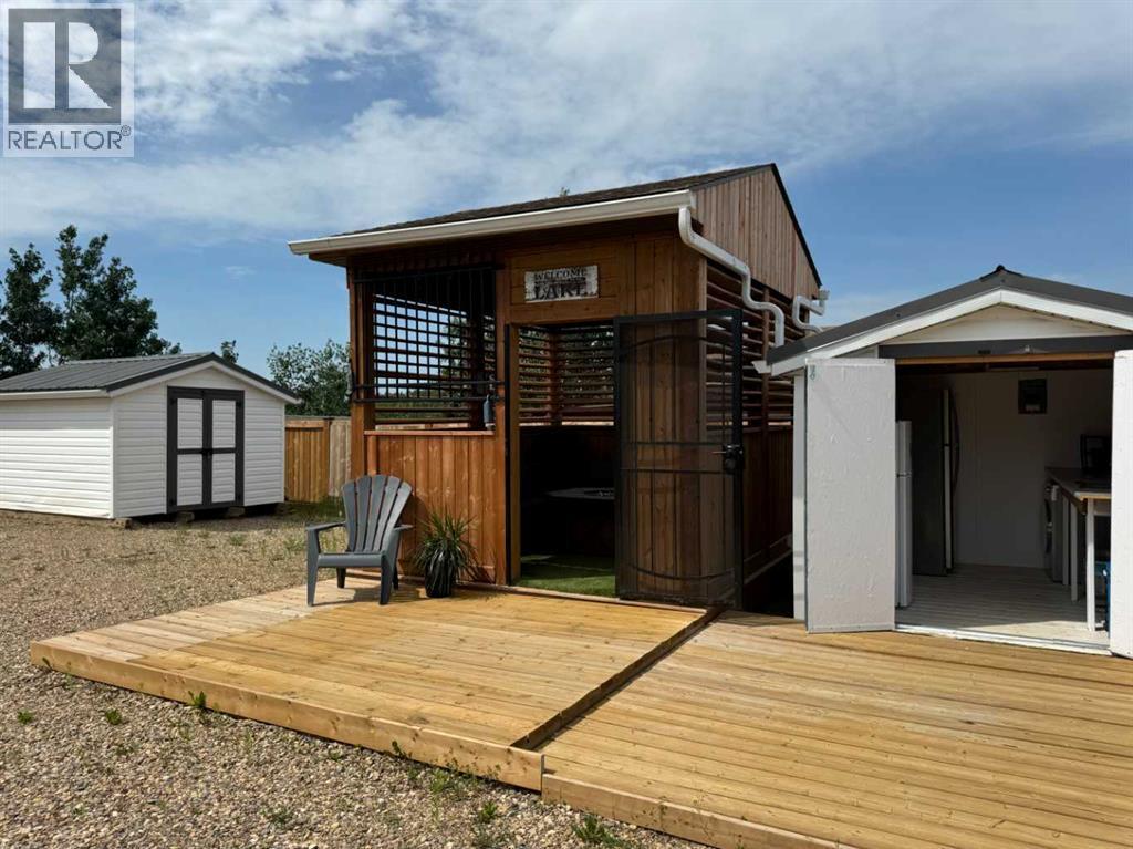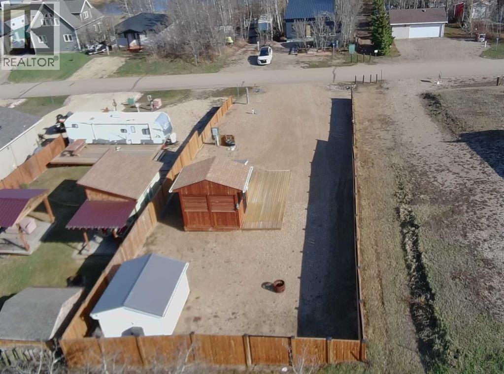 Welcome to 45 Buffalo Lane at the desirable Buffalo Sands, a family orientated and fun, four season lake side community on beautiful Buffalo Lake. This lake lot is fully set up for you to immediately start enjoying featuring low maintenance landscaping, a private gazebo, outdoor kitchen and is walking distance to the lake, playground, basketball hoops, community pond and boat dock. The outdoor fully enclosed 3-season kitchen includes a countertop prep space and sink, x2 fridge/freezer units, a space saving all-in-one washer/dryer unit, efficient sized hot water tank, microwave, and upright cabinet along with additional shelving and storage. The custom-built gazebo features an L-shaped sectional and propane firepit with louvered shutters and turf creating a relaxing oasis for the whole family to enjoy! Dedicated decking off the gazebo and outdoor kitchen create the perfect balance of indoor/outdoor living and provides a generous space to park your holiday trailer. There is another storage shed tucked in the back corner with an area to accommodate a fire pit (currently stored in the shed), set up bean bags and/or tent depending on your needs. Almost fully fenced, the property includes an oversized gate at one end that allows access to the walking path that flanks the east side of the property, with the convenience of NO neighbors to the back. There are 2 RV hook-ups and is serviced with municipal water and sewer (currently set up to accommodate a holiday trailer) and offers efficient drainage from the gravel that was added through-out when this lot was developed. Also unique to this lot is the extra wide approach/culvert system and generous parking space. Have a boat or considering one? No problem, there is a 4000lbs boat slip included with this property! Located 5 minutes from the Rochon Sands Provincial Park and Ol’ McDonalds Resort and Campground, only a 20-minute drive to Stettler and just 2hrs from either Calgary and Edmonton! All that is left for you to do is un pack and start enjoying the LAKE LIFE! (id:63190)