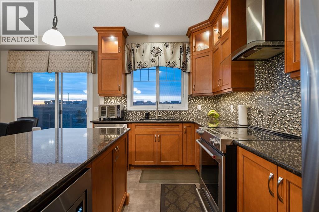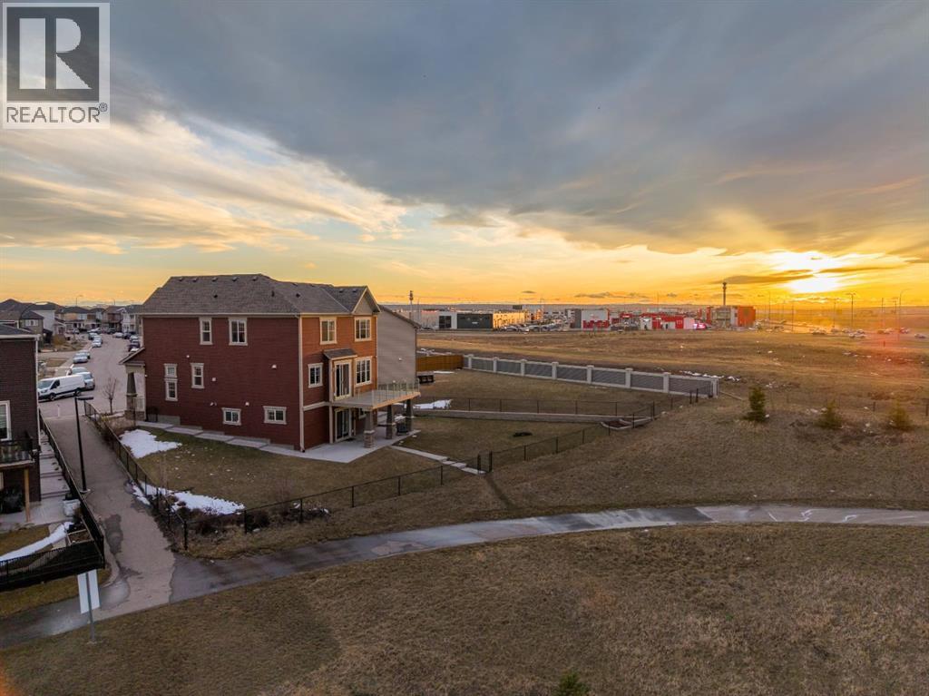 Welcome to this extensively upgraded home by Mattamy Homes, situated on a HUGE pie-shaped lot backing onto green space in the highly sought-after community of Cityscape. Featuring a 2-bedroom basement legal suite , this property offers exceptional value, functionality, and investment potential.Boasting over 3,076 SQFT of total living space with 9-ft ceilings on all levels, this home showcases premium builder upgrades throughout. The main floor features real hardwood flooring, upgraded railings, and a bright open-concept kitchen and living area. The kitchen is fully upgraded with ceiling-height cabinetry (34”), granite countertops, built-in appliances, tray ceilings, ceiling speakers, and glass-lit cabinets.The south-facing backyard floods the home with natural light and opens onto a large, fully permitted deck with frameless glass railing and waterproof flooring—perfect for entertaining.Upstairs, enjoy a spacious family room with soaring ceilings and a floor-to-ceiling stone fireplace, along with access to a private front balcony. The top level features 3 bedrooms + built-in study area, including a luxurious primary retreat with a spa-inspired ensuite offering a frameless glass shower, jacuzzi tub, double vanity, and walk-in closet. Vaulted and tray ceilings add an extra touch of elegance.The fully permitted walkout basement legal suite includes:2 bedroomsSeparate entranceIndependent heating systemHigh-end kitchen with granite countertopsAdditional features include:Air conditioningOver $100K in landscaping & exterior upgradesSprinkler system, concrete pathways & retaining wallsFully fenced yard with rear pathway accessStorage shedLocated just minutes from shopping, with quick access to Country Hills Blvd and Stoney Trail, and walking distance to scenic pathways, ponds, and parks.A rare opportunity to own a fully upgraded home with income potential—offering more value than building new. (id:63190)