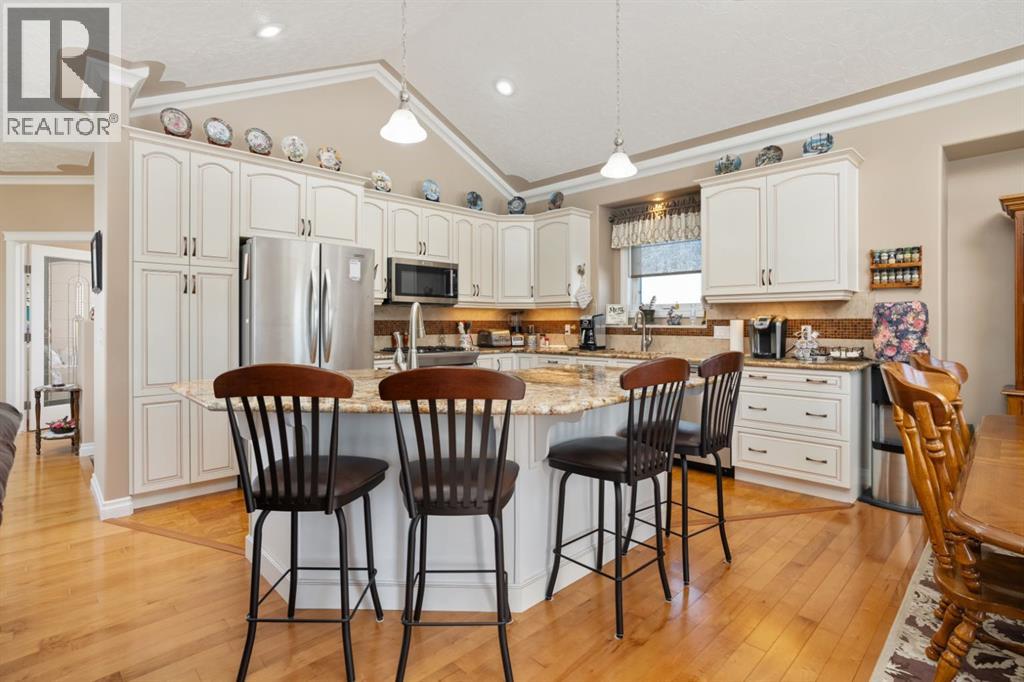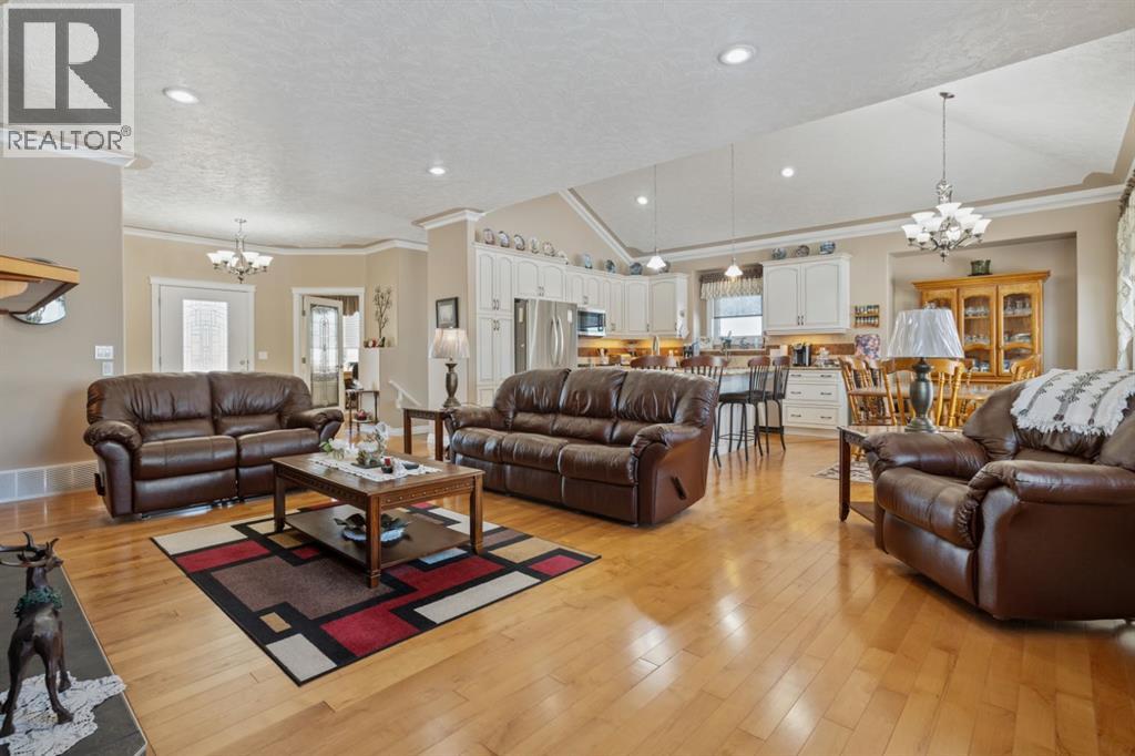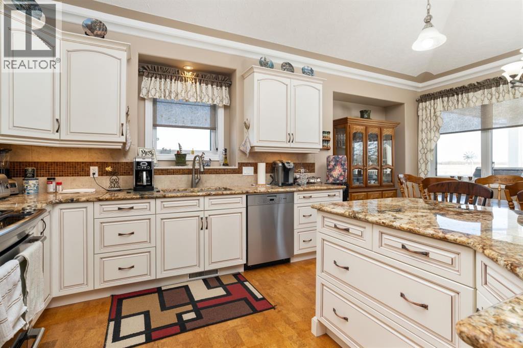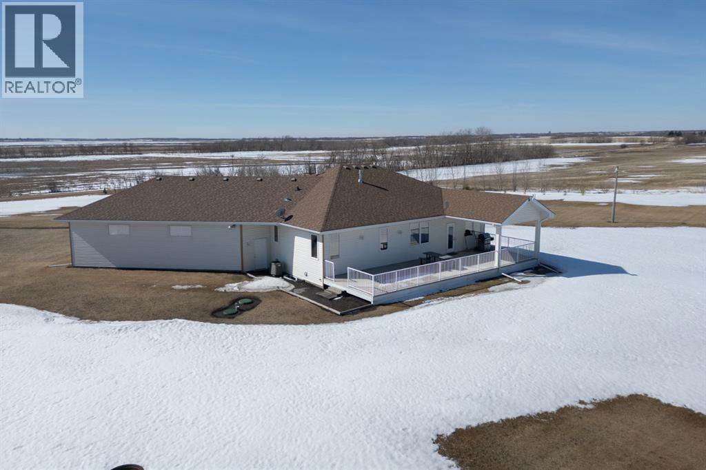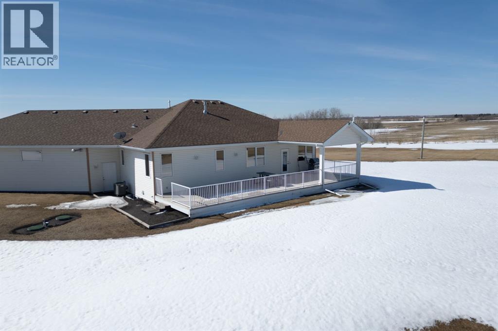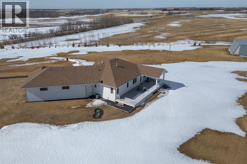 Experience the perfect blend of luxury and tranquility on this stunning 10.01-acre acreage, just 20 minutes from Camrose. This custom-built 1,648 sq ft bungalow shows like new and offers high-end finishes throughout, all set against breathtaking panoramic views of open farmland.Step inside from the inviting front porch into a bright, open-concept living space designed for both comfort and entertaining. Rich hardwood flooring, a cozy gas fireplace, and a striking wall of windows create a warm yet elevated atmosphere while drawing your eye out to the expansive 14x40 Duradeck-covered deck. The chef-inspired kitchen is truly the heart of the home, featuring granite countertops, a massive island perfect for gathering, and the added convenience of a bar sink, making it ideal for hosting family and friends. Plenty of cabinets, a huge dining space, high end appliances and room to entertain. The main floor offers two bedrooms, a 4pc main bath and a spacious primary retreat complete with a walk-in closet and a 3-piece ensuite. Thoughtful details continue with cork flooring in the kitchen and bathrooms, as well as convenient main floor laundry.Downstairs, the fully finished basement expands your living space with a large recreation room, two additional bedrooms, a 4-piece bathroom, a cold room perfect for storing garden harvests or wine, and ample storage.Outside, this property truly shines. Enjoy a 30x50 garden, established saskatoon and raspberry bushes, and a huge quonset for all your storage or hobby needs. The triple attached heated garage with epoxy floors & 2 floor drains adds both function and style, while the RV hookups make it easy to host friends and family for weekend getaways.If you’ve been dreaming of peaceful country living without sacrificing modern comfort, this exceptional property offers it all. A place where wide open skies, quiet evenings, and lifelong memories await. (id:63190)