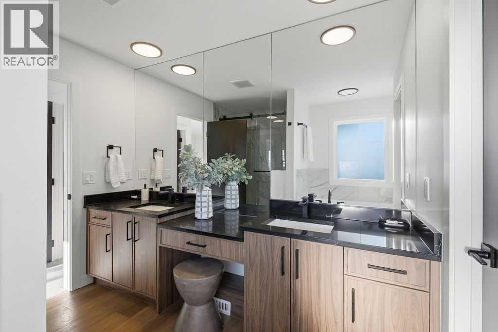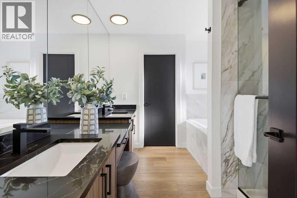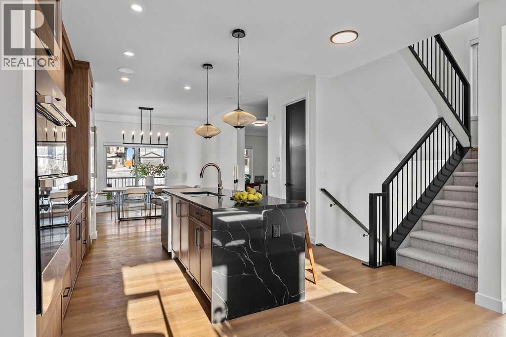 A beautifully crafted new build by Paradiso Homes, this residence in Heritage Hills offers a refined blend of modern design, functional layout, and elevated finishings throughout. With nearly 2,900 sq ft of finished living space, including a fully developed basement with a separate entrance, offering excellent flexibility for extended family or future potential. The main level is thoughtfully designed with an open concept layout that seamlessly connects the kitchen, dining, and living spaces. A chef inspired kitchen anchors the home, featuring sleek cabinetry, quartz surfaces, and a premium appliance package including Dacor, Bosch, and Samsung. The spacious living area with fireplace creates a warm and inviting setting, while a dedicated main floor office adds flexibility for remote work or study. Additional upgrades include a professionally installed security camera system, integrated wiring for sound throughout the home, and electric zebra style blinds, enhancing both comfort and modern convenience. Upstairs, the primary retreat offers a generous footprint, complemented by a walk-in closet and a well-appointed ensuite with dual vanities, a soaker tub, and a separate shower. Two additional bedrooms, a full bathroom, and a conveniently located upper-level laundry room complete the second floor. The fully developed basement adds further functionality with an additional bedroom, full bathroom, recreation space, and a secondary kitchen area, ideal for extended family, guests, or future flexibility. Situated on a 3,573 sq ft lot in the growing community of Heritage Hills, this home stands out with a sizeable backyard and desirable rear lane access, offering added flexibility, functionality, and future potential. Residents enjoy convenient access to local amenities, schools, walking paths, and major routes, including quick connectivity to both Calgary and the mountains via Highway 1A. The nearby Horse Creek Sports Park is planned to bring a future multi-sport recreationa l facility, pathways, and gathering spaces to the area, while a newly announced Rocky View Schools high school is also proposed for the immediate vicinity, further enhancing long term community growth and convenience. Backed by new home warranty coverage, this is an excellent opportunity to own a brand new home without the wait. Experience the difference with Paradiso Homes.. book a private showing with your favorite Realtor® today! *** MORE INVENTORY OPTIONS AVAILABLE *** Showhome Hours: Mon-Thurs 2-8pm & Sat-Sun 12-5pm (id:63190)
