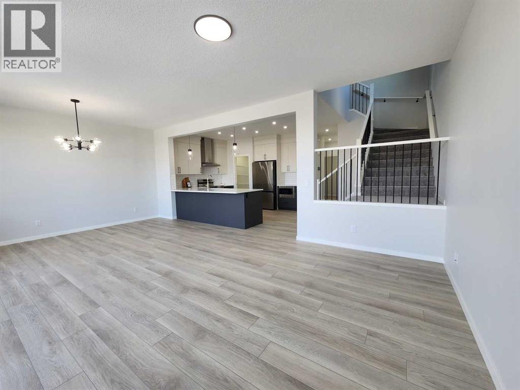 View, View, View! Back on the pond, on a conventional lot (not zero lot), and fully upgraded, welcome to this brand new single family home in popular Livingston. It features 2257 sqft, 4 bedroom up plus main floor den, 24x10 full size deck, 9 feet ceiling on the main floor, quartz counter tops in the kitchen and bathrooms, knock down ceiling, wrought iron spindles on the stairs, upgraded stainless steel appliances and chimney hood fan, 2 tone colors full height cabinets, and LVP flooring throughout the main floor. Upper floor with 4 bedrooms, large master bedroom with beautiful view, ensuite with double vanity sinks, separated shower and bathtub, and large walk in closet, bright and large bonus room with big window, functional compartment main bathroom, and laundry room with window. Main floor with large and bright living room, large sliding doors and glass panels, open kitchen, spacious dining area, and large walk through pantry. Basement with separated entrance has 2 windows and future bathroom rough it. It backs on the pond, closes to playground, future school, shopping, and easy access to major roads. **364 Herron Landing NE ** (id:63190)