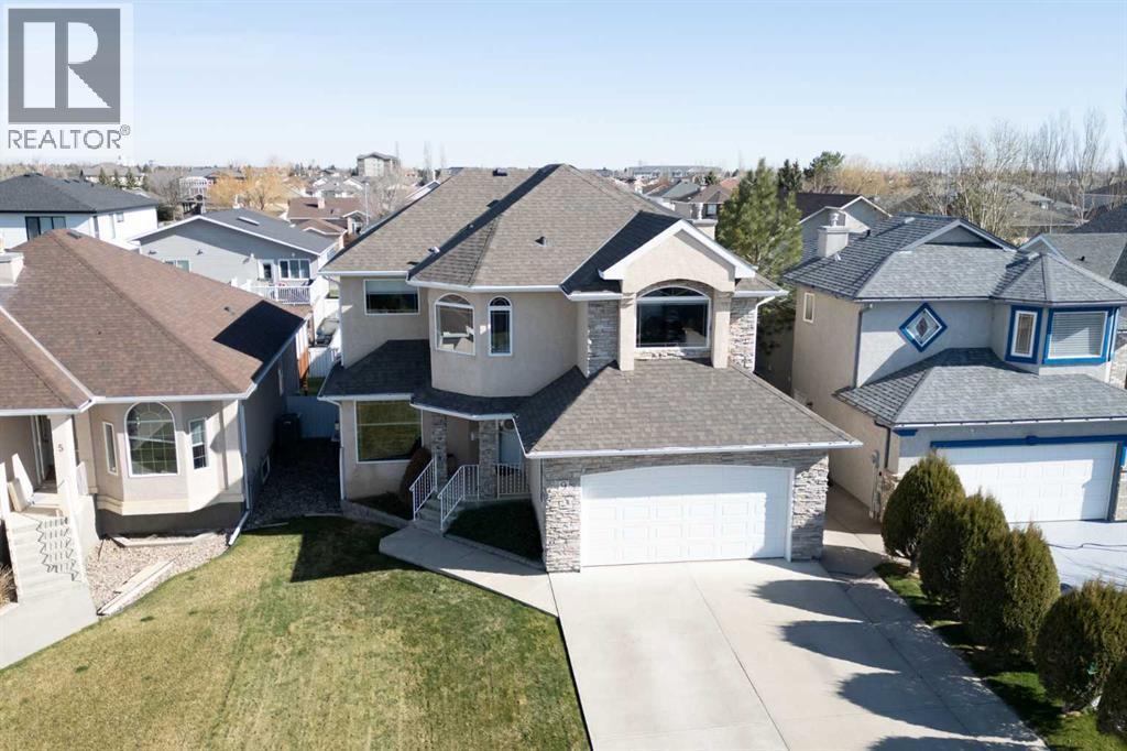 Imagine arriving home to your executive residence in one of Fairmont’s most prestigious cul de sacs. From the moment you pull up, the striking stone and stucco exterior creates exceptional street appeal and sets the tone for the quality found throughout.Step inside to a spacious, light filled foyer highlighted by a feature staircase with integrated lighting, an architectural statement that immediately elevates the space. Soaring 9 foot ceilings throughout the main level enhance the sense of openness, while skylights invite even more natural light into the home. The impressive entrance is only a preview of what awaits in this distinctive property, thoughtfully designed for refined yet comfortable living.At the heart of the home is an expansive oak kitchen offering generous workspace and a large breakfast bar that flows seamlessly into the dining and living areas, allowing you to tailor the layout to your lifestyle. A formal sunken living room with a stone faced fireplace provides an elegant setting for entertaining, while the separate formal dining room is ideal for hosting special occasions. Main floor laundry and a two piece powder room add everyday convenience.Upstairs, the primary suite is a true retreat, featuring a spacious closet and a luxurious ensuite complete with a jetted tub where you can unwind while taking in stunning mountain views. An open office space offers flexibility for work or study, and two additional generously sized bedrooms, each with built in makeup or homework desks, share a well appointed four piece bathroom.The fully developed lower level expands your living space even further with two additional bedrooms, a large family room, a craft room, cold storage, another built in desk area, and an additional full bathroom. With over 2,200 square feet above grade, this home delivers both scale and versatility for growing families or those who love to entertain.Additional features include central vacuum with a convenient Kicksweep feature i n the kitchen, underground sprinklers, a multi level deck with pergola and hot tub, and a security system for added peace of mind. Move in ready and situated in a location you will truly love, this exceptional Fairmont home offers an outstanding opportunity to enjoy upscale living at its finest. (id:63190)