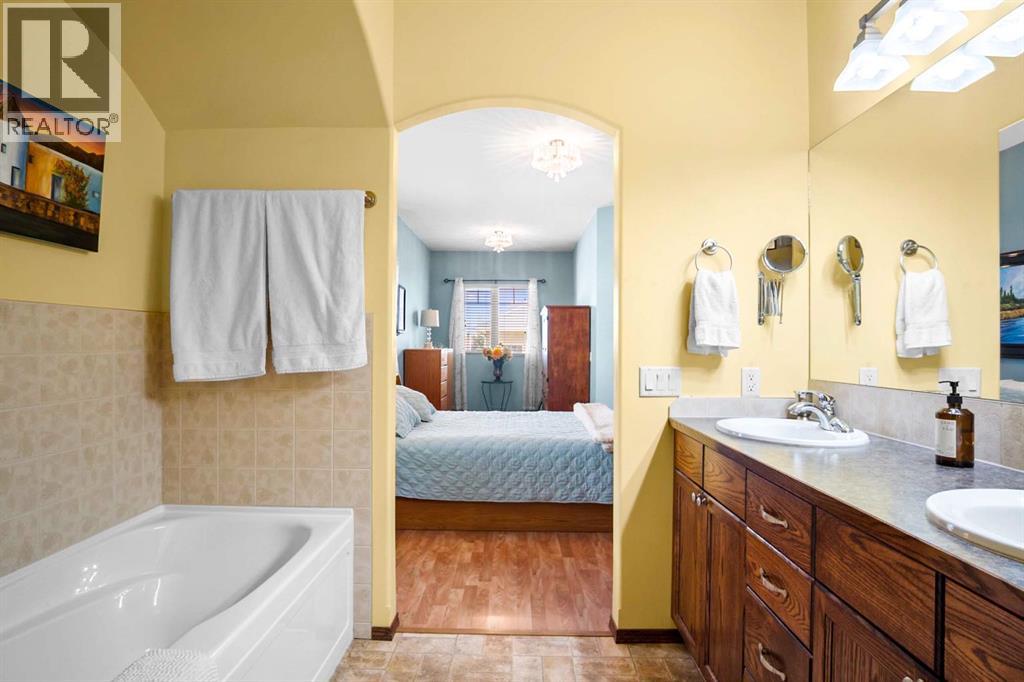 Welcome to this beautifully maintained age-restricted triplex condo, where comfort and lifestyle come together effortlessly. Bathed in natural sunlight, this inviting home offers a warm, airy ambiance throughout, creating the perfect setting for both relaxation and entertaining. The spacious main level features a stunning primary retreat complete with a luxurious 5-piece ensuite, providing a private sanctuary to unwind. An attached double garage adds everyday convenience, while thoughtful design ensures easy, low-maintenance living. Downstairs, you’ll find a fully developed basement, featuring cozy in floor heat and offering exceptional versatility, including two additional bedrooms, a generous family room, and abundant storage space. A standout feature is the walk-in wine cooler—perfect for collectors or those who love to entertain in style.Nestled in a highly desirable community, this home is just moments from a beautiful golf course, offering both scenic surroundings and recreational opportunities right at your doorstep. Condo does come with an assigned RV parking stall as well, with an annual fee of $100.00. This is an exceptional opportunity to enjoy refined, easy living in a peaceful, well-connected setting. Call your favourite Realtor today to view! (id:63190)