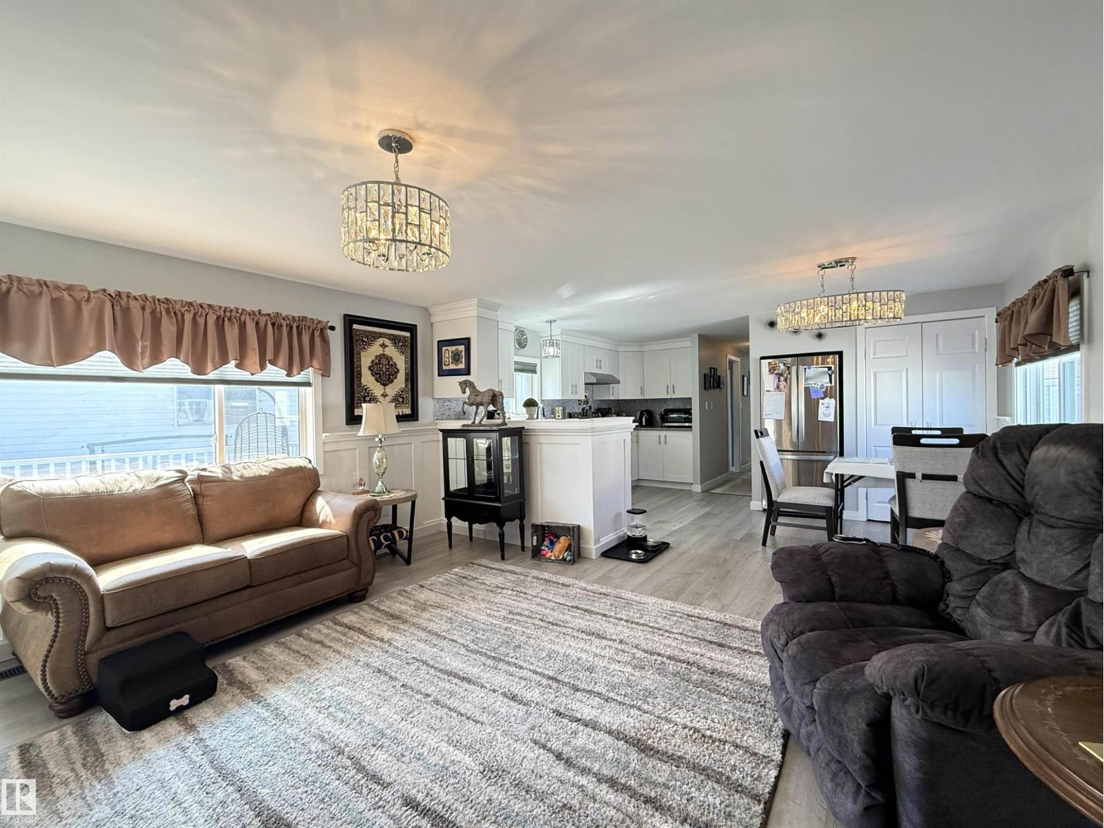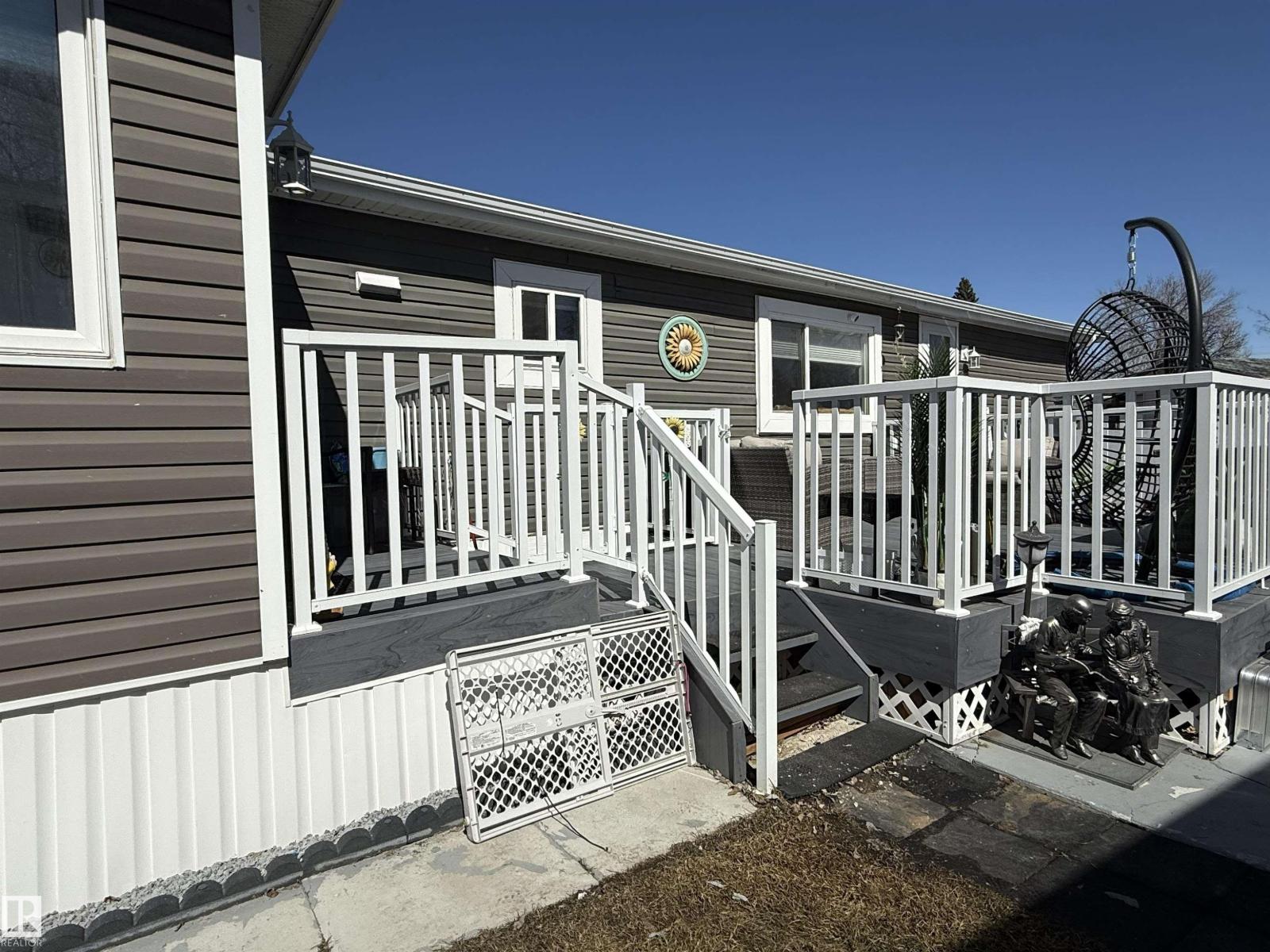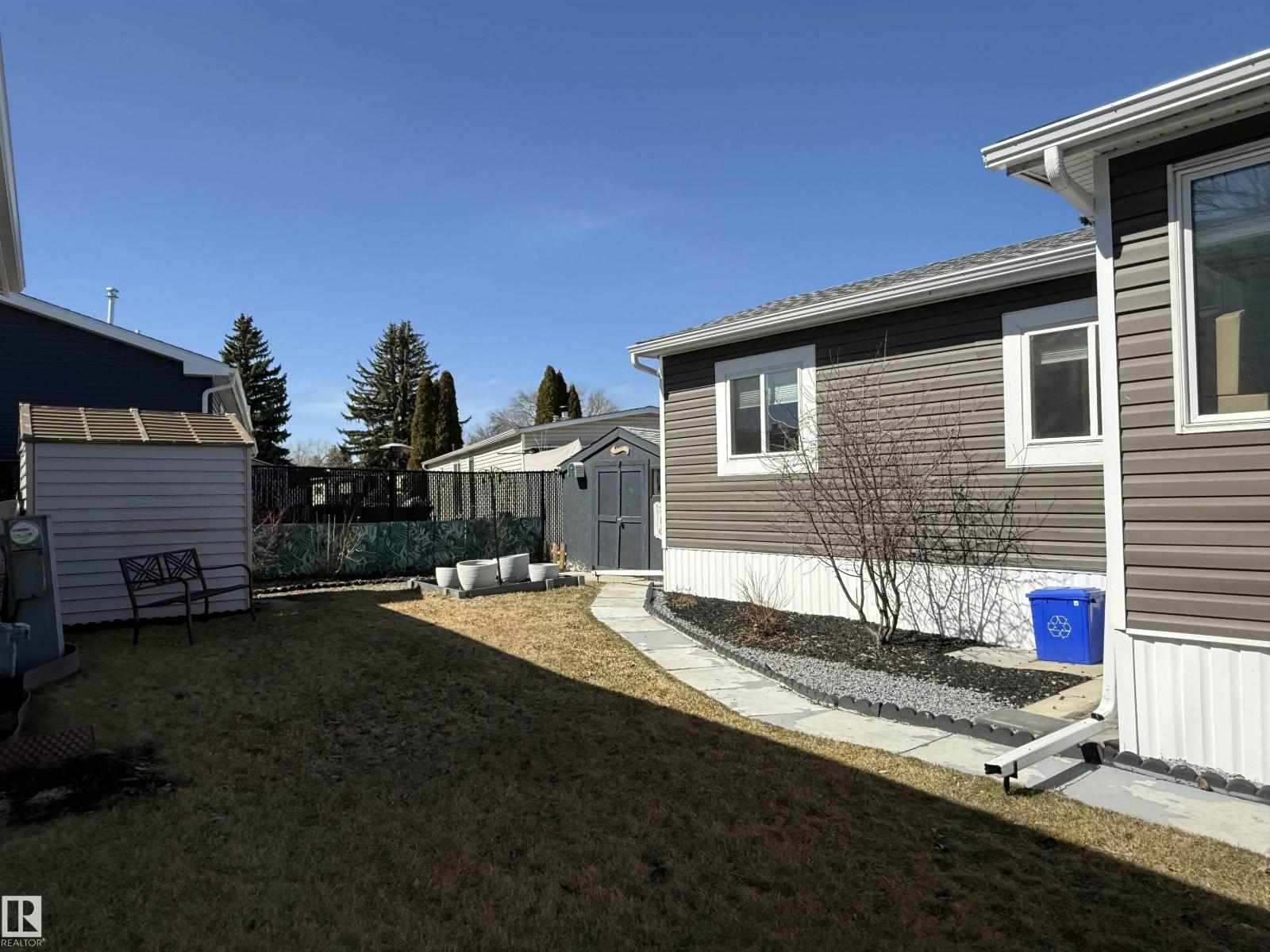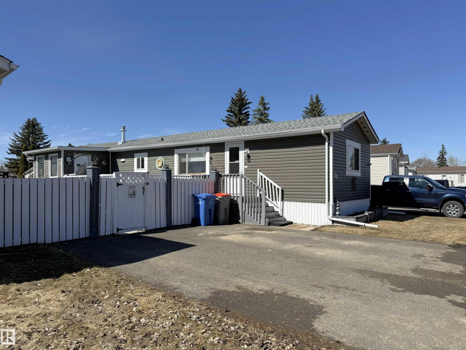 Completely renovated! Beautiful 2 bedroom, 2 bathroom plus office and bonus room! Both bedrooms are large enough for king sized beds, one with a 3 piece en suite, the other has double windows and a walk in closet. Spacious and open kitchen/dining/living room with newer kitchen. Heated sunroom addition! The office room adds extra storage or add a window for a nursery! Property is fully fenced, has a large deck, includes 2 storage sheds and paved parking pad. Other upgrades include windows, insulated exterior walls, vinyl siding, DRYWALL, paint, furnace, hot water tank and new shingles, gutters and deck. MOVE IN READY! Close to parks, school, shopping. Lot fee currently $679/month. (id:63190)