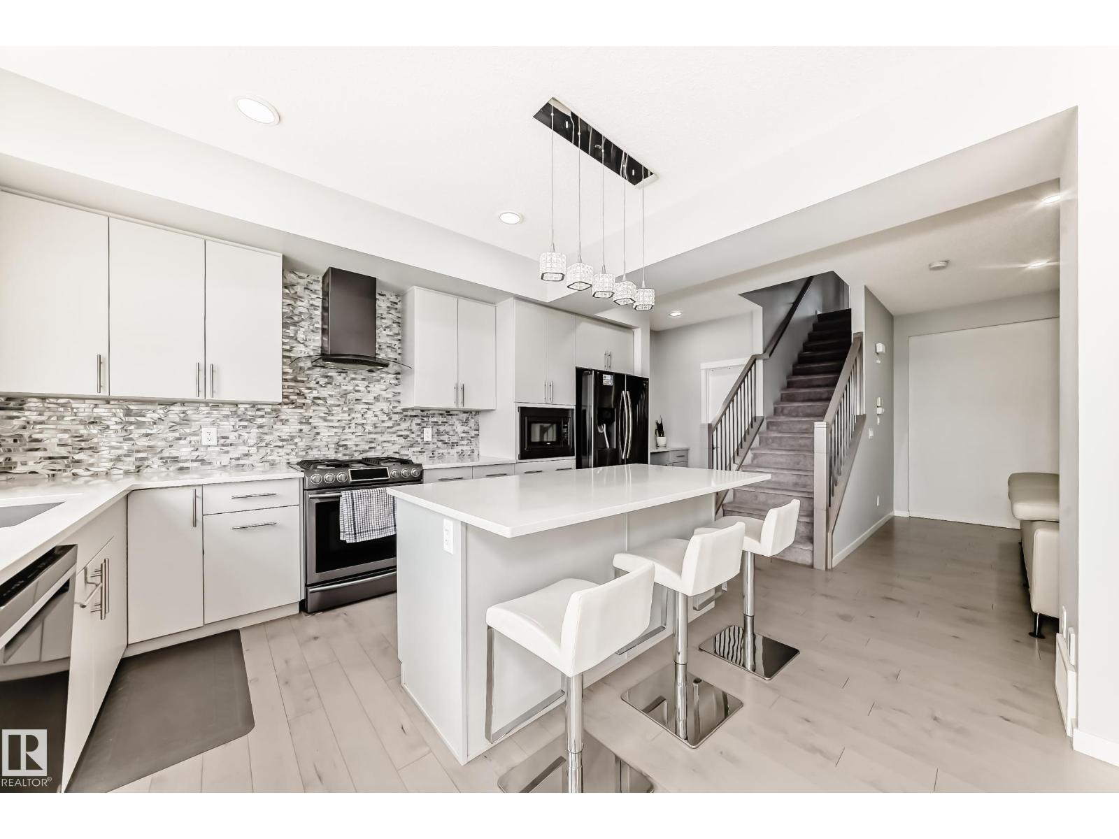 Welcome to this beautiful 2 storey home in Walker, one of Edmonton's most sought after neighbourhoods. High end luxurious living best describes this home with an open concept floor plan, and massive windows to allow for plenty of natural light. The main floor features a gorgeous kitchen with quartz countertops, high end cabinets, tile backsplash, and a large walk through pantry that leads to the mudroom and double attached garage. Upstairs you'll find 3 spacious bedrooms including the primary, with an impressive 4 piece ensuite and walk in closet, large bonus room, and a 4 piece bath complete the upper level. The fully finished basement has a large rec room, 4th bedroom, another 4 piece bath, and a small kitchenette. The backyard has a perfect entertaining space in the summer with a deck, concrete pad, and well maintained lawn. Close to the Anthony Henday and all the new shops and restaurants along Ellerslie Rd, this home is in a prime location. (id:63190)