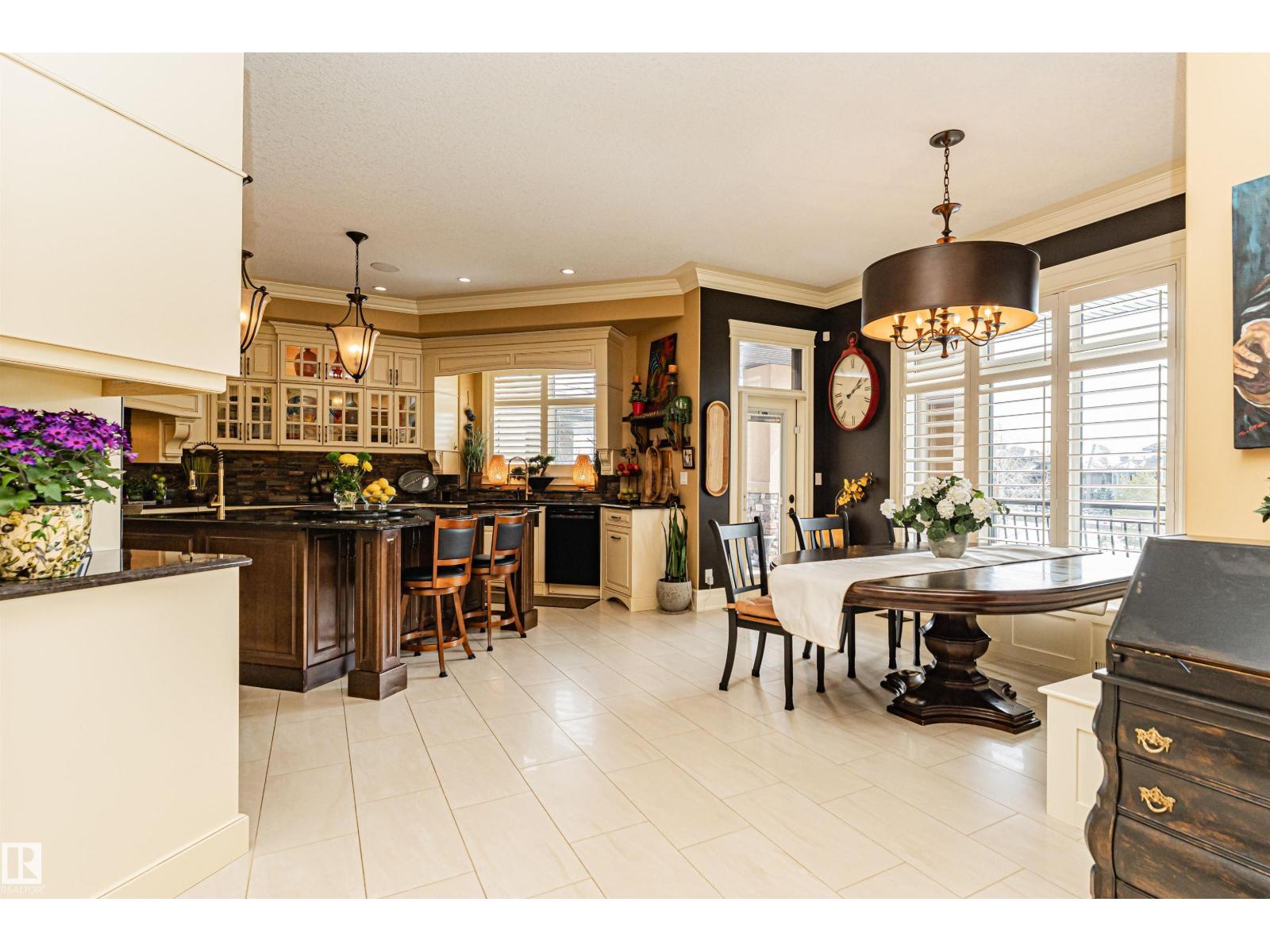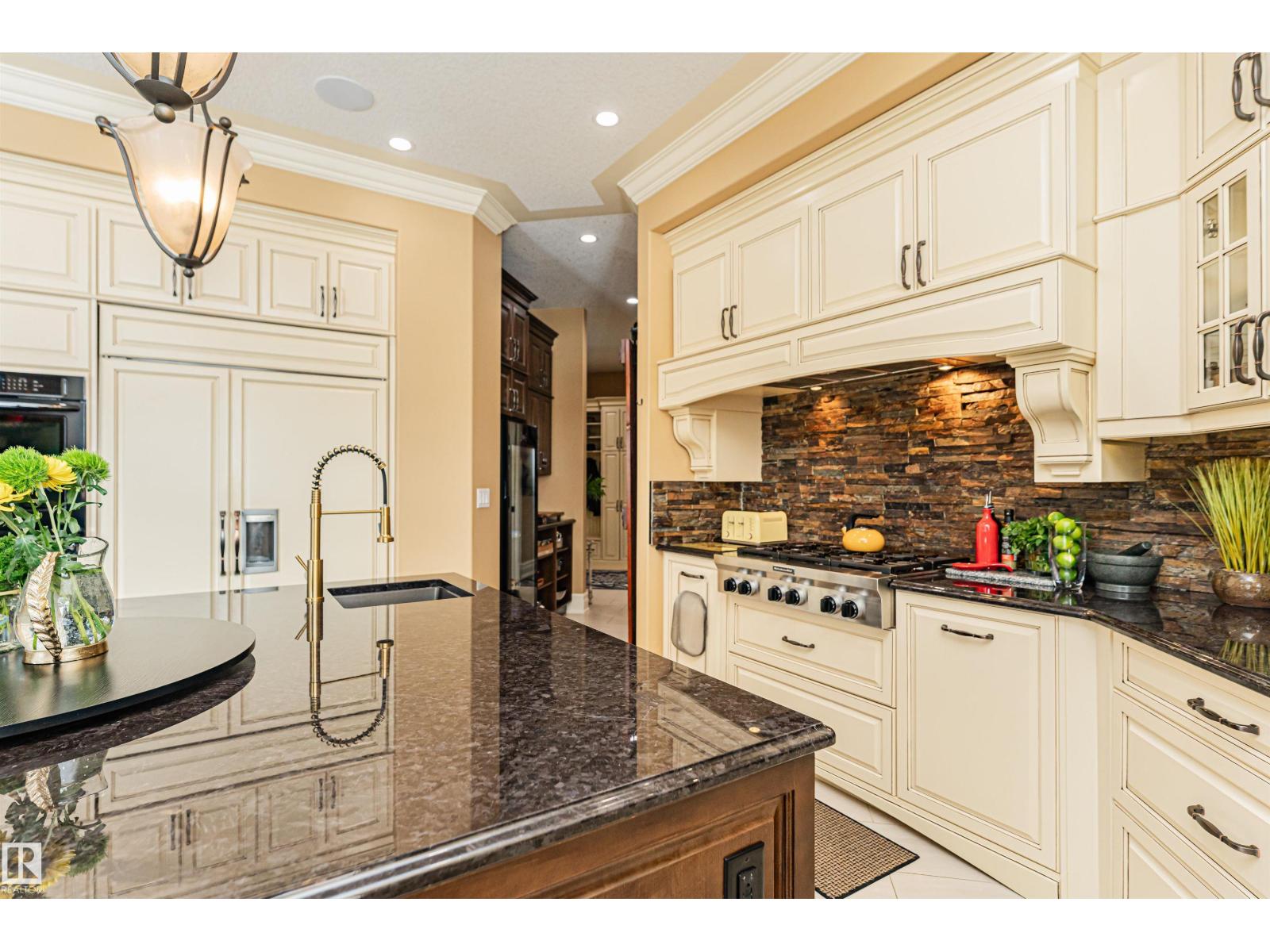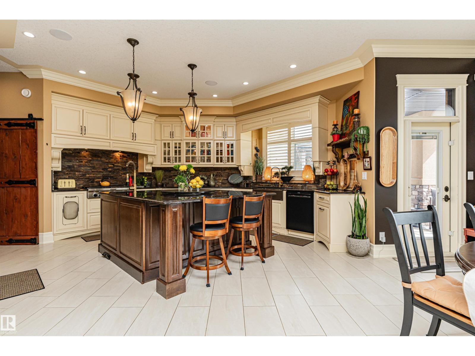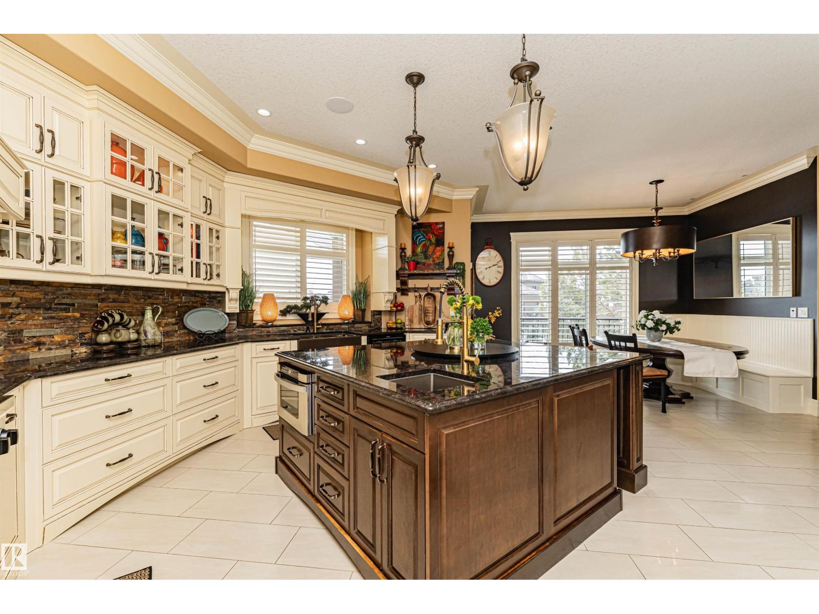 Custom-built luxury bungalow offering 2,875 sq ft of refined living space in prestigious Windermere. Designed with a timeless Fairmont Hotel feel, this exceptional walkout home backs directly onto Hyman Pond, scenic trails, and expansive greenspace. Inside, soaring 25’ ceilings, coffered detail, rich hardwood floors, and elegant finishes create a stunning first impression. The chef’s kitchen is complemented by a convenient butler’s pantry and opens to a massive balcony with tranquil pond and park views. Featuring 4 bedrooms and 4 bathrooms, this home blends luxury with function. The walkout basement is built for entertaining with a stylish wet bar and seamless access to the beautifully landscaped yard with perennial gardens and slate stone finishes. Triple oversized heated garage with epoxy floors plus exposed aggregate driveway complete this rare offering. EXTRAS INCLUDE: TANKLESS HOT WATER, HEATED FLOORS ON BOTH LEVELS, 100 YEAR ROOF, BACKYARD FORNO OVEN, HOA AMENITIES. (id:63190)