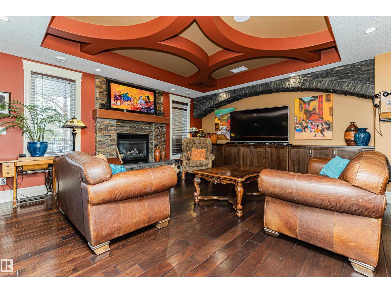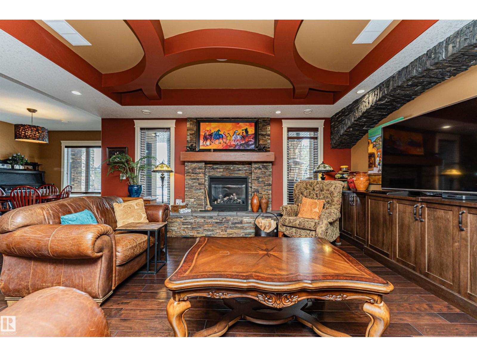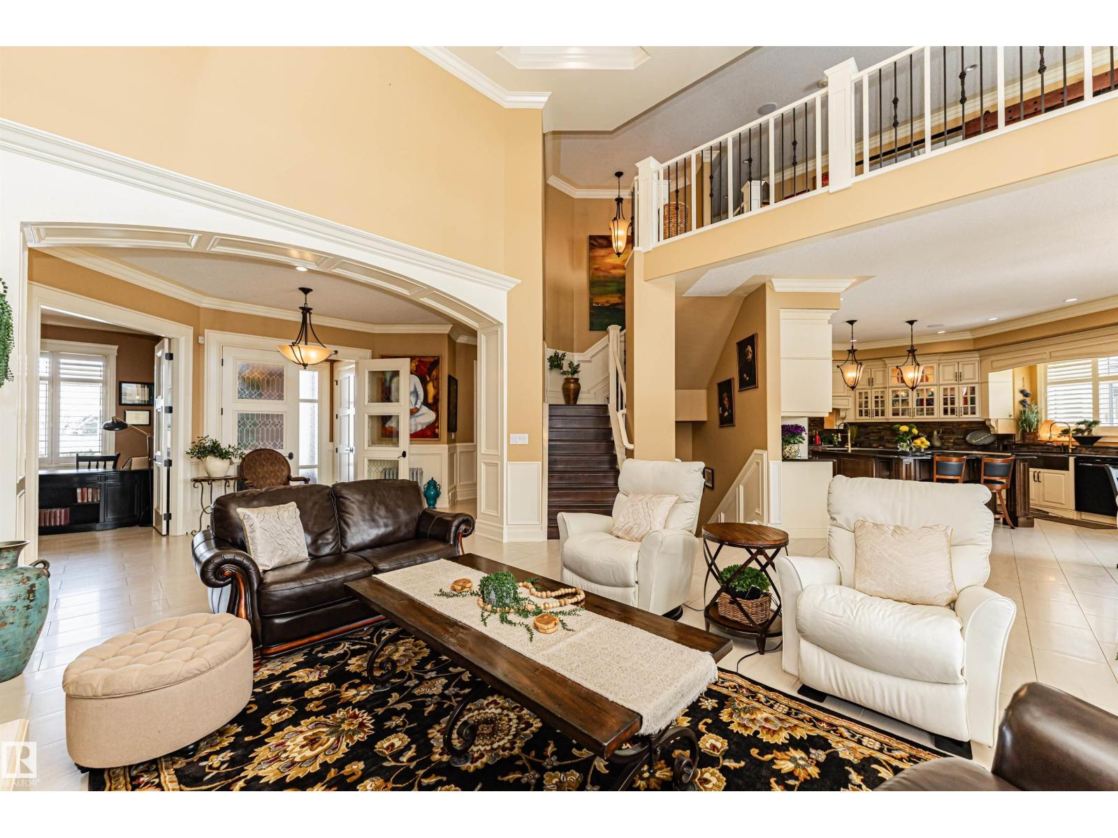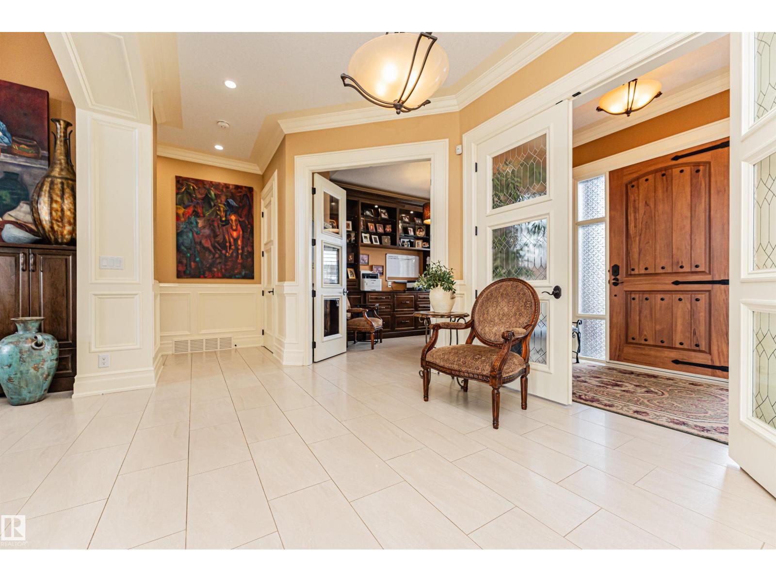 Custom-built luxury bungalow offering 2,875 sq ft of refined living space in prestigious Windermere. Designed with a timeless Fairmont Hotel feel, this exceptional walkout home backs directly onto Hyman Pond, scenic trails, and expansive greenspace. Inside, soaring 25’ ceilings, coffered detail, rich hardwood floors, and elegant finishes create a stunning first impression. The chef’s kitchen is complemented by a convenient butler’s pantry and opens to a massive balcony with tranquil pond and park views. Featuring 4 bedrooms and 4 bathrooms, this home blends luxury with function. The walkout basement is built for entertaining with a stylish wet bar and seamless access to the beautifully landscaped yard with perennial gardens and slate stone finishes. Triple oversized heated garage with epoxy floors plus exposed aggregate driveway complete this rare offering. EXTRAS INCLUDE: TANKLESS HOT WATER, HEATED FLOORS ON BOTH LEVELS, 100 YEAR ROOF, BACKYARD FORNO OVEN, HOA AMENITIES. (id:63190)