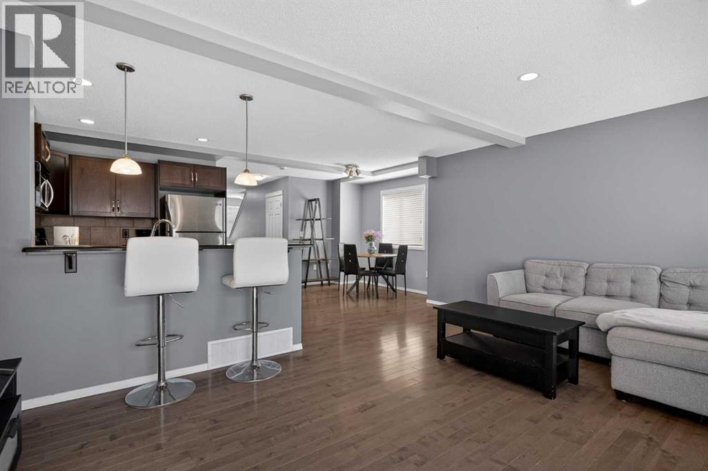 Welcome to this bright and functional END UNIT townhome in the heart of Country Hills, perfectly positioned for first-time buyers and young families looking for space, convenience, and long-term value. Inside, the open-concept main floor is built for real everyday living. Large windows bring in plenty of natural light, while the seamless flow between the kitchen, dining, and living areas makes the space feel connected and practical. The kitchen is upgraded with STAINLESS STEEL APPLIANCES and GRANITE countertops, giving it a clean, modern feel that buyers are looking for. HARDWOOD flooring adds warmth, and the cozy GAS FIREPLACE creates a comfortable space to unwind. Sliding doors lead out to a generously sized deck, perfect for BBQs or relaxing summer evenings. What truly sets this home apart is the outdoor space. Being an end unit siding onto green space and a playground creates a level of openness and usability that is rarely found in townhomes in this location. It’s not just a deck, it’s a space you’ll actually use. Upstairs, you’ll find THREE well-sized bedrooms, including a primary suite with its own full ensuite, along with an additional full bathroom for the other bedrooms. Newly installed ENGINEERED HARDWOOD on the upper level adds a fresh, updated feel throughout. The recently finished basement provides the extra flexibility every growing household needs, complete with a large family room and a convenient half bathroom, ideal for a media space, playroom, or home office. Located just minutes from transit, shopping, restaurants, and Calgary's Airport, this home offers everyday convenience without sacrificing comfort. If you’re looking for a move-in ready home with a standout location, functional layout, and rare outdoor space, this is one you don’t want to miss. (id:63190)