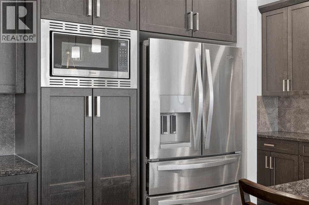 Nestled in a quiet, family-friendly cul-de-sac within one of Okotoks’ most sought-after communities, this stunning residence offers the perfect balance of small-town charm and city convenience. Situated on an expansive, sun-drenched pie-shaped lot, the property provides a massive private retreat for outdoor entertaining or play. The location is second to none—just minutes from premier shopping and world-class golf, with a seamless, 20-minute commute to South Calgary. Built in 2016 and meticulously maintained, this 2,417 sq. ft. home showcases high-quality, original finishes that stand the test of time. As you enter, you are greeted by an open-concept main floor featuring gleaming hardwood and durable tile flooring. The heart of the home is the chef-inspired kitchen, a true showpiece boasting rich custom cabinetry, premium granite countertops, a high-end gas range, and a built-in microwave. Whether hosting a dinner party or a quiet family night, the transition from the kitchen to the living room—complete with its stately gas fireplace—is effortless. Best of all, the entire home remains a sanctuary of comfort year-round thanks to the central air conditioning. The upper level is thoughtfully designed for the modern family. It features four generously sized bedrooms, including a spacious primary suite with a private 5-piece ensuite for a spa-like experience. A versatile central bonus room offers the perfect space for a home theatre or play area, while the convenience of an upper-floor laundry room, a second 4-piece bath, and upgraded finishes throughout elevate the daily routine. The Professionally Finished Basement, the living space continues into a builder-finished basement, ensuring the same high quality and seamless design as the rest of the home. This lower level is a cozy retreat featuring plush carpeting, a massive family/media room, and a fifth large bedroom with a legal egress window for maximum safety and natural light. A third full 4-piece bath completes this level, making it ideal for guests or older children. With premium A/C and an oversized lot, this property is a rare find. It combines the space of a luxury estate with the warmth of a true family home. (id:63190)