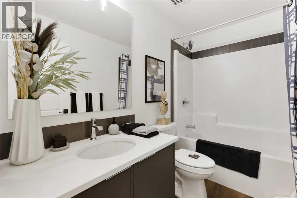 Built by a trusted builder with over 75 years of experience, this home showcases on-trend, designer-curated interior selections tailored for a home that feels personalized to you. Energy efficient and smart home features, plus moving concierge services included in each home. The executive kitchen is a true highlight, featuring built-in stainless steel appliances, gas cooktop, fridge with water and ice dispenser, waterfall island, pendant lighting, pots and pans drawers, and a single bowl Silgranit sink. The main floor includes a bedroom and full bathroom—ideal for guests, along with a cozy electric fireplace. Upstairs, enjoy a vaulted bonus room, convenient upper floor laundry, and a stunning primary retreat with a feature wall and a luxurious 5-piece ensuite complete with a tiled shower, soaker tub, and a bank of drawers, with matching cabinetry in the main bath. Additional features include LVP flooring throughout the main floor and laundry, tile flooring in upper bathrooms, quartz countertops with undermount sinks, paint grade railing with iron spindles, triple pane windows, a side entrance, rear deck with BBQ gas line rough-in, and a 1-bedroom basement rough-in—perfect for future development. This energy-efficient home is Built Green certified and includes triple-pane windows, a high-efficiency furnace, and a solar chase for a solar-ready setup. With blower door testing, plus an electric car charger rough-in, it’s designed for sustainable, future-forward living. Featuring a full range of smart home technology, this home includes a programmable thermostat, ring camera doorbell, smart front door lock, smart and motion-activated switches—all seamlessly controlled via an Amazon Alexa touchscreen hub. Photos are a representative. (id:63190)