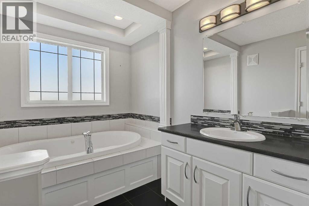 Fully developed modified bi-level in desirable Royal Oaks, ideally positioned on a corner lot with no rear neighbors. This 1,220 sq ft home offers 4 bedrooms and 2.5 bathrooms, including a private primary retreat above the garage featuring a jetted tub ensuite. The main floor showcases a bright, open-concept design with a cozy gas fireplace, spacious kitchen with ample cabinetry and counter space, and a large walk-in pantry—perfect for everyday living and entertaining. Step out from the dining area to a generous deck, ideal for relaxing or hosting. The fully finished basement adds a comfortable family room, two additional bedrooms, full bathroom, and laundry with plenty of storage. Complete with a heated double car garage and potential for RV parking, this property combines comfort, functionality, and location—conveniently within walking distance to both Catholic and Public schools, immediate possession available - this home is move in ready! (id:63190)