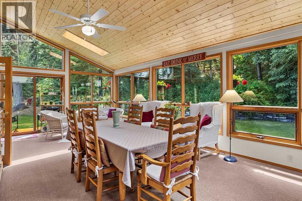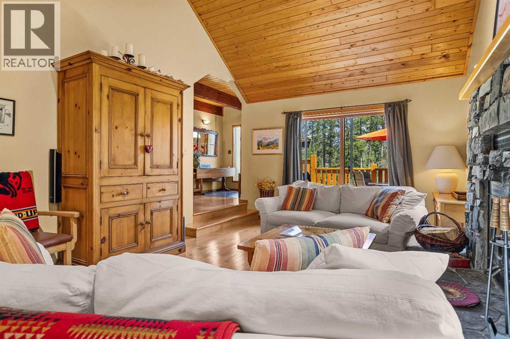 Must be seen! A stylish family home on Canmore’s historic Hospital Hill. Set on a quiet cul-de-sac, just steps from wooded trails leading to downtown, the Nordic Centre and the town’s extensive pathway network. Enjoy over 2,900 sq ft of thoughtfully designed living and entertaining space with 4 bedrooms, 3 bathrooms and 2 kitchens. This warm mountain home features vaulted ceilings throughout, enhancing the sense of space and light. The stunning garden room is filled with sunshine and opens to a tranquil rear yard backing onto a wildlife corridor. There, a charming bunkhouse offers a cozy escape for all ages. The entire upper level of the home creates a spacious and luxurious primary retreat, complete with a private balcony and beautiful mountain views. The lower level provides a self-contained one-bedroom suite with private entry – ideal as a rental unit or for extended family. (id:63190)