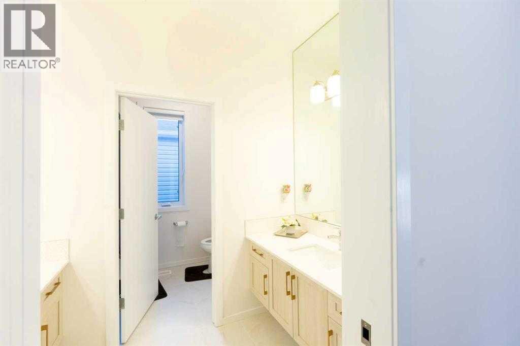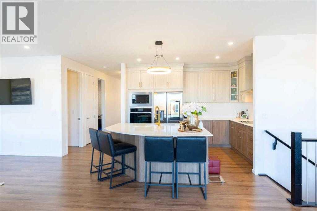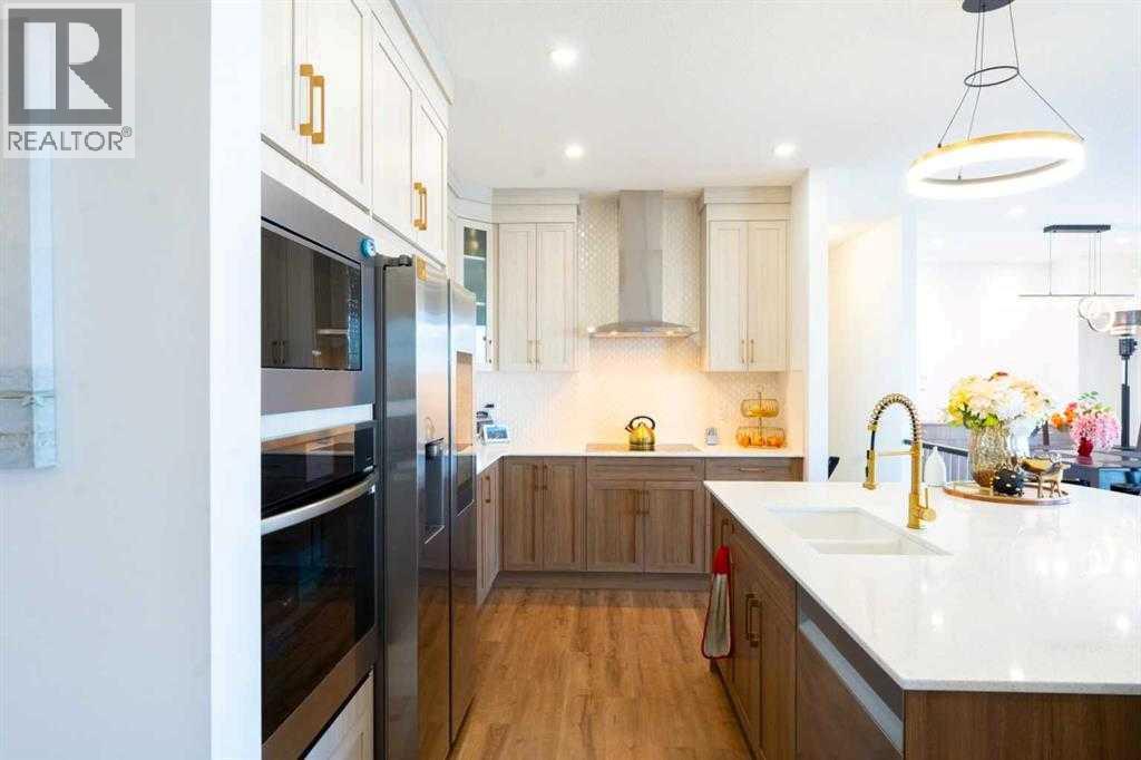 Welcome to 228 Windrow Link SW — a rare opportunity to own one of the most private and premium walkout lots in the community, backing directly onto a peaceful pond with unobstructed water views and facing a park right out front. No homes in front. No homes behind. Just open space, light, and privacy — something buyers chase but rarely find.From the moment you walk in, the home feels different.The open-concept main floor is filled with natural light from both directions, creating a bright, airy space that actually feels like a home — not just another listing. The great room is designed to stand out, featuring a sleek electric fireplace with a bold black accent wall, giving it a clean, modern edge without losing warmth.The kitchen is where this home separates itself.At the center is a custom oversized quartz island with soft curved edges — a detail you almost never see, and one that completely changes how the space feels. It’s built for real living — whether that’s hosting friends, family dinners, or everyday moments. Paired with full-height cabinetry, built-in appliances, and a modern finish, the entire kitchen delivers both style and function.And then there’s the spice kitchen — a feature buyers immediately understand the value of. Cook freely, entertain cleanly, and keep your main space looking perfect.A main floor office adds flexibility for remote work, business use, or a quiet study space.Upstairs, you’ll find four generously sized bedrooms, including a comfortable primary retreat with a walk-in closet and private ensuite — designed for both privacy and everyday convenience. The layout works especially well for growing families or multigenerational living.The walkout basement is where the opportunity really opens up — whether you’re thinking future development, extended family living, or additional income potential (subject to approvals).Step outside onto your glass-railed deck and take in the full pond view — this is the kind of setting that t urns a house into a lifestyle. Morning coffee, evening sunsets, complete privacy.It’s a premium lot, a functional layout, and a lifestyle upgrade — all in one of Airdrie’s most desirable communities. (id:63190)