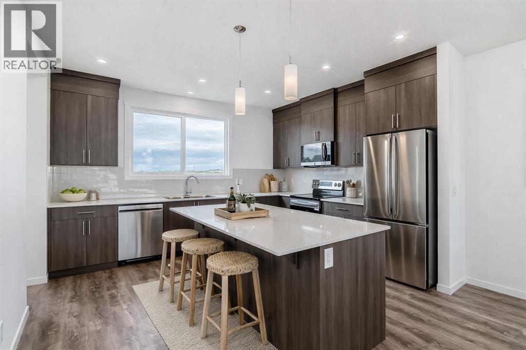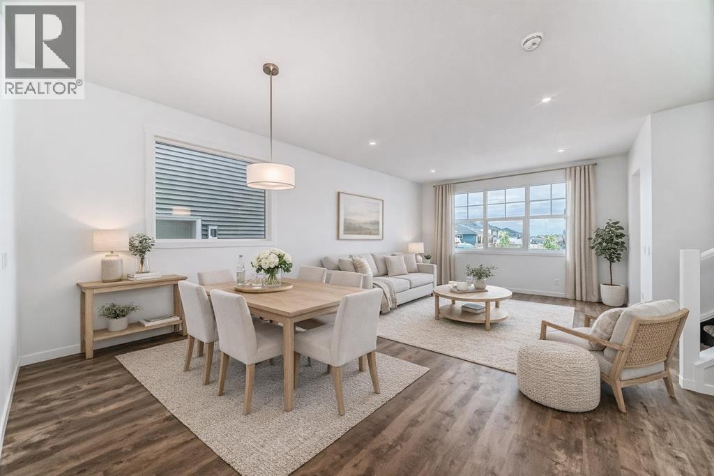 Discover your dream home in Wedderburn, Okotoks, just 25 minutes from Calgary via Highway 2A—a 1,448 sq. ft. gem by Anthem, perfect for buyers seeking a turnkey haven with a builder’s new home warranty. The open-concept main floor dazzles with sunlight through an extra dining window, durable LVP flooring, and a seamless living-dining space for cozy nights or gatherings. The upgraded kitchen shines with ceiling-height soft-closing cabinetry for ample storage, sleek stainless steel appliances, quartz countertops, a spacious island, under-cabinet lighting, and a walk-in pantry. Upstairs, your primary bedroom boasts a walk-in closet and 3-piece ensuite, plus two bedrooms with walk-in closets, a full bath, and a stackable washer/dryer. A side entrance and 9’ basement with two windows offer future suite potential (subject to approval and permitting by the city/municipality), while a BBQ gas line in back awaits summer evenings. Minutes from St. James School, Wedderburn Park, D’Arcy Crossing shops, and commuter routes, this energy-efficient home blends tranquility and convenience. Stop dreaming and book your private showing today to embrace the Wedderburn lifestyle! (id:63190)