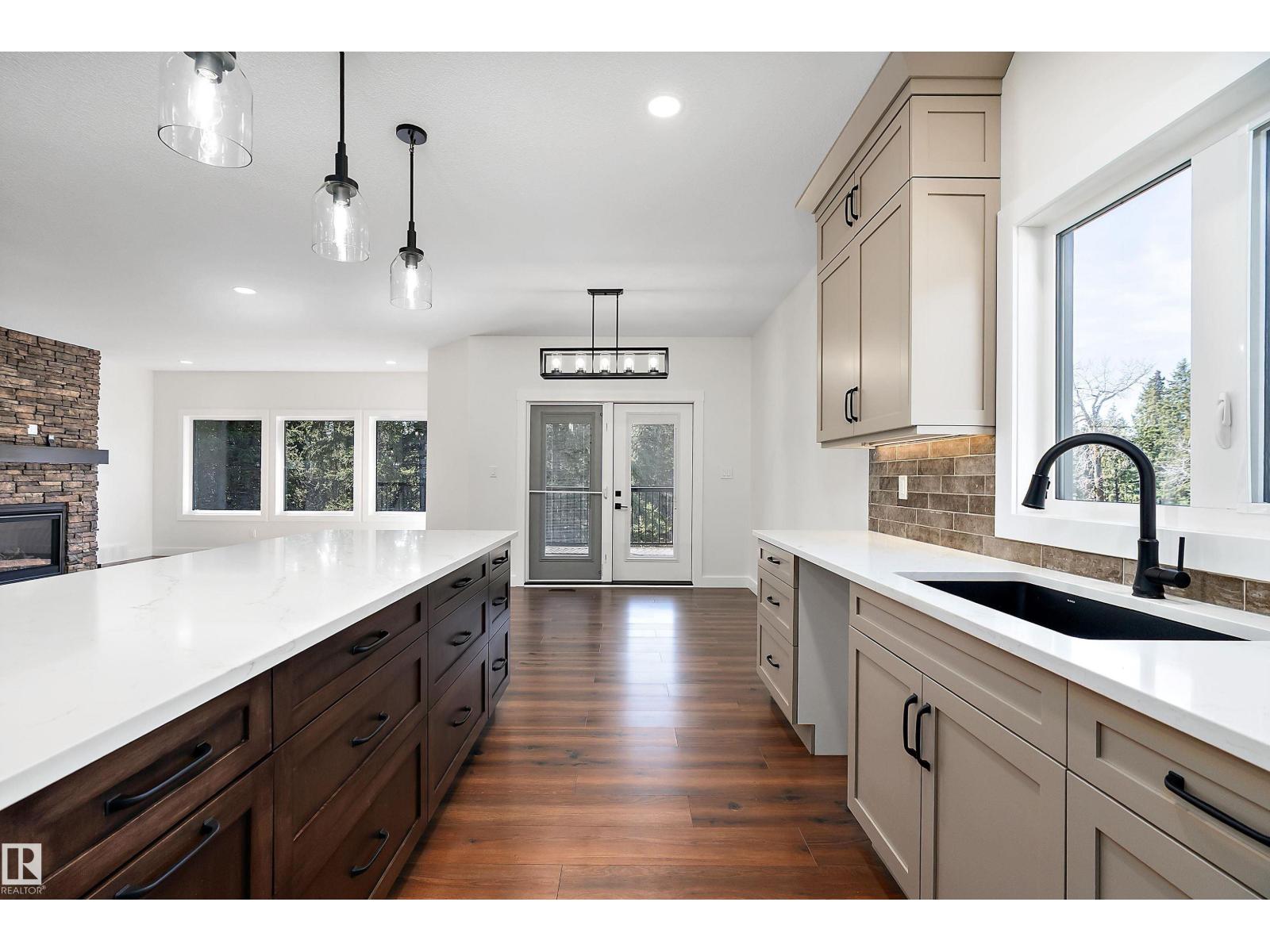 Set along the natural beauty of Pipestone Creek, NEW WALK-OUT BUNGALOW is fully finished w/ 5 bedrooms & offers a rare blend of elevated design in a truly peaceful setting! From the moment you step inside, the home feels bright & welcoming w/large windows framing the surrounding trees. The open-concept main floor is anchored by a stunning stone facing gas fireplace & high-end laminate flooring. The kitchen is a true standout, featuring an abundance of ceiling-height, s/c cabinetry with u/c lighting, Quartz countertops, oversized island & beautiful backsplash, making this space as practical as it is stylish. The walk-out basement offers a bright & spacious entertaining room w/second stone gas fireplace, wet bar, 3 bedrooms & 4-pc bath. Built for efficiency w/ triple pane windows, R22 rock wool insul, R50 attic insul, on-demand H/W & A/C. TRIPLE HEATED ATTACHED GARAGE w/ EV charger & upgraded doors. Beautifully finished w/acrylic stucco, stone & steel accents. A must see property! (id:63190)