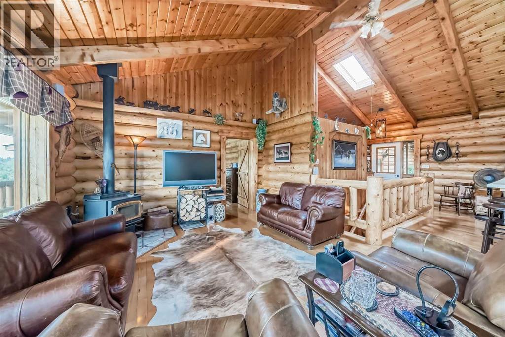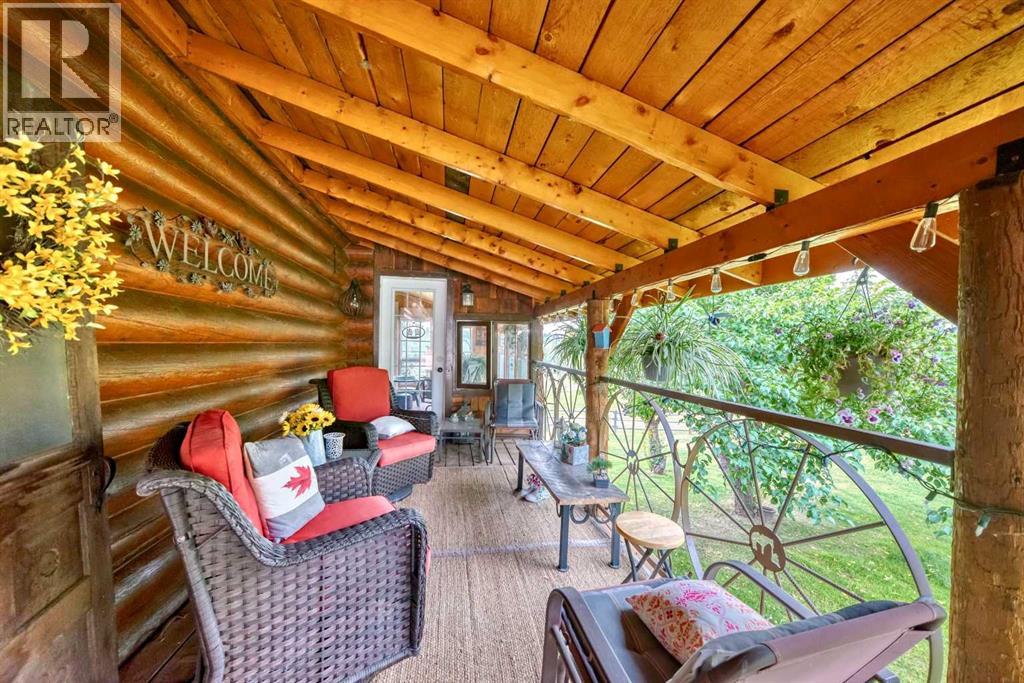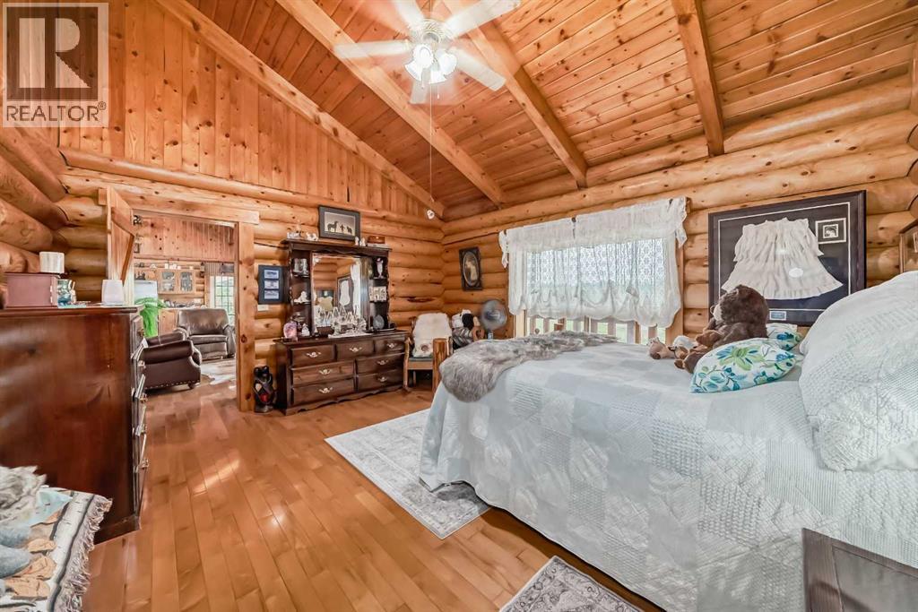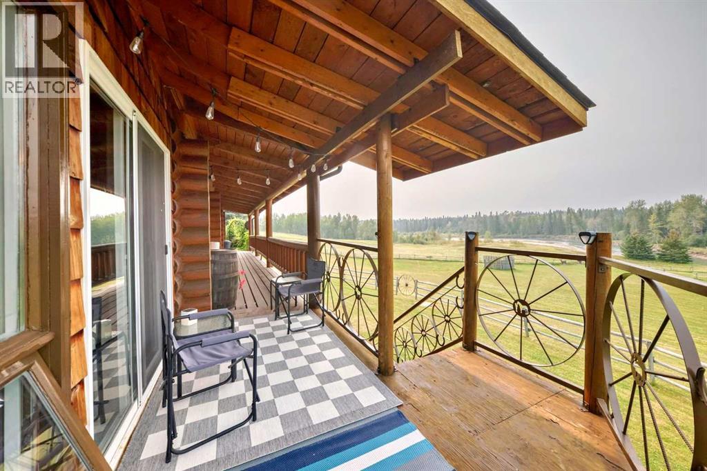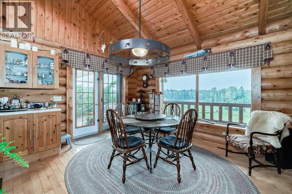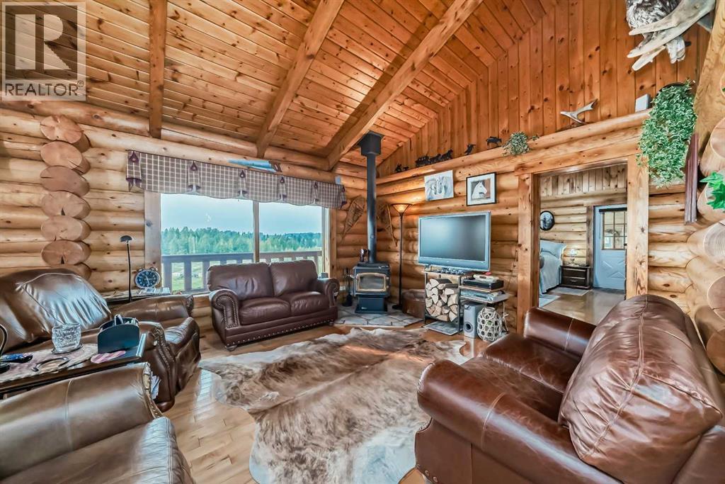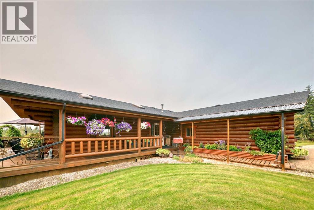 There won't be a moment that you won't say "wow" to this award winning acreage when you drive into this sensational property located on pavement at the end of a dead end road close to Rocky Mountain House and Caroline. Nestled within the trees, this beautiful log bungalow has "Welcome": written all over it. From the exceptional landscaping, to the outdoor amenities to the one in a million view of the Clearwater River, this hand crafted log home has been exceptionally built and maintained. The wrap around deck and covered porch leads you into the main living space with a central kitchen area complete with corner pantry and an eating bar for your family to gather for those special events. The living room with woodstove invites you to cozy up for the evening and the convenience of your primary bedroom on main floor shares a luxurious ensuite with a claw tub and heated floors. The sunroom/reading room is located directly off the primary bedroom. The downstairs walkout houses 3 bedrooms a large family room with wet bar and both storage and a cold room. Not enough can be said about the parking as there is a heated double attached garage along with a 16 x 48 motorhome garage, and a combination of shop areas which are 8x24,12x32,14x32,24x32 and 32x32 and 8x14. Shop comes with an air compressor that is plumbed in. Also there is an overhead crane and welder plugs. There is a hayshed, gazebo, fruit trees, grassed pastureland and access to the river. Animal friendly property that has been fenced complete with water bowl. This is one of those properties that needs to be seen to truly be appreciated. (id:63190)
