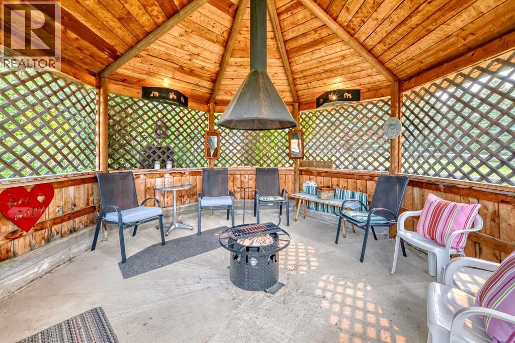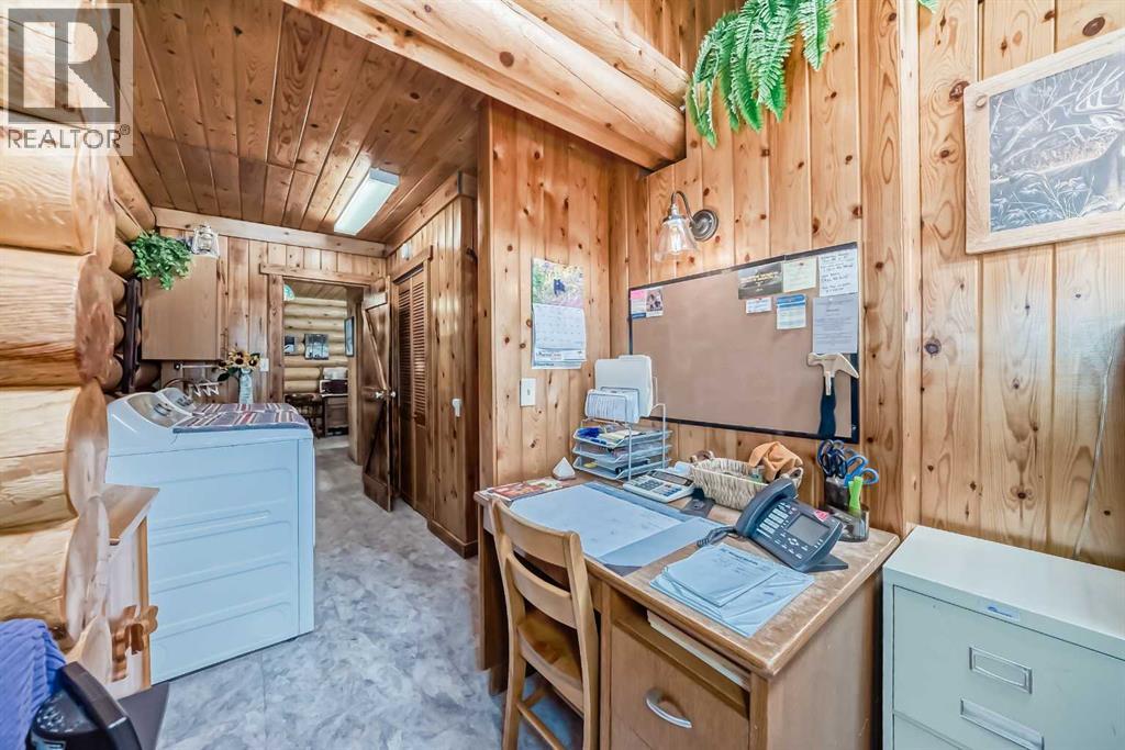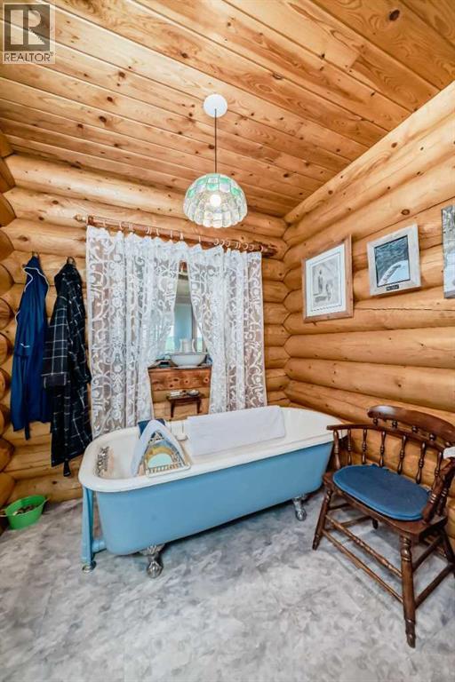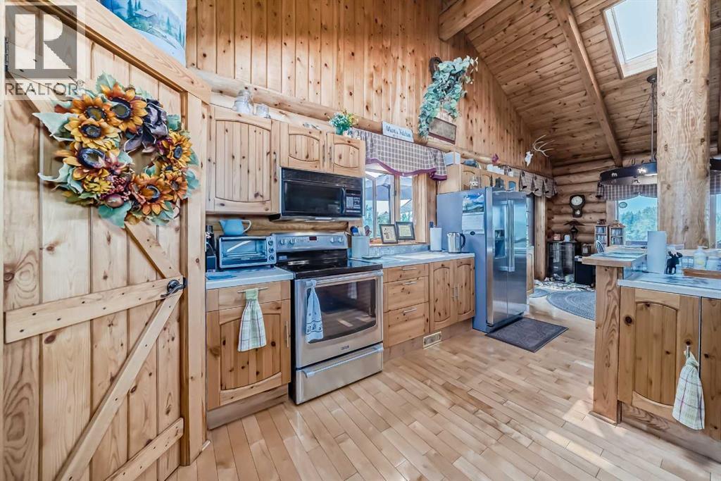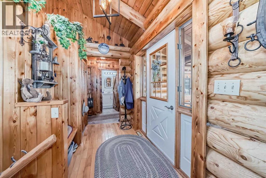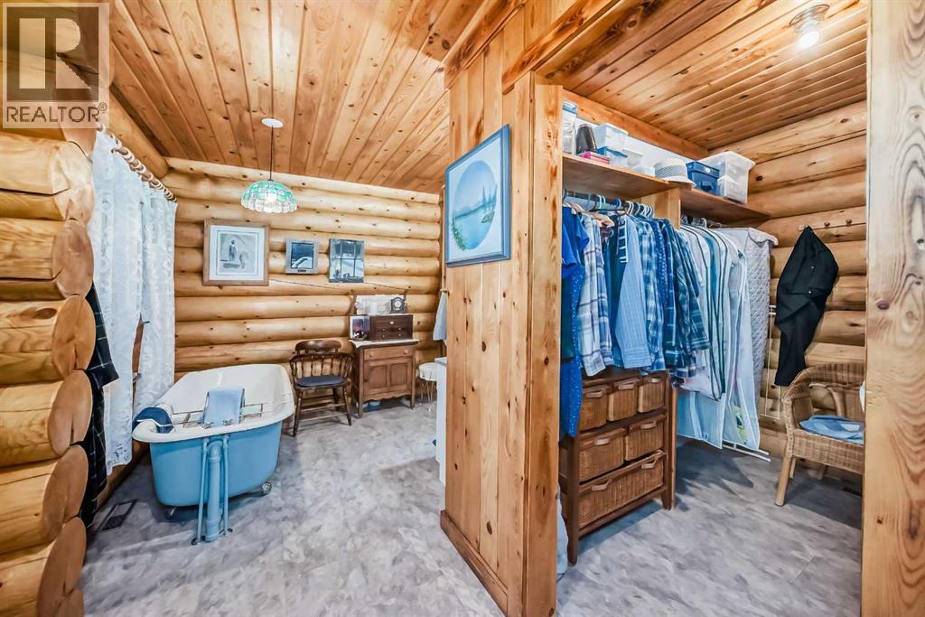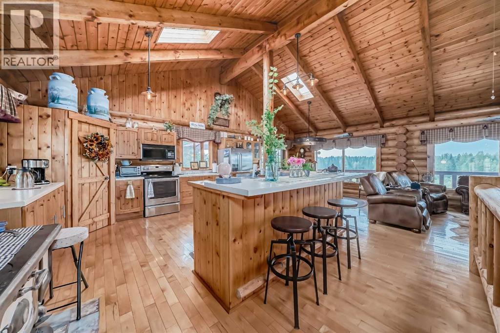 There won't be a moment that you won't say "wow" to this award winning acreage when you drive into this sensational property located on pavement at the end of a dead end road close to Rocky Mountain House and Caroline. Nestled within the trees, this beautiful log bungalow has "Welcome": written all over it. From the exceptional landscaping, to the outdoor amenities to the one in a million view of the Clearwater River, this hand crafted log home has been exceptionally built and maintained. The wrap around deck and covered porch leads you into the main living space with a central kitchen area complete with corner pantry and an eating bar for your family to gather for those special events. The living room with woodstove invites you to cozy up for the evening and the convenience of your primary bedroom on main floor shares a luxurious ensuite with a claw tub and heated floors. The sunroom/reading room is located directly off the primary bedroom. The downstairs walkout houses 3 bedrooms a large family room with wet bar and both storage and a cold room. Not enough can be said about the parking as there is a heated double attached garage along with a 16 x 48 motorhome garage, and a combination of shop areas which are 8x24,12x32,14x32,24x32 and 32x32 and 8x14. Shop comes with an air compressor that is plumbed in. Also there is an overhead crane and welder plugs. There is a hayshed, gazebo, fruit trees, grassed pastureland and access to the river. Animal friendly property that has been fenced complete with water bowl. This is one of those properties that needs to be seen to truly be appreciated. (id:63190)