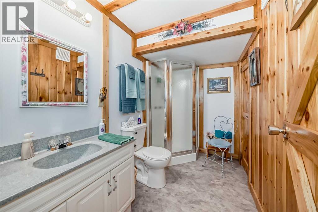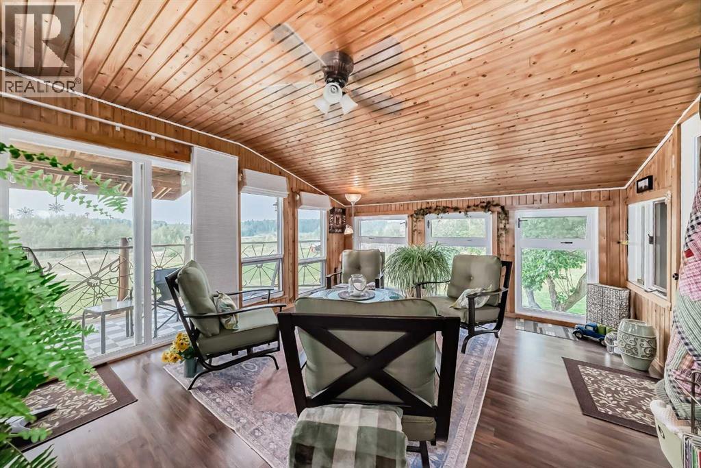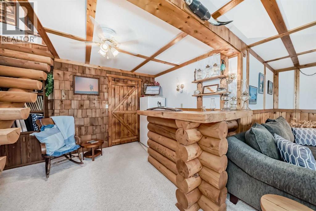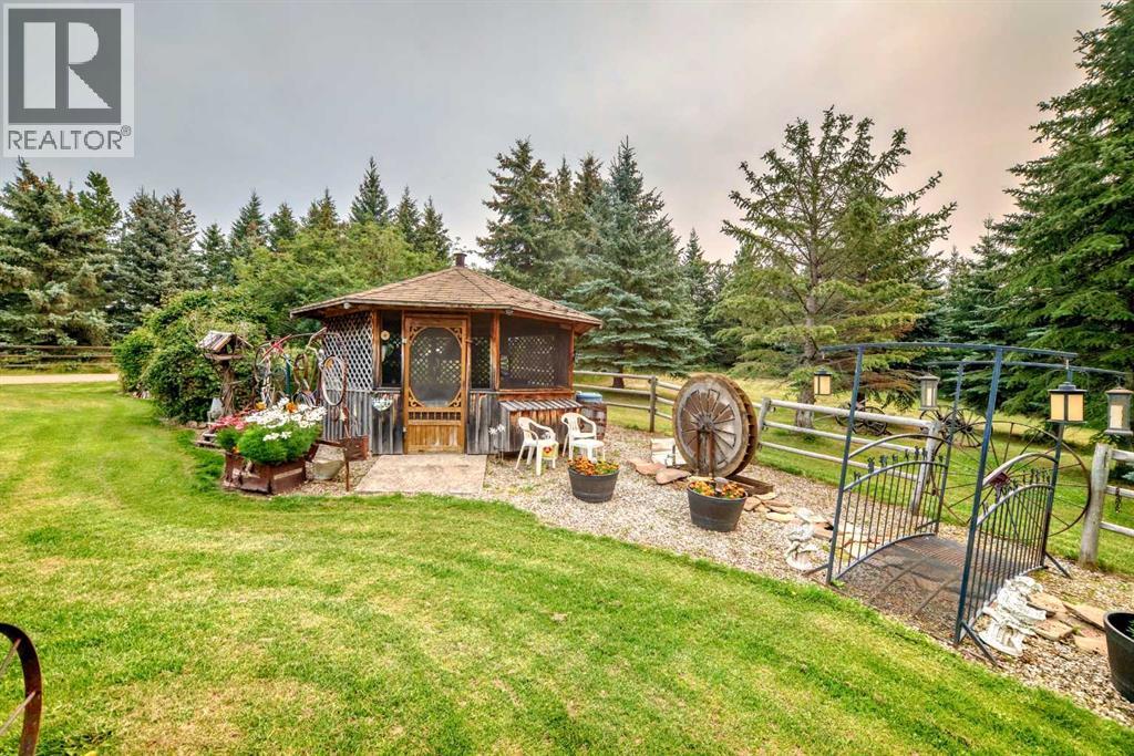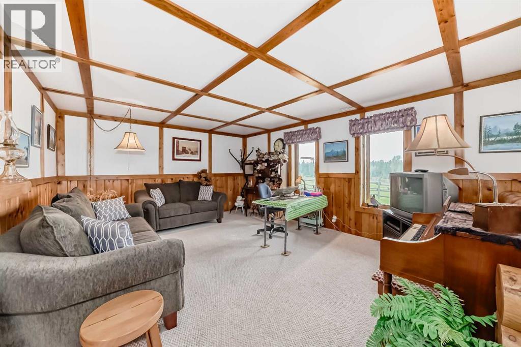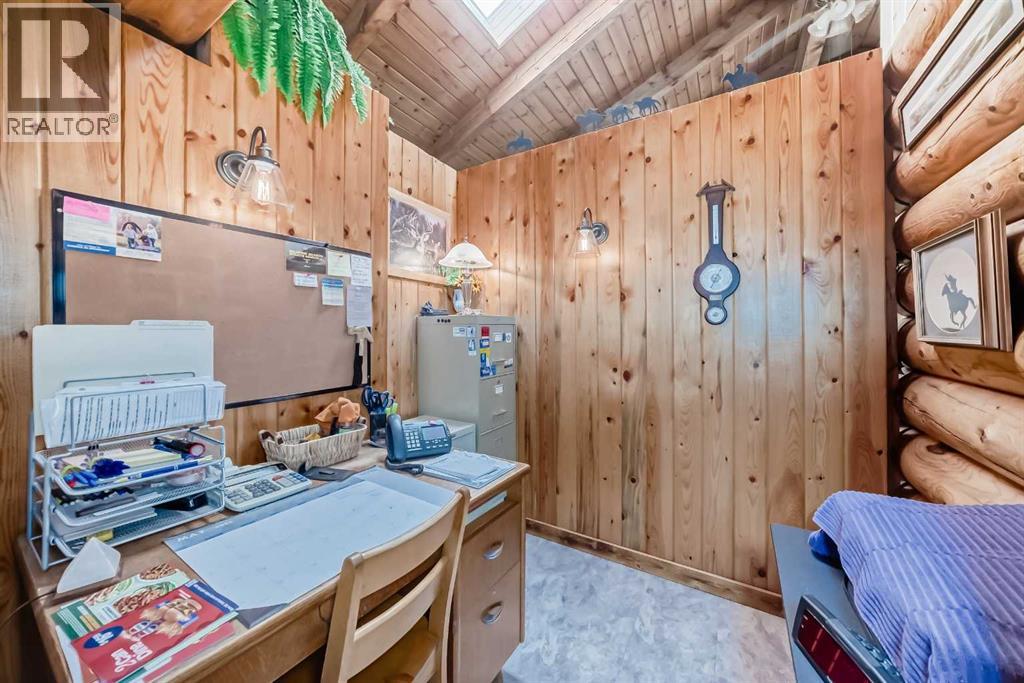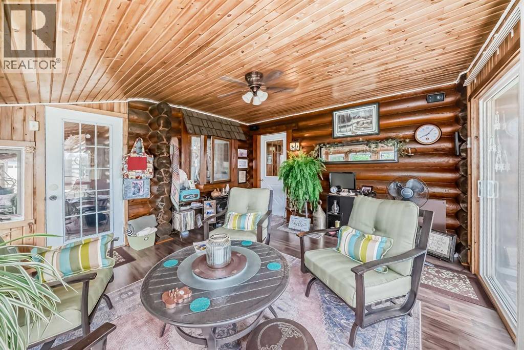 There won't be a moment that you won't say "wow" to this award winning acreage when you drive into this sensational property located on pavement at the end of a dead end road close to Rocky Mountain House and Caroline. Nestled within the trees, this beautiful log bungalow has "Welcome": written all over it. From the exceptional landscaping, to the outdoor amenities to the one in a million view of the Clearwater River, this hand crafted log home has been exceptionally built and maintained. The wrap around deck and covered porch leads you into the main living space with a central kitchen area complete with corner pantry and an eating bar for your family to gather for those special events. The living room with woodstove invites you to cozy up for the evening and the convenience of your primary bedroom on main floor shares a luxurious ensuite with a claw tub and heated floors. The sunroom/reading room is located directly off the primary bedroom. The downstairs walkout houses 3 bedrooms a large family room with wet bar and both storage and a cold room. Not enough can be said about the parking as there is a heated double attached garage along with a 16 x 48 motorhome garage, and a combination of shop areas which are 8x24,12x32,14x32,24x32 and 32x32 and 8x14. Shop comes with an air compressor that is plumbed in. Also there is an overhead crane and welder plugs. There is a hayshed, gazebo, fruit trees, grassed pastureland and access to the river. Animal friendly property that has been fenced complete with water bowl. This is one of those properties that needs to be seen to truly be appreciated. (id:63190)