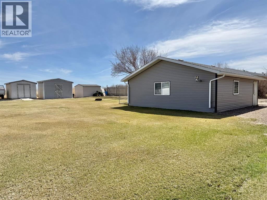 Welcome to peaceful acreage living just minutes north of Brooks in the Johnson Estates 1 Subdivision. This well maintained home sits on 0.57 acres of owned land and offers a unique, functional layout perfect for families or those needing flexible space. Inside, you'll find 3 spacious bedrooms, 2 full bathrooms and a versatile, equipped media room that could easily serve as a 4th bedroom, home office or hobby space. The open concept heart of the home features a bright kitchen offering ample cupboard and counter space along with a convenient island, while the living room features newer carpet for a fresh, cozy feel. Outside, the property truly shines with a double detached, heated garage, three storage sheds, RV parking and a fenced dog kennel. Enjoy evenings around the fire pit or relax on the maintenance free deck. Bonus features include regional water plus seasonal irrigation - perfect for keeping your yard looking its best. If you're looking for space, value and a property that has been thoughtfully updated with many bonus inclusions and is move in ready, this one checks all the boxes you didn't know you had. (id:63190)