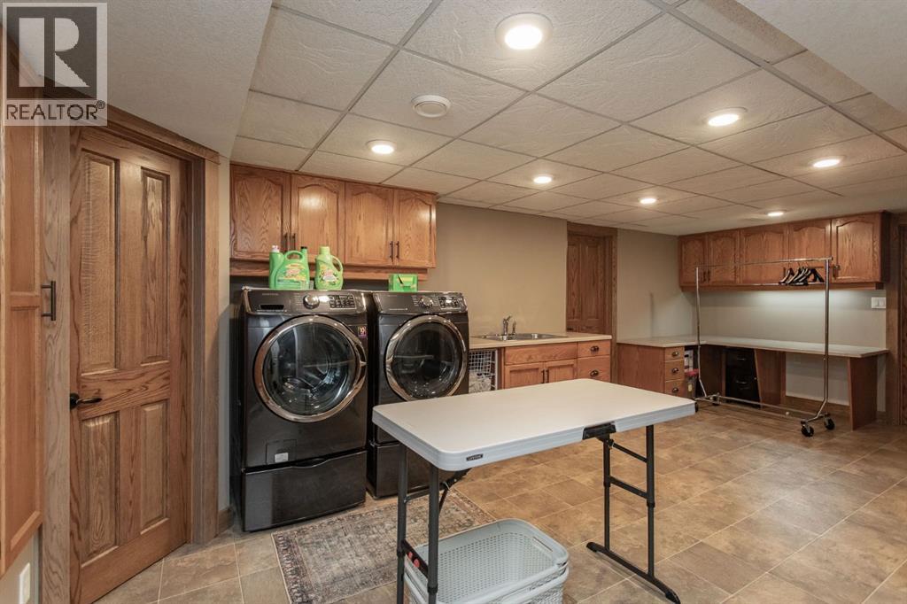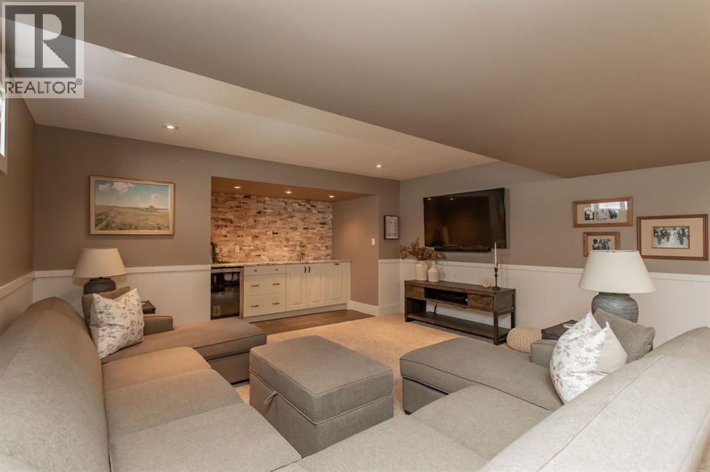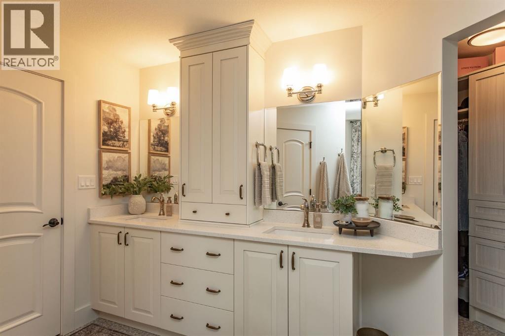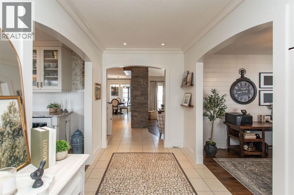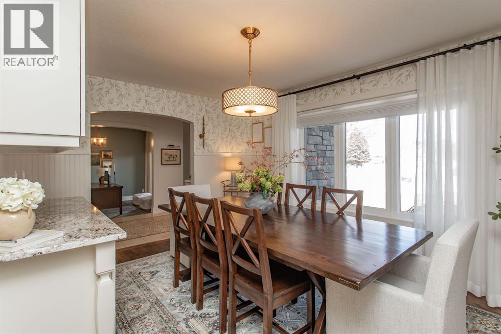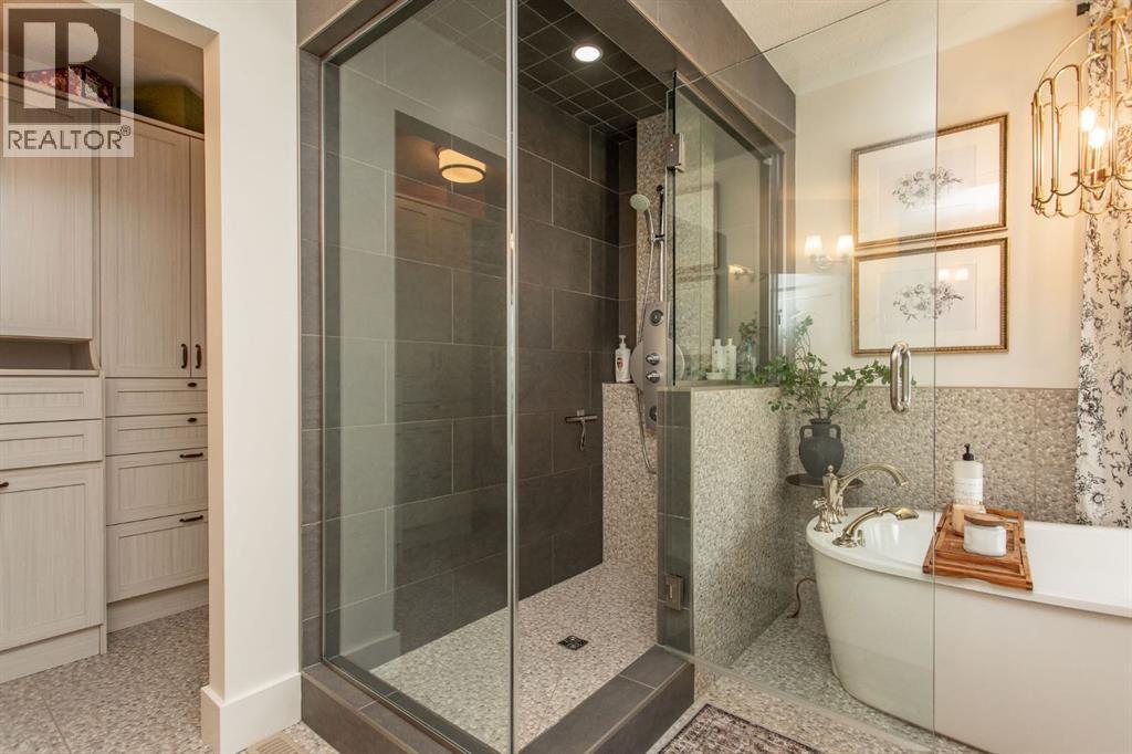 Tucked away in a quiet close, this stunning executive bungalow is a true hidden gem. Sitting on a massive pie lot and facing on to a green space, the home has been comprehensively transformed inside and out and delivers the kind of space, quality, and lifestyle that appeal to even the most discerning of buyers. From the moment you arrive, the curb appeal sets the tone - stacked stone exterior, permanent architectural lighting, exposed aggregate driveway, beautiful professional landscaping, and a triple attached heated garage. A 22x24' double detached garage at the rear adds even more functionality, complete with vaulted ceilings, pot lighting, epoxy floor, and separate storage area. Inside, the main floor unfolds with rich hardwood and tile flooring, and a floor-to-ceiling stacked stone fireplace anchoring the living room with vaulted ceilings to the kitchen. The kitchen is nothing short of spectacular with custom cabinetry, granite countertops, a massive island with bar sink, Kohler cast iron farmhouse sink, upgraded stainless steel appliances, gas stove, and glass pendant lighting. A formal dining room, dedicated front office, and thoughtful layout make this home equally suited to entertaining and everyday living. The primary suite is a genuine retreat and connects to a spa-calibre 5-piece ensuite with a freestanding soaker tub, glass-enclosed shower, mosaic tile, walk-in closet with California closet built-ins, water closet, and all high end fixtures. Two additional main floor bedrooms and a 4-piece bath complete the main floor. The crown jewel of the outdoor space is the fully enclosed 4-season sunroom with cedar ceilings, mounted TV, and its own wood-burning fireplace. The fully developed basement is heated with in-floor heat and features a massive rec room with wet bar, theatre room (currently used as a gym), a 4th bedroom, 3-piece bath, and an oversized laundry room with solid oak cabinetry and a sink. This home features all top of the line mechanic al systems including a 2 stage high efficiency furnace, steam humidifier, water softener, UV light filters, central A/C, and a 4 zone underground sprinkler system. Other upgrades include all triple pane windows, shingles are 5 years old, solid core interior doors, all upgraded plumbing and light fixtures, and more. This is a home built for buyers who want everything in one place and refuse to compromise on beauty and quality. This immaculate home shines with pride of ownership and is an absolute pleasure to show. (id:63190)