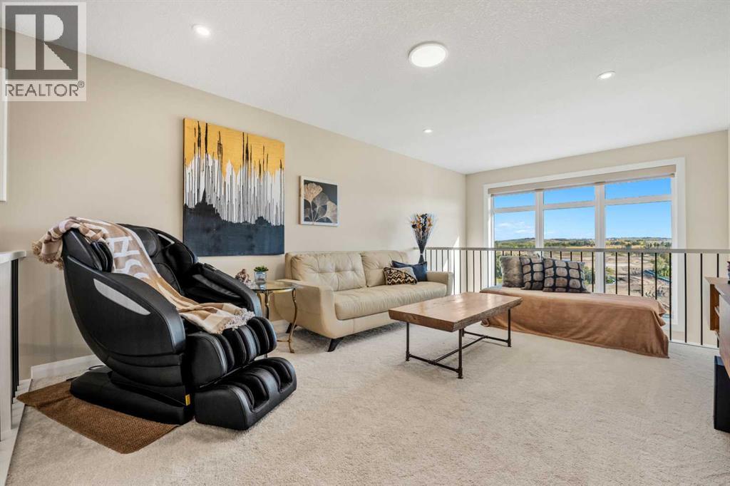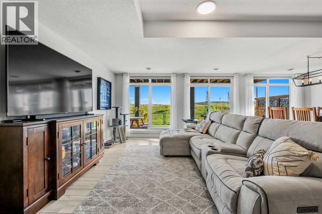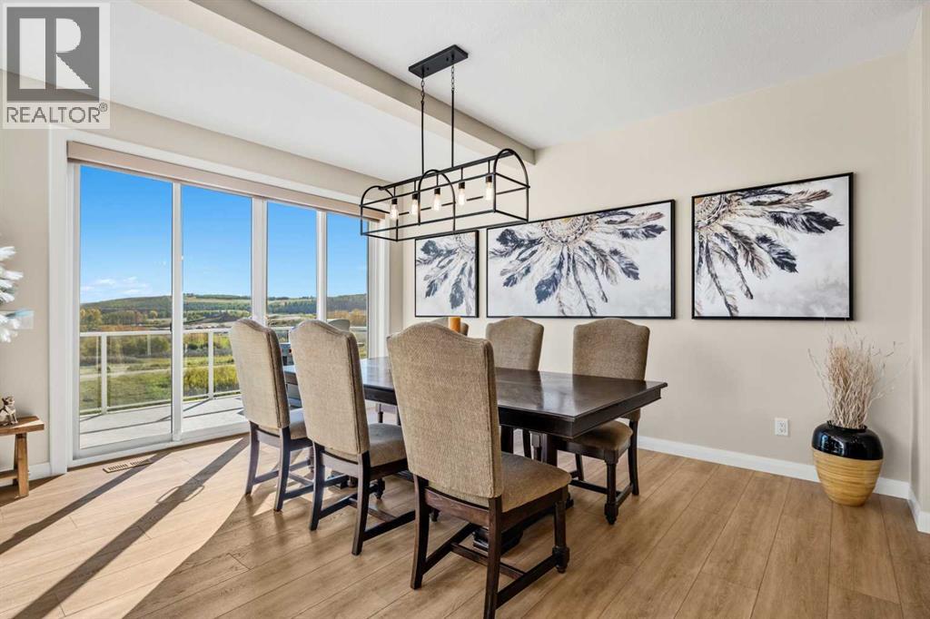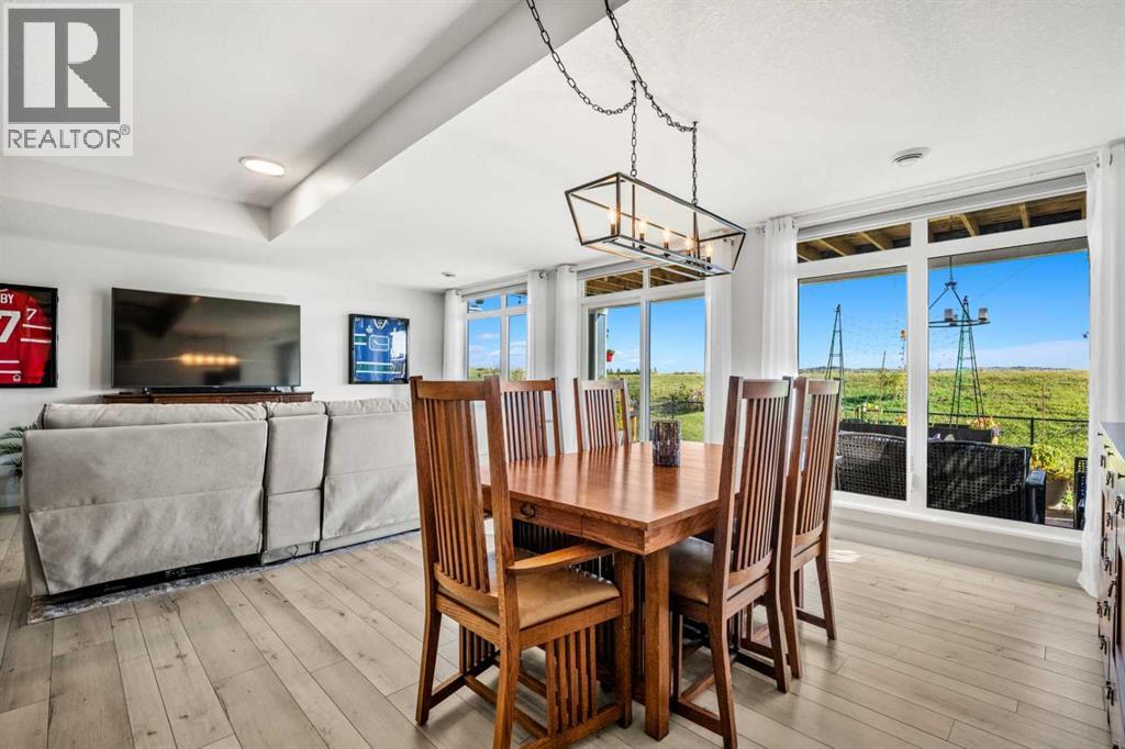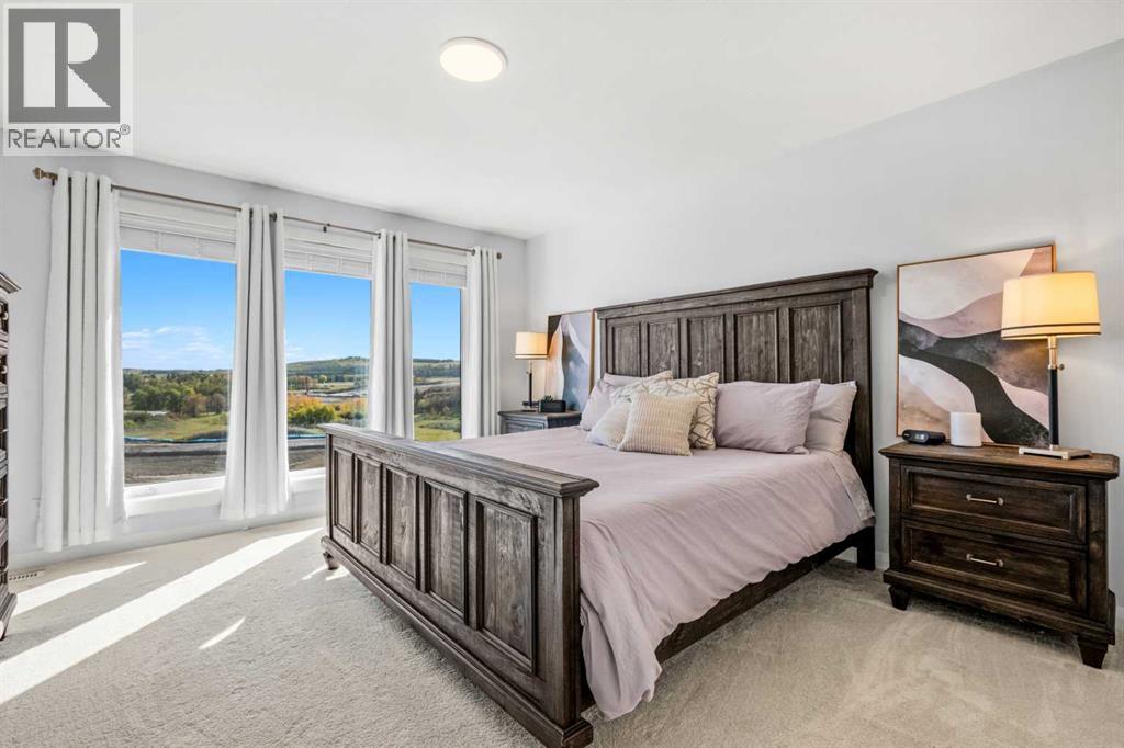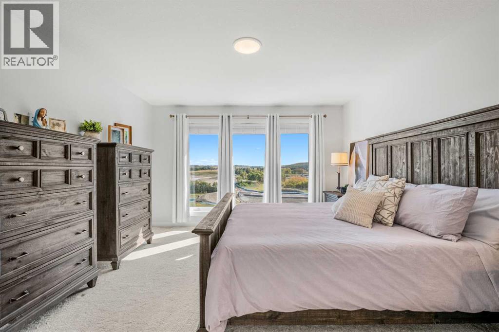 The One You’ve Been Waiting For – A Rare Find in Hudson at Pine Creek. Some homes check boxes - this one stops you in your tracks! A fully finished 2-storey walk-out in Hudson at Pine Creek, crafted for those waiting for the perfect home. With 2,600+ sq. ft. above grade and a beautifully developed lower level for 3,700+ sq. ft. total, it delivers lifestyle and setting. Towering windows frame rolling Foothills views, endless south/west skies, and trails steps from your back gate - a backdrop you won’t find again. Inside, every detail feels elevated yet inviting. The gourmet kitchen commands attention with its oversized island, gas range, full coffee bar and walk-through Butler’s pantry with custom live-edge countertop - ideal for daily living and stylish hosting. The open layout flows across wide-plank blond LVP floors under a soaring staircase that floods the entry with drama and light. Off the main living area, a massive deck with gas BBQ hookup and updated Tuff deck finish spans the back. Function meets polish with a spacious double garage leading to a mudroom with custom built ins. A main floor office/library/playroom adds versatility. Upstairs, the private primary retreat impresses with double walk-in closets, spa-like en-suite, and elevated views. The bonus room showcases panoramas, while two more large bedrooms (both with walk-ins) sit nearby. A dream laundry and well-planned bath make the upper floor both practical and stylish. The finished walk-out basement sets this home apart. With its own kitchen, oversized bedroom, bright living space, and abundant natural light, it’s perfect for multi-generational living or adult kids needing independence. Not using the illegal suite? Imagine the ultimate games room, home theatre, or an epic bar—this level adapts to your vision. Step outside to a maintenance-free yard with premium artificial turf and direct trail access. A large playground across the street offers open space for games and gatherings. Extras push this ho me over the top: exterior wrapped lighting (no more Christmas lights), programable motorized blinds that let in light while blocking heat, custom built-ins, upgraded powder room vanity, AC, and dual-zoned HVAC. Even the exterior is fully finished for pure, no-maintenance enjoyment. If you’ve been waiting for a home that stands out—a rare blend of style, function, and setting—this is it! Move-in ready, unforgettable, and truly one-of-a-kind. (id:63190)