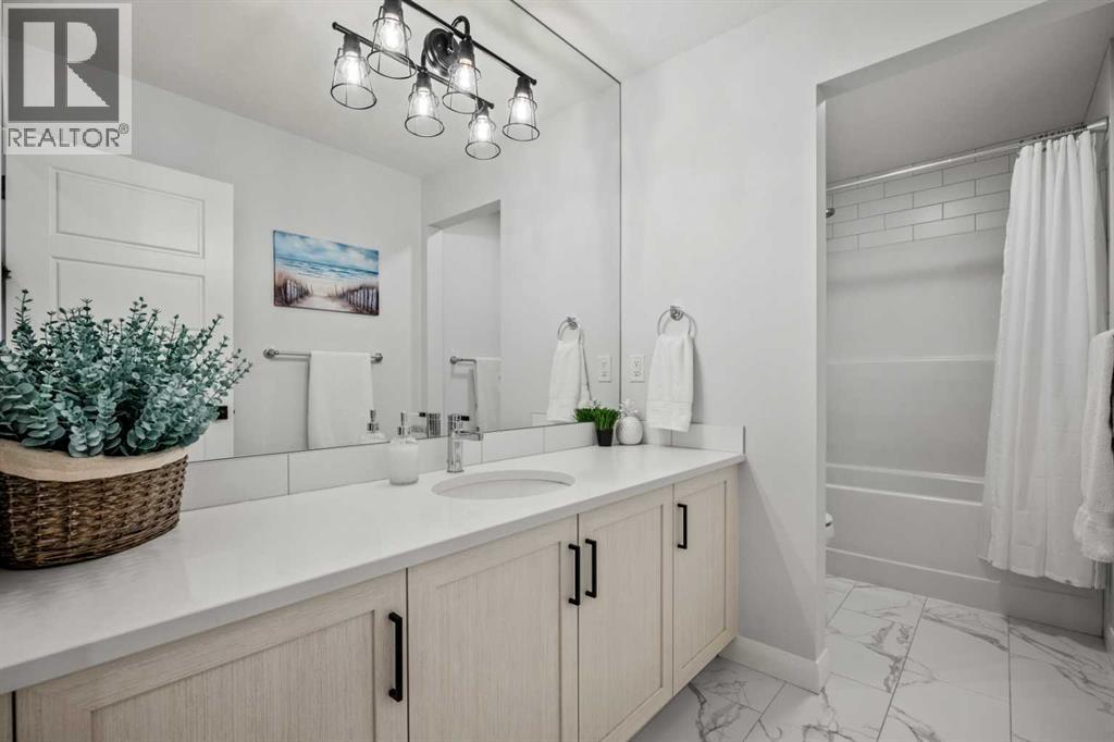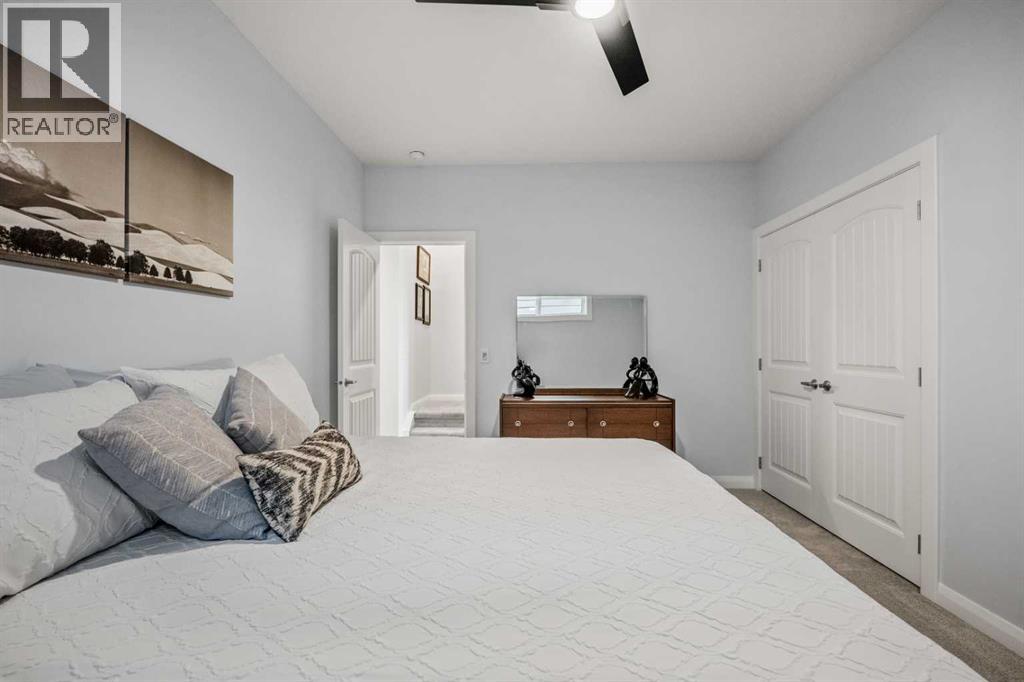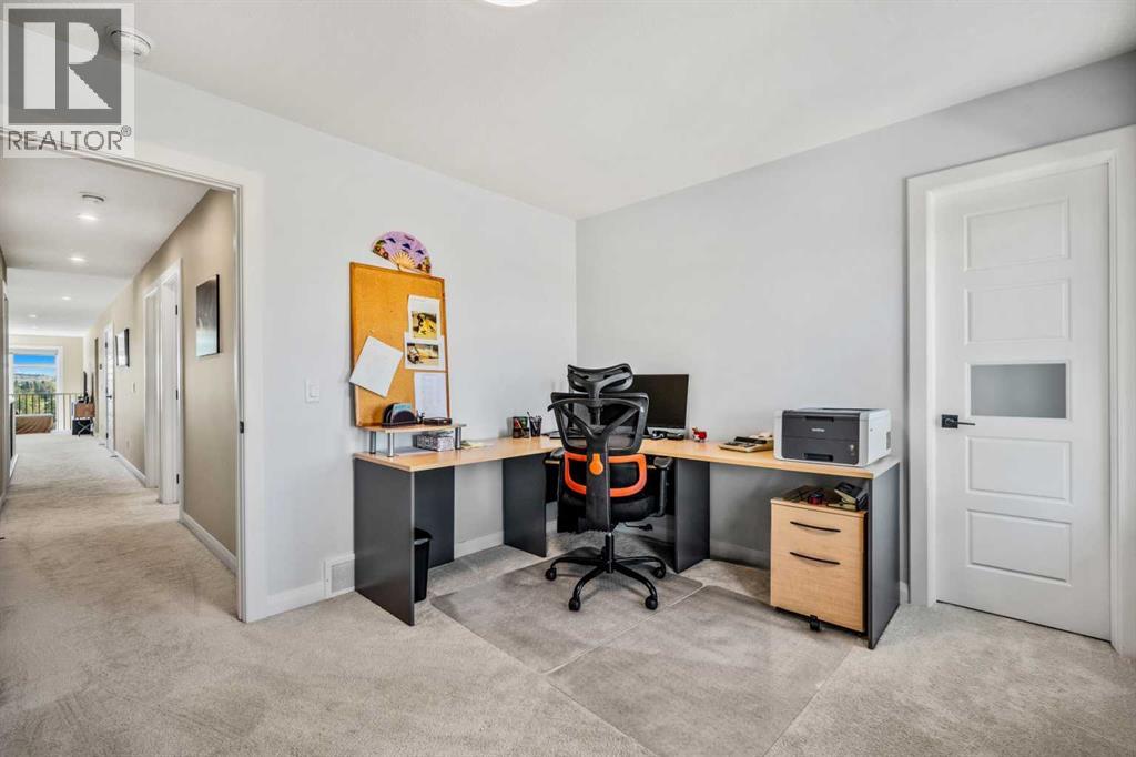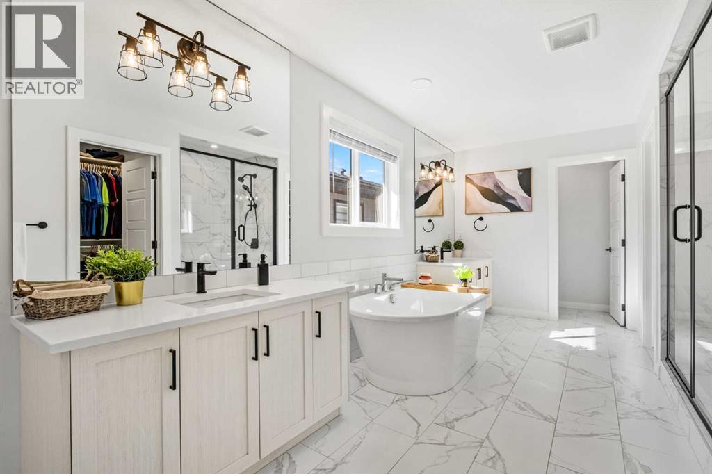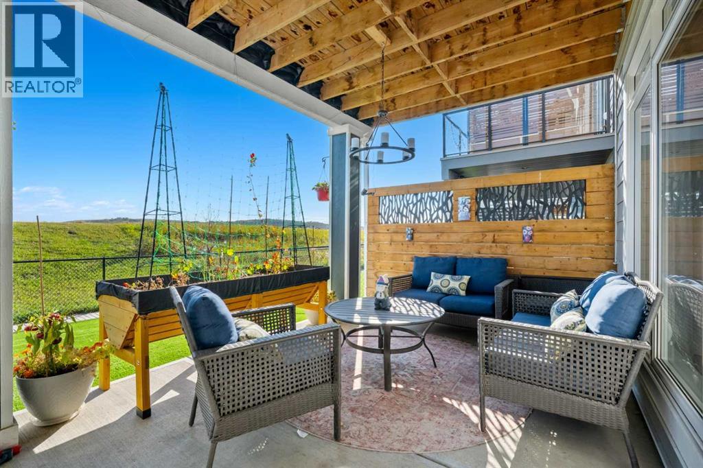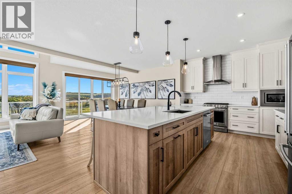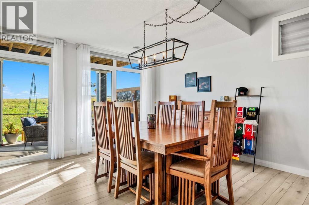The One You’ve Been Waiting For – A Rare Find in Hudson at Pine Creek. Some homes check boxes - this one stops you in your tracks! A fully finished 2-storey walk-out in Hudson at Pine Creek, crafted for those waiting for the perfect home. With 2,600+ sq. ft. above grade and a beautifully developed lower level for 3,700+ sq. ft. total, it delivers lifestyle and setting. Towering windows frame rolling Foothills views, endless south/west skies, and trails steps from your back gate - a backdrop you won’t find again. Inside, every detail feels elevated yet inviting. The gourmet kitchen commands attention with its oversized island, gas range, full coffee bar and walk-through Butler’s pantry with custom live-edge countertop - ideal for daily living and stylish hosting. The open layout flows across wide-plank blond LVP floors under a soaring staircase that floods the entry with drama and light. Off the main living area, a massive deck with gas BBQ hookup and updated Tuff deck finish spans the back. Function meets polish with a spacious double garage leading to a mudroom with custom built ins. A main floor office/library/playroom adds versatility. Upstairs, the private primary retreat impresses with double walk-in closets, spa-like en-suite, and elevated views. The bonus room showcases panoramas, while two more large bedrooms (both with walk-ins) sit nearby. A dream laundry and well-planned bath make the upper floor both practical and stylish. The finished walk-out basement sets this home apart. With its own kitchen, oversized bedroom, bright living space, and abundant natural light, it’s perfect for multi-generational living or adult kids needing independence. Not using the illegal suite? Imagine the ultimate games room, home theatre, or an epic bar—this level adapts to your vision. Step outside to a maintenance-free yard with premium artificial turf and direct trail access. A large playground across the street offers open space for games and gatherings. Extras push this ho me over the top: exterior wrapped lighting (no more Christmas lights), programable motorized blinds that let in light while blocking heat, custom built-ins, upgraded powder room vanity, AC, and dual-zoned HVAC. Even the exterior is fully finished for pure, no-maintenance enjoyment. If you’ve been waiting for a home that stands out—a rare blend of style, function, and setting—this is it! Move-in ready, unforgettable, and truly one-of-a-kind. (id:63190)