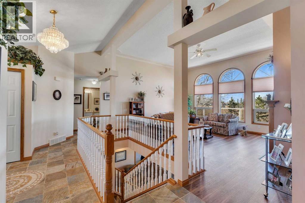 Walkout Bilevel on 4 acres with a triple attached garage and over 3000 sq. ft. of developed living space. This is the kind of property that offers both space and flexibility—inside and out. The main floor is bright and open with high ceilings that make the entire home feel even larger. The living room is anchored by a gas fireplace and flows easily into the white kitchen, complete with ample cabinetry, generous counter space, and a sunny breakfast nook overlooking the property. A formal dining room adds the perfect spot for hosting family dinners or special occasions. There are two bedrooms on the main level, including the primary with its own ensuite, offering a comfortable and private retreat. The fully developed walkout basement expands your living space with 2 additional bedrooms and a den, a large rec room with 2nd fire place, and direct access to the outdoors—ideal for guests, a growing family, or multi-generational living. Outside, the 4 acres provide endless possibilities. Enjoy the privacy, the views, and the freedom to use the land the way you want—all just a short drive from amenities. (id:63190)