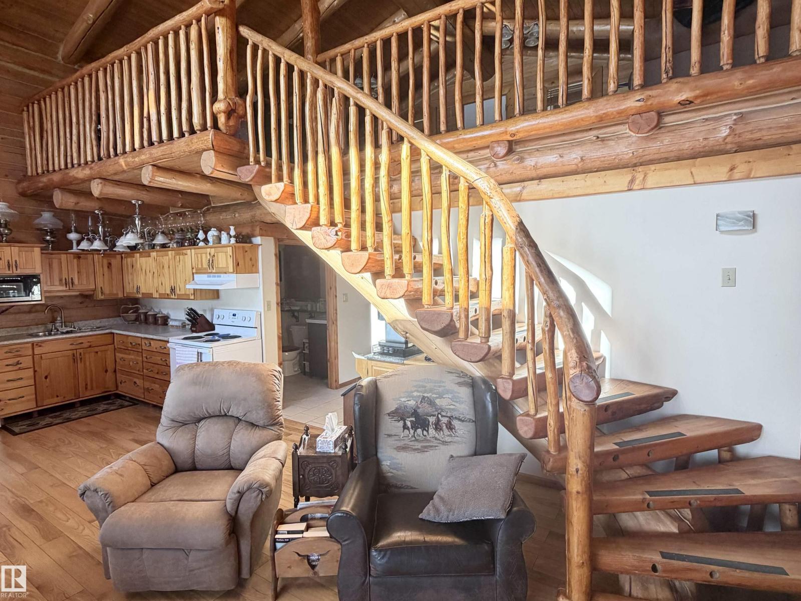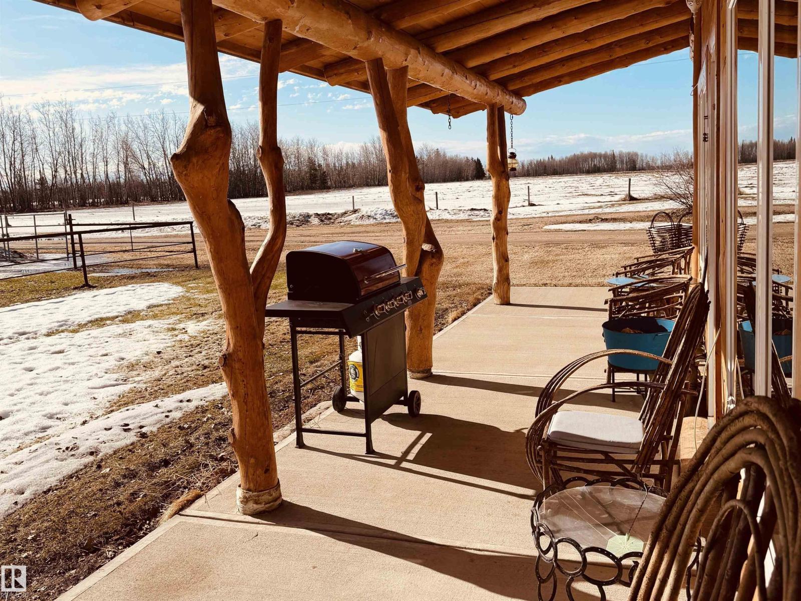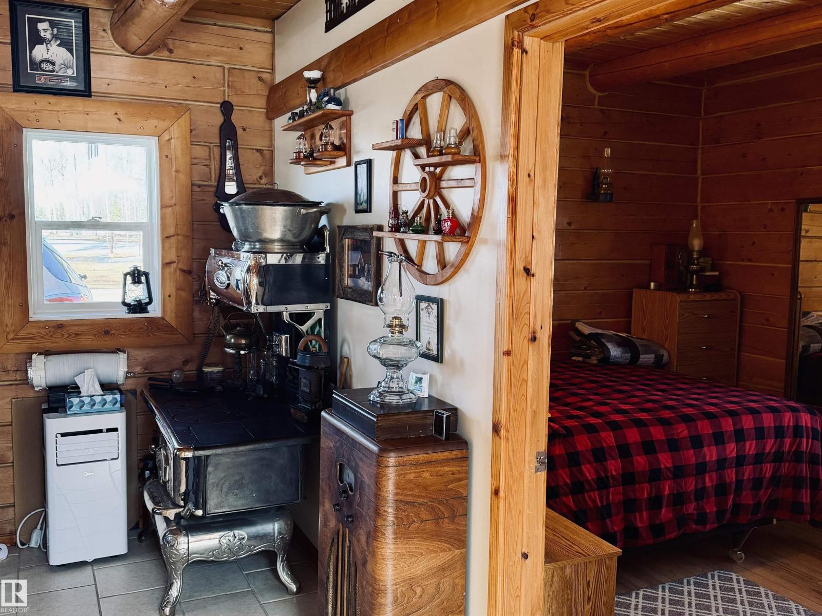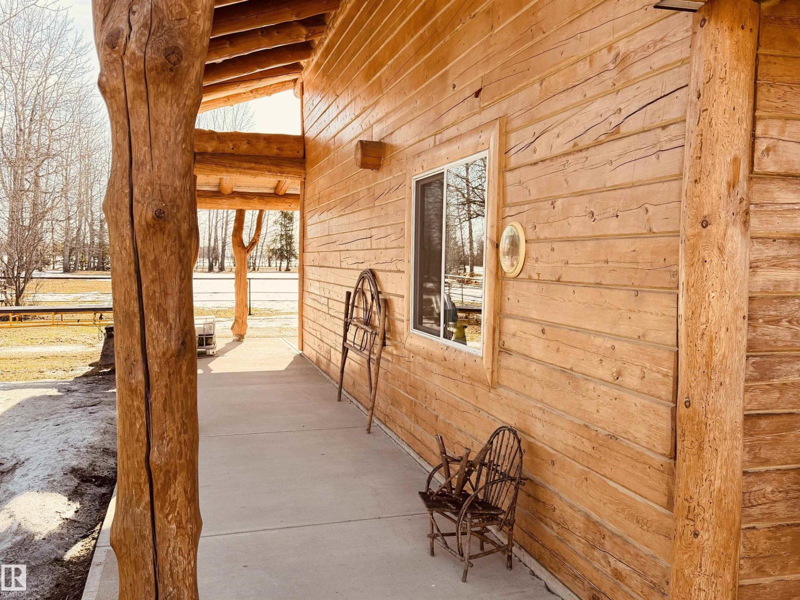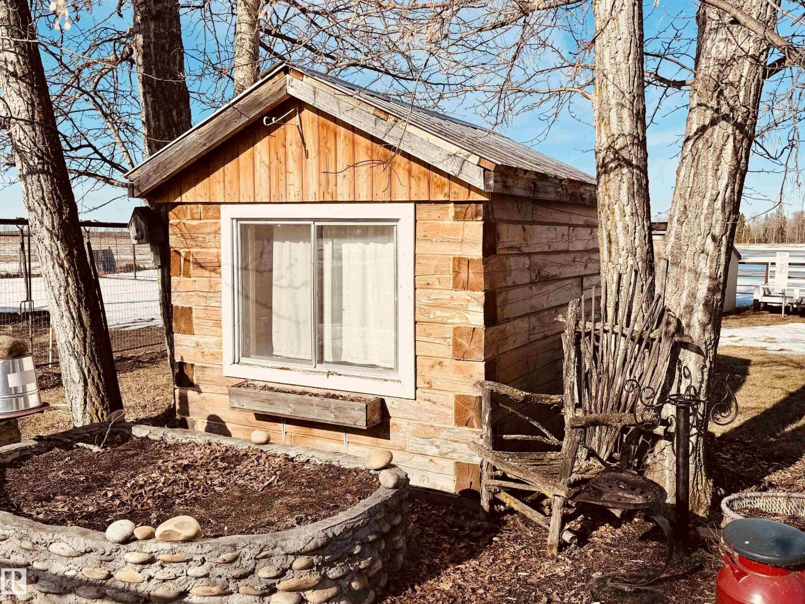 Welcome to this beautifully maintained 8.85-acre retreat in Woodlands County, where comfort, craftsmanship, and country living come together. Set among mature trees and open pasture, this property offers privacy and functionality for those seeking a rural lifestyle. The charming log home showcases quality workmanship and thoughtful care throughout. Inside, a bright and inviting layout features one bedroom, one bath, and a spacious loft ideal for guests, an office, or additional living space. Large windows fill the home with natural light, while the covered front porch provides a perfect place to relax and enjoy the peaceful surroundings. Fully set up for horses, the property includes fencing, a barn and well-kept outbuildings. A large detached shop/garage offers excellent space for vehicles, equipment, or projects. This turnkey acreage reflects pride of ownership and is ideal as a full-time residence, hobby farm, or quiet country escape. (id:63190)