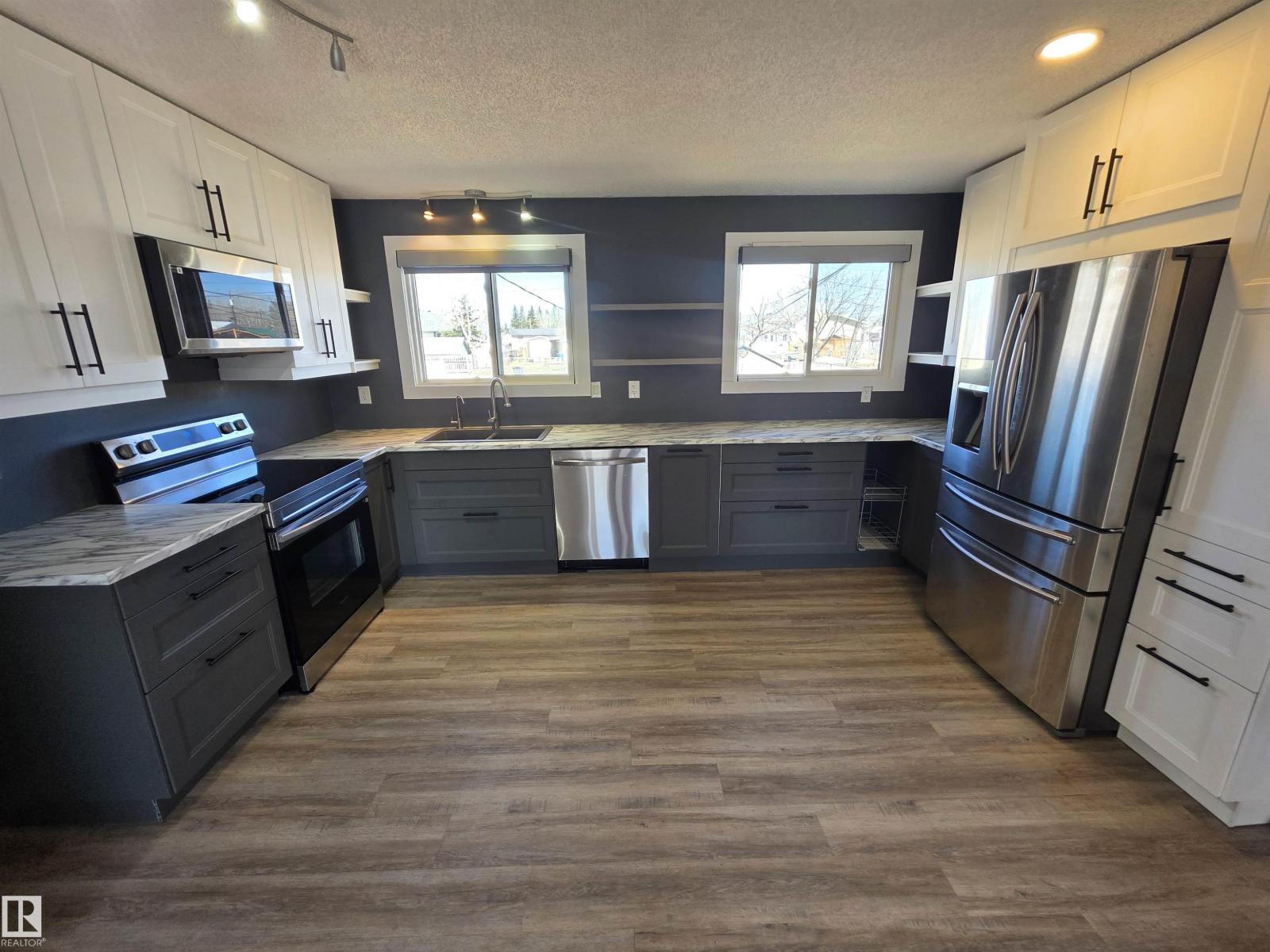 “If you build it, they will come” but this one is more like your house of dreams. This 4 bedroom, 3 bath home in Entwistle offers serious flexibility with 3 bedrooms upstairs, a renovated main floor kitchen, and a fully finished basement that feels like its own private space. Downstairs features a second kitchen setup, with separate access and a beautifully finished bathroom highlighted by an exquisite custom shower. The layout is modern and comfortable, with vinyl windows throughout and a huge laundry and utility room that adds real everyday function. Outside, the massive backyard offers plenty of room to enjoy, expand, or develop, and includes a solid storage shed. A versatile property that works for family living today and keeps your options open for tomorrow. (id:63190)