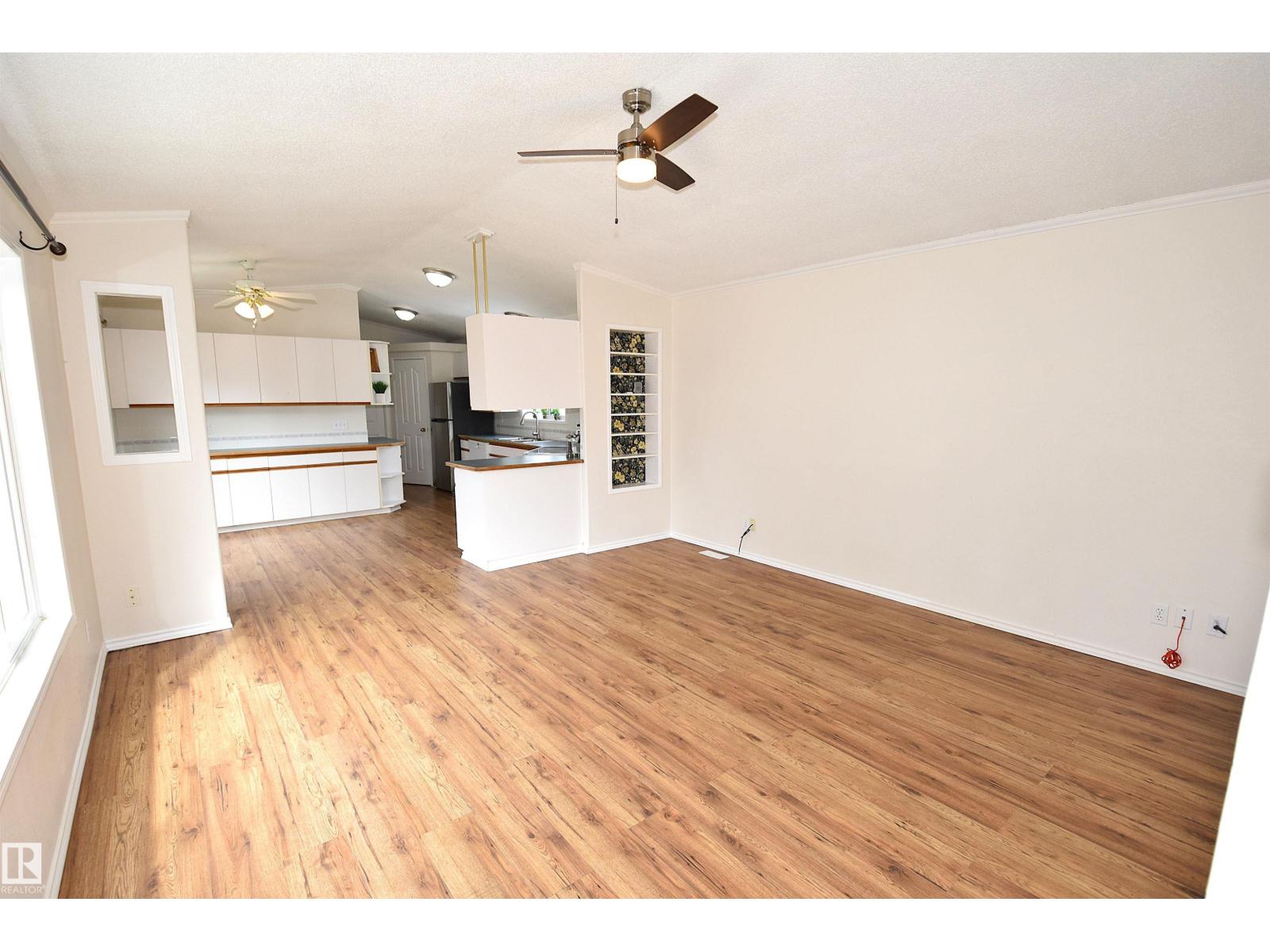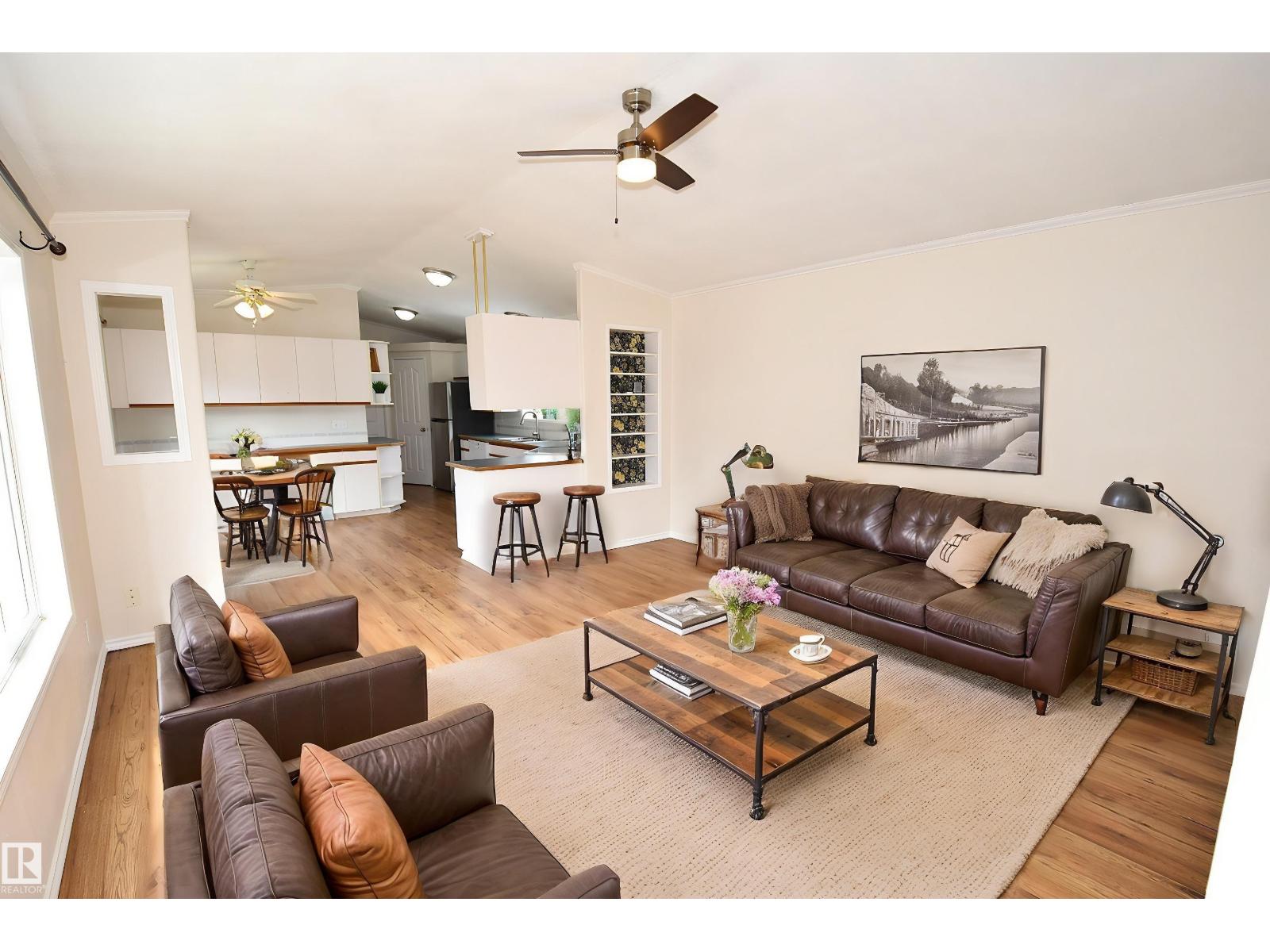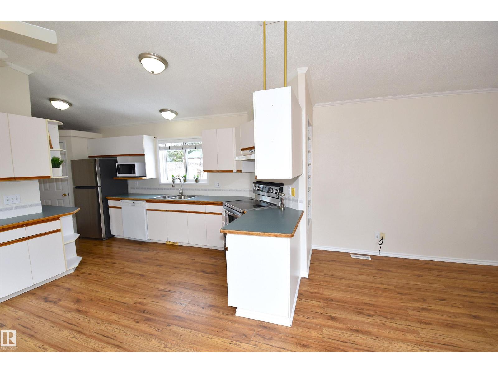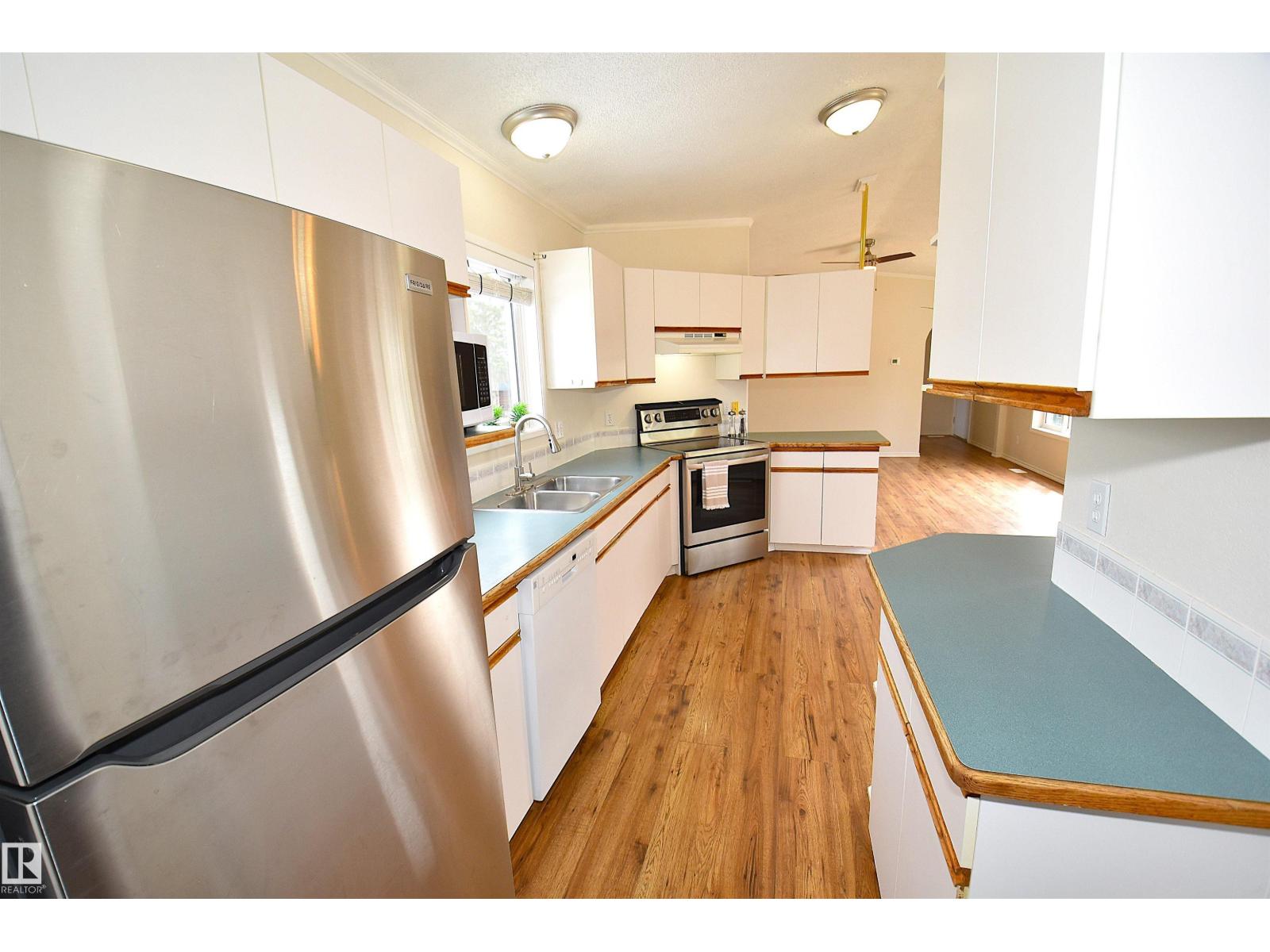 Welcome to Birchwood Village Green where you can live in the Country and Drive your Golf Cart to the Course. The Entrance to the Community is Secure with a Pass Code Gate. Your New Home has 3 Bedrooms including the Primary, which are separated by a Huge Living Room and Kitchen/Dining Room. Vaulted Ceiling Opens the Main Living Space. Fresh Paint and Newer Flooring throughout the Home. Large Picture Window Provides Natural Light. Abundance of Kitchen Cabinets & Corner Pantry. King Sized Primary Bedroom w/4PC En-suite & Walk -In Closet. Laundry Room located off the Kitchen w/2nd Access to Outside Lower Deck. Two other Bedrooms w/ corner Walk-in Closets, & are located next to the 4PC Bath. Front entrance also has Wheelchair Access. Single Detached Garage & Separate Shed are both Insulated w/power. Raised Vegetable/Flower Garden Bed. Walking Distance to the Community Center where Many Events are held by the Social Club to Enjoy with New Neighbors. Clubhouse with Great Restaurant after a Round of Golf. (id:63190)