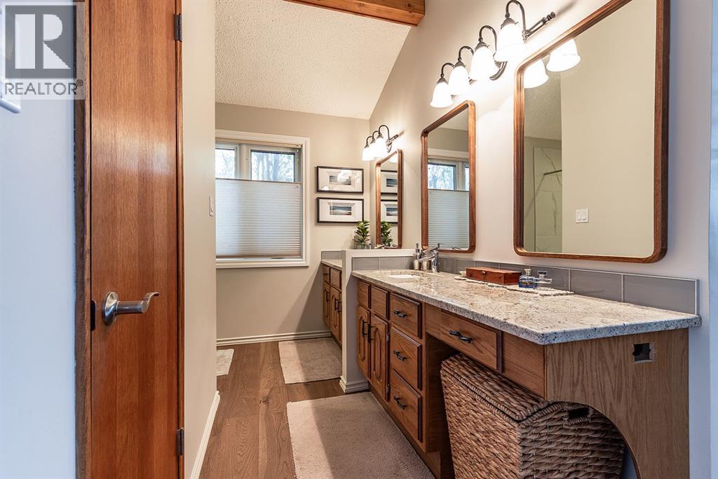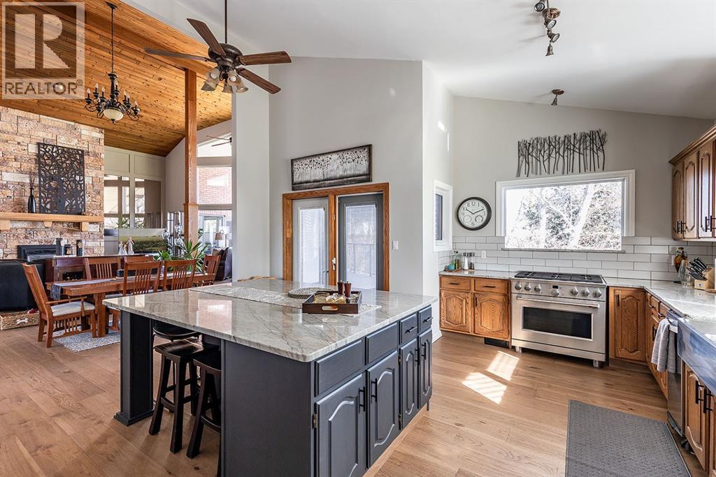 Stunning 1,941 sq ft walkout bungalow offering a rare blend of luxury, privacy, and natural beauty. Backing and siding onto Connaught Pond and a serene nature reserve, this home delivers breathtaking views and an unmatched sense of tranquility.Step inside to soaring vaulted ceilings adorned with rich cedar planking and expansive floor-to-ceiling windows that flood the space with natural light. The main floor showcases hand-scraped hickory hardwood throughout, creating a warm and upscale feel.The chef-inspired kitchen features upgraded stainless steel appliances, including a dual fuel 36" range, complemented by a convenient butler’s pantry—perfect for entertaining. French doors lead to a full-length deck where you can relax and take in the peaceful surroundings.The primary suite is a true retreat, complete with private deck access, a welcoming ensuite with double vanities, and thoughtful design throughout. A steam shower on the main level adds a spa-like touch.Designed with flexibility in mind, the mudroom includes additional laundry hookups, while the fully developed walkout basement has been built for full accessibility.Located in a quiet, peaceful neighbourhood yet centrally situated, this home also features a triple attached garage and exceptional indoor-outdoor living.A rare opportunity to own a beautifully appointed home in an unbeatable setting. (id:63190)