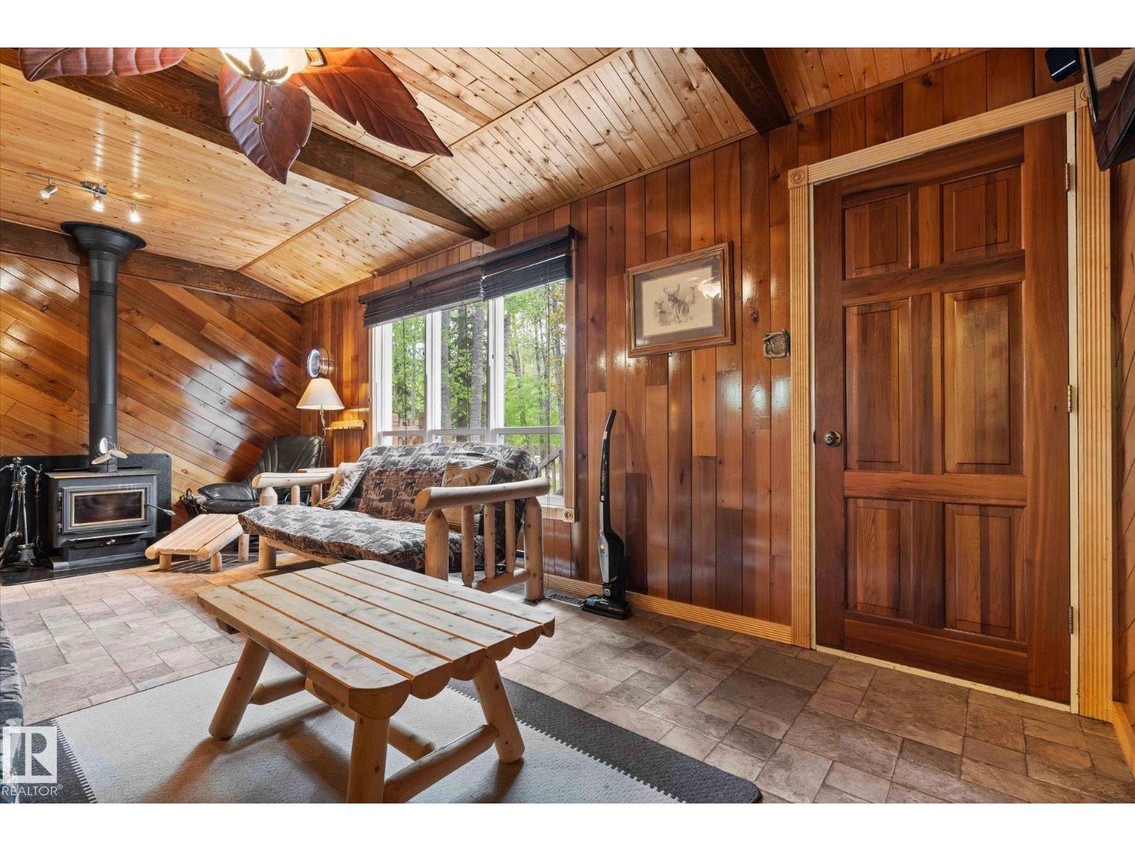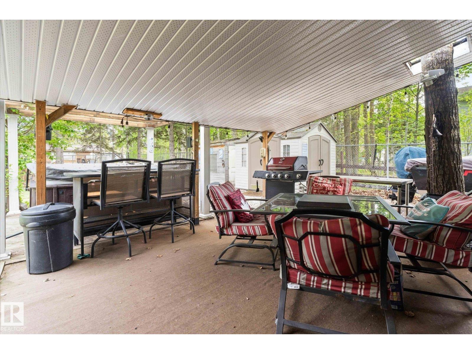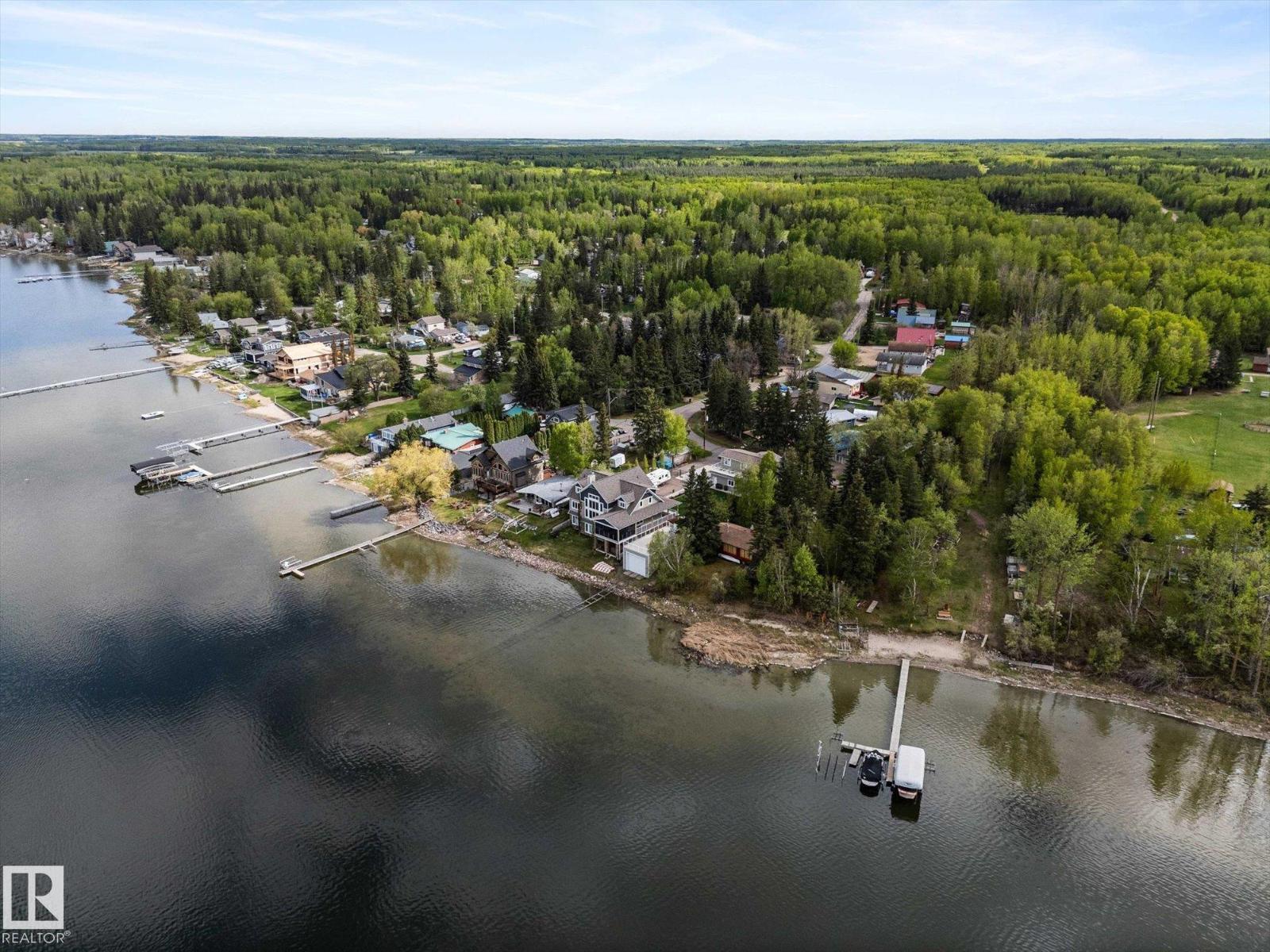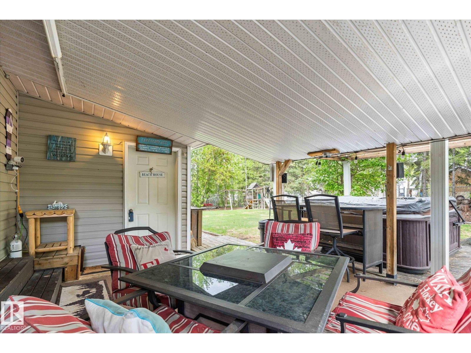 Located in the Summer Village of West Cove on the south shore of Lac Ste. Anne, this 4-season property is turn-key and ready for a new family to enjoy. Offering 2 bedrooms and 2 bathrooms, the home features a functional layout. Set on two lots, there is plenty of room for parking, outdoor fun, and future garage development. Everything is included—indoor and outdoor furniture, hot tub, firepit, playset, and kennel—making this a true move-in ready retreat. Perfect for entertaining, one bathroom is accessible from outside for added convenience. There is also the opportunity for shared boat dock access, with a lift available (id:63190)
