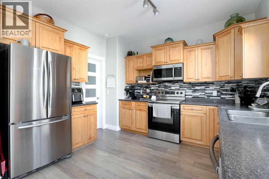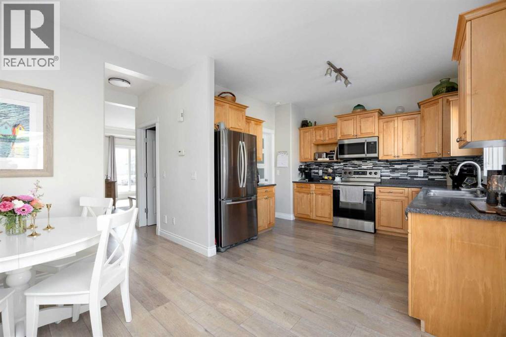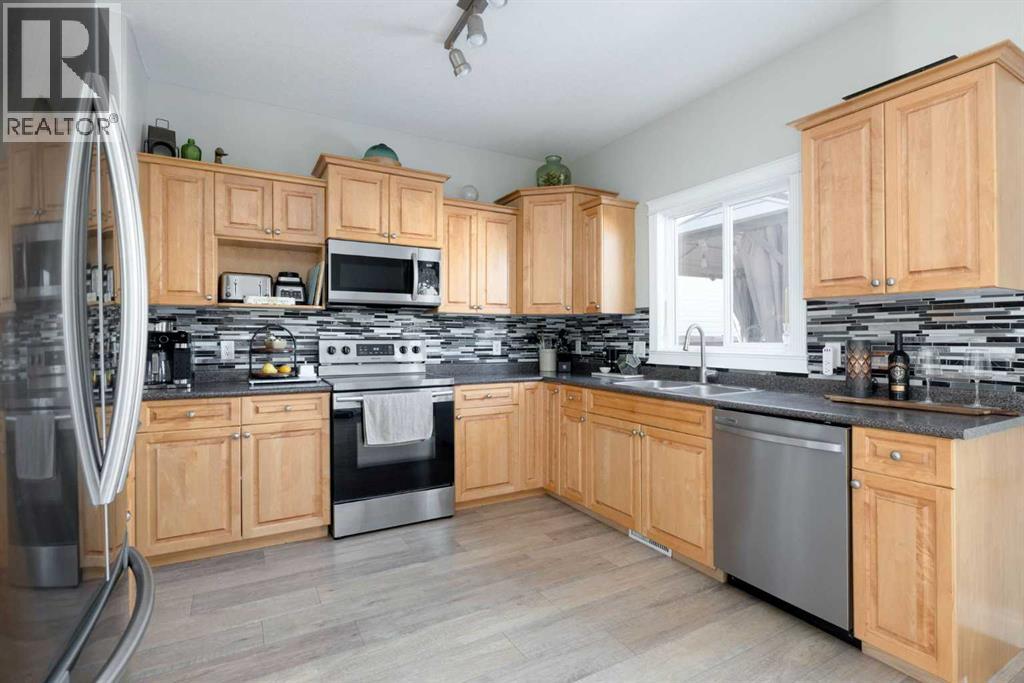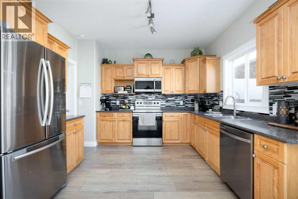 Welcome to 253 Pickles Crescent. Step inside and you’re greeted by a bright, welcoming layout that flows effortlessly from space to space. The main living area is filled with natural light from the oversized front windows, creating that cozy-but-open vibe everyone is after. Updated lighting (2026) and modern black hardware throughout add a fresh, cohesive feel, while the vinyl plank flooring (2024) keeps things stylish and practical for everyday life.The kitchen is functional, warm, and ready for real life with maple cabinetry, tile backsplash, and a full lineup of updated appliances including fridge and stove (2023), dishwasher (2025), washer and dryer (2025), and microwave (2026). Upstairs offers three bedrooms, including a spacious primary retreat with walk-in closet and convenient access to the beautifully updated 5-piece bathroom (2022), complete with double sinks and a tile surround tub/shower. Updated carpet on the stairs (2026) adds that extra touch of comfort heading up.Downstairs, the fully developed basement expands your living space with a fourth bedroom, a 3-piece bathroom, and a family room that’s perfect for movie nights, kids’ hangouts, or a quiet escape.Out back, the yard is a great size and absolutely passes the trampoline test, with a wood bench and privacy wall (2025) on the deck creating a cozy outdoor hangout space. The double detached garage offers plenty of room, plus the rare bonus of having space to park a full-size truck sideways in front of the garage for additional parking.Comfort is covered year-round with central A/C, and the location couldn’t be more convenient. You’re within walking distance to transit, grocery stores, fitness facilities, restaurants, and shops, plus close to excellent elementary and junior/high schools, both public and Catholic.This is one of those homes that doesn’t just check the boxes, it actually feels like home the second you walk through the door. (id:63190)