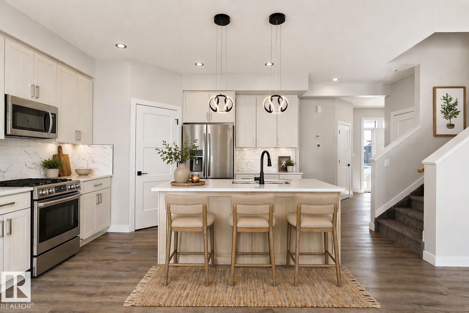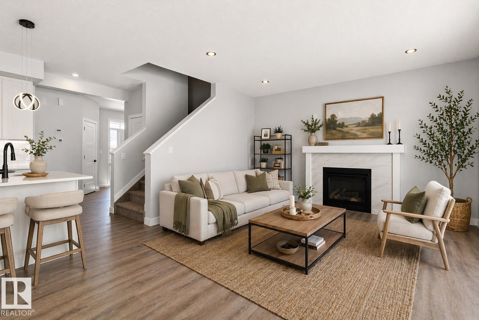 Step into a place that instantly feels like home—this beautifully designed 1,762 sq. ft. two-storey offers comfort, style, and a rare triple attached garage. A welcoming foyer greets you with a built-in bench and front closet, leading into a thoughtfully laid-out main floor featuring a convenient powder room, functional mudroom with custom cubbies, and a walk-through pantry to the heart of the home. The kitchen shines with ample counter space, granite-style subway backsplash, and a large island overlooking the open living room with a cozy gas fireplace and bright dining area. Upstairs, enjoy three spacious bedrooms, a full main bath, and a serene primary retreat with a 5-piece ensuite and walk-in closet, plus upper-floor laundry for added ease. Set on a large lot and close to schools, shopping, and everyday amenities—this move-in-ready home is ready to welcome you. (id:63190)