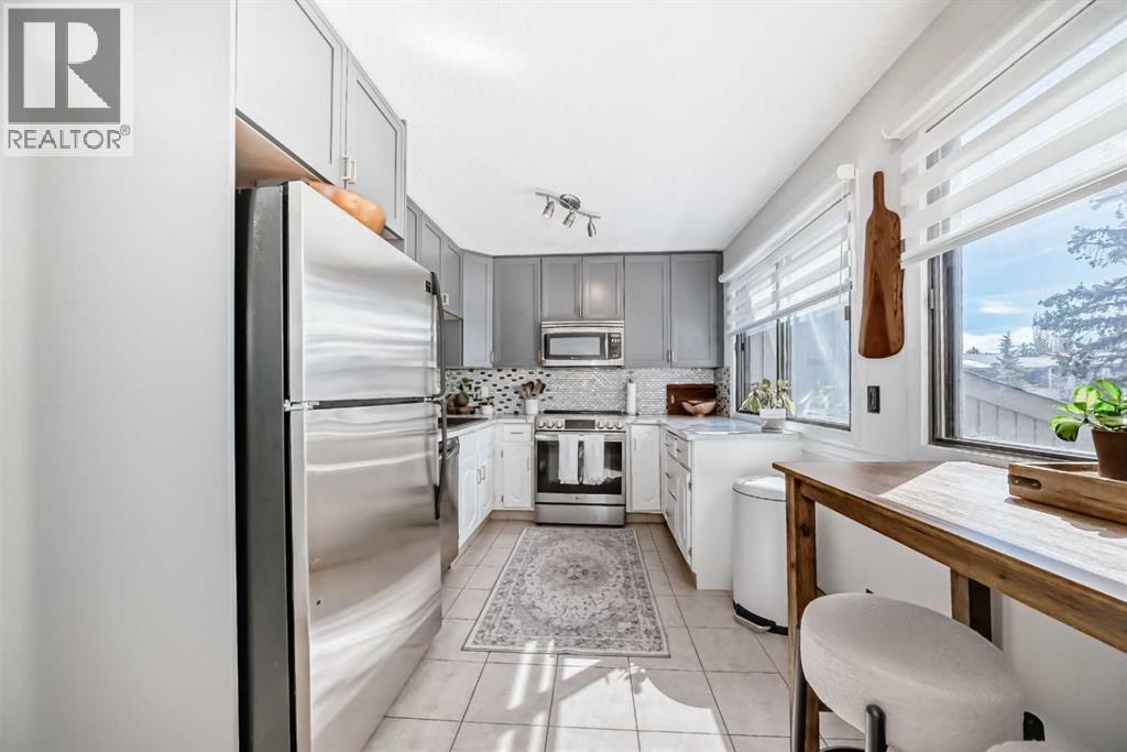 Click brochure link for more details. Welcome to one of Braeside's best-kept secrets — Brandy Lane. Tucked into one of the community's most established complexes, this four-level townhome offers the kind of layout that's genuinely hard to find.The main floor is designed so that the kitchen, dining room, and living room each have their own place without feeling closed off. The living room is anchored by a gas fireplace, 12' ceilings, and floor-to-ceiling windows that bring in great natural light. The kitchen has stainless steel appliances, a reverse osmosis system, and a breakfast nook for morning coffee. The formal dining room sits comfortably between them. It's a layout that lets everyone do their own thing without being on top of each other.Upstairs, the primary bedroom is generously sized with a walk-in closet, a 4-piece ensuite, and a bonus area that works well as a dressing space or sitting area. Two additional large bedrooms and a second full bathroom round out the upper level. Downstairs, you'll find a flexible space that works well as an office or home gym, plus a laundry area with a new dryer (2025) and new furnace (December 2025).Step outside, and the deck backs onto some of the most beautiful mature trees in the area. It's a genuinely private and peaceful outdoor space that's hard to find in a complex setting.Single attached garage, insulated and drywalled, with an extra-long driveway for a second vehicle.Condo fees include water and sewer, and the complex has real upgrades coming: new wood fascia and soffits, additional landscaping and tree planting, and freshly painted wood fencing. An easy online portal keeps residents connected for documents and communications. Minutes to Glenmore Reservoir pathways, schools, shopping, transit, and Southland Leisure Centre. (id:63190)