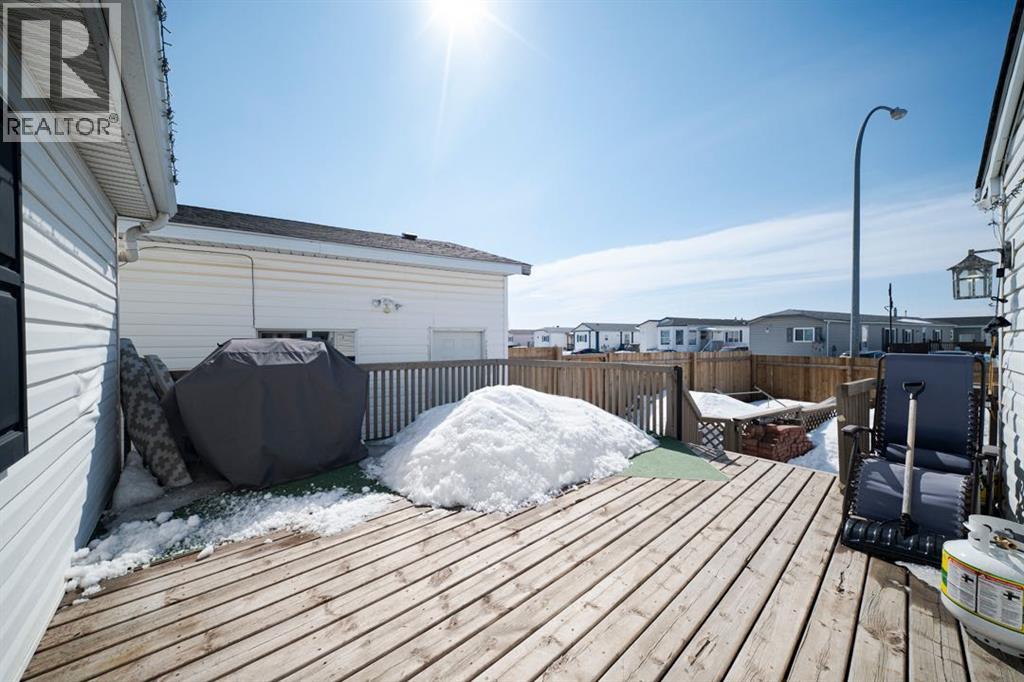 Welcome to 125 Grant Bay, a well maintained three bedroom, two bathroom home sitting on a spacious 5,961 square foot corner lot with an abundance of parking, a show-stopping detached garage, updated shingles 2024 and hot water tank in 2025 and a layout designed for comfortable everyday living. With a front driveway plus a second paved driveway in the back, and a detached 22x28 heated garage, this property is a dream for anyone who needs serious space for vehicles, hobbies, or storage.The front deck welcomes you inside where vaulted ceilings, LED lighting, and neutral grey walls create a bright and open atmosphere throughout. The open concept main living area features laminate flooring in the living room that flows into a well appointed kitchen with tile flooring, white cabinetry, stainless steel appliances, and a dining area, making the space ideal for both daily routines and casual entertaining. No carpet anywhere in the home means easy maintenance from top to bottom.The primary bedroom comfortably fits a king size bed and includes a walk-in closet and a four-piece ensuite. Two additional bedrooms are found on the other side of the home both offering flexibility for families or a home office setup. A second four-piece bathroom serves the additional bedrooms, and a dedicated laundry room rounds out the interior.Outside, the fully fenced yard enjoys afternoon sun and offers a wonderful outdoor living space complete with a back deck and an included gazebo. The corner lot provides an impressive sense of space and privacy that is hard to find.The detached 22x28 garage is truly the star of the property, heated with 220/240v plug and currently set up with a golf simulator (simulator negotiable), giving you a sense of just how much this space can accommodate. Whether you envision it as a workshop, gym, entertainment space, or simply the ultimate garage, the possibilities are nearly endless.Additional highlights include central air conditioning, updated shingles and fe ncing in 2024 and a new Hot Water Tank in 2025 offering peace of mind for years to come.125 Grant Bay delivers on space, parking, and lifestyle in a package that is tough to beat. Schedule your private showing today. (id:63190)