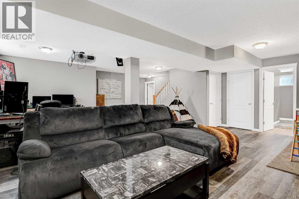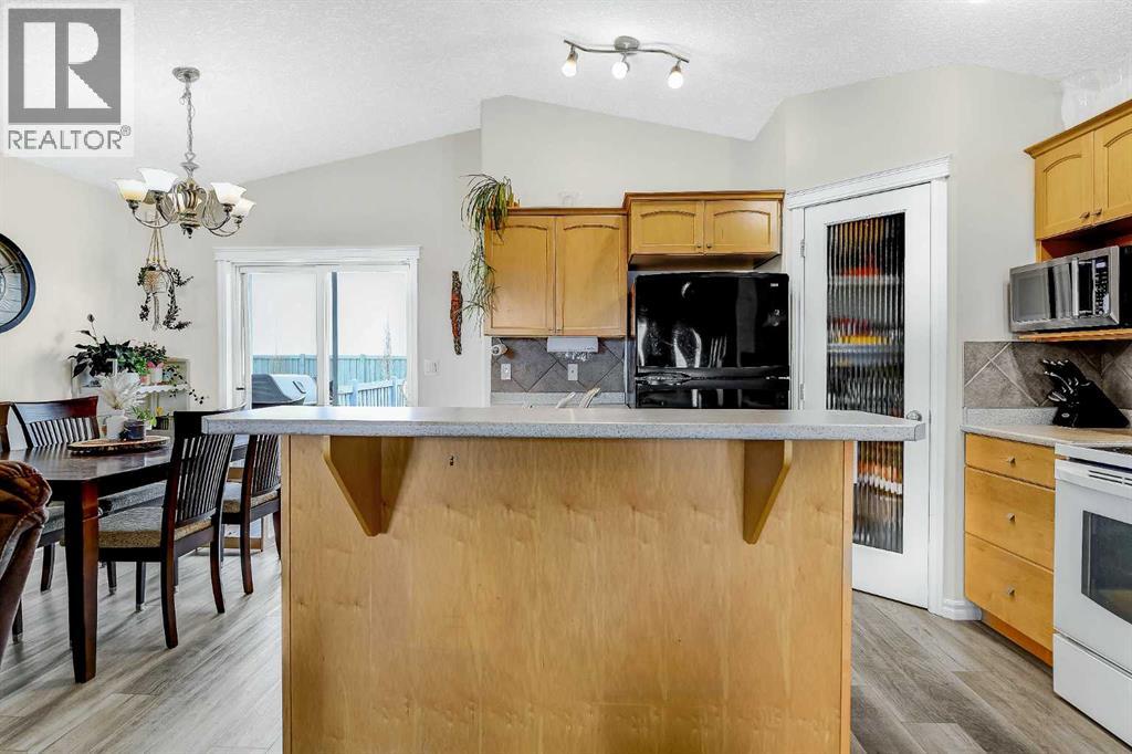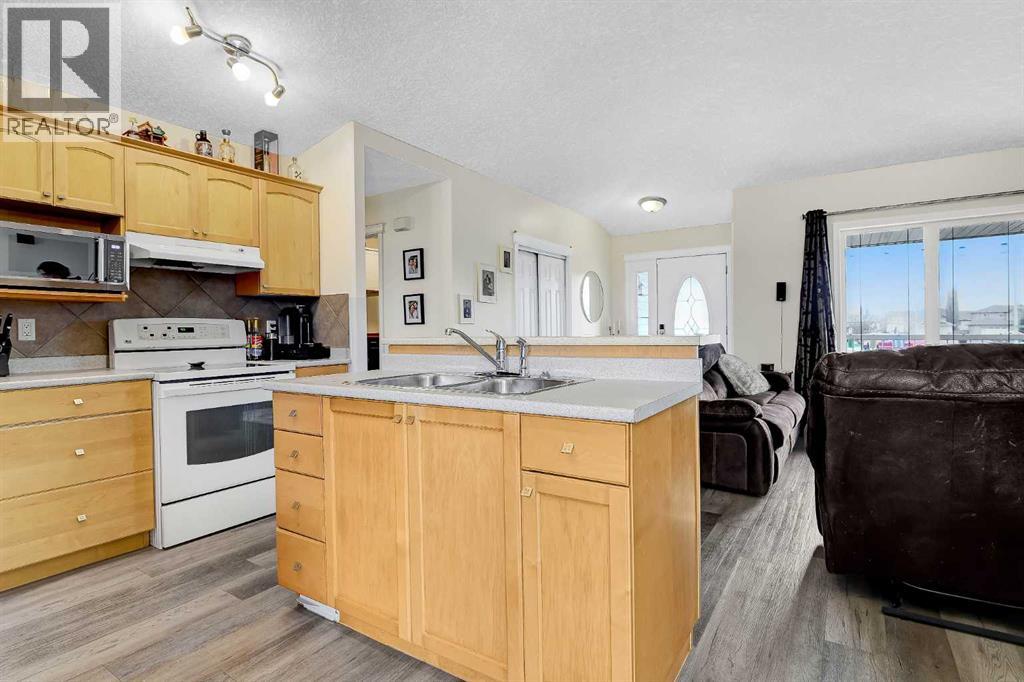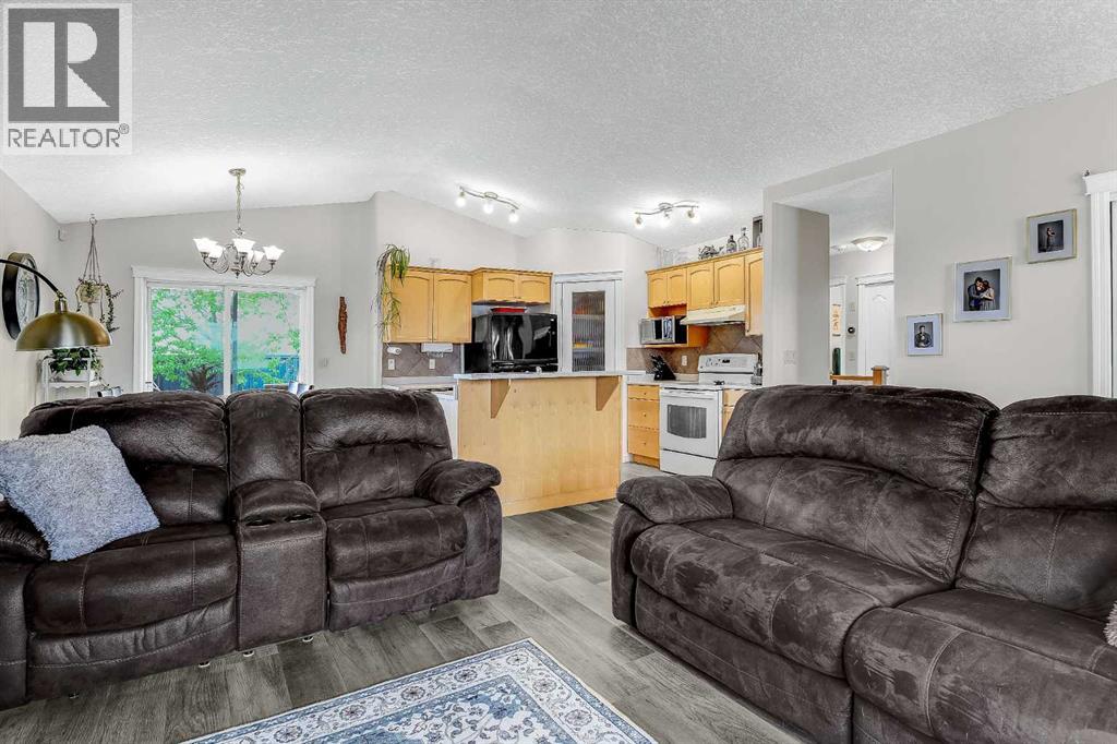 Beautiful 1,093 sq, ft. bungalow in Westpointe offers a bright, open concept main living area, complete with a cozy fireplace that welcomes you right from the front door. The dining area features patio doors that lead to a covered deck-perfect for relaxing or entertaining- leading to a fully fenced, spacious backyard. The main floor includes a generous primary suite with a 4-piece ensuite, along with the convenience of main floor laundry. Downstairs, you will find a fully developed basement with an additional bedroom and bathroom, plus a large, inviting family room complete with theatre system-ideal for movie nights or hosting guests. (id:63190)