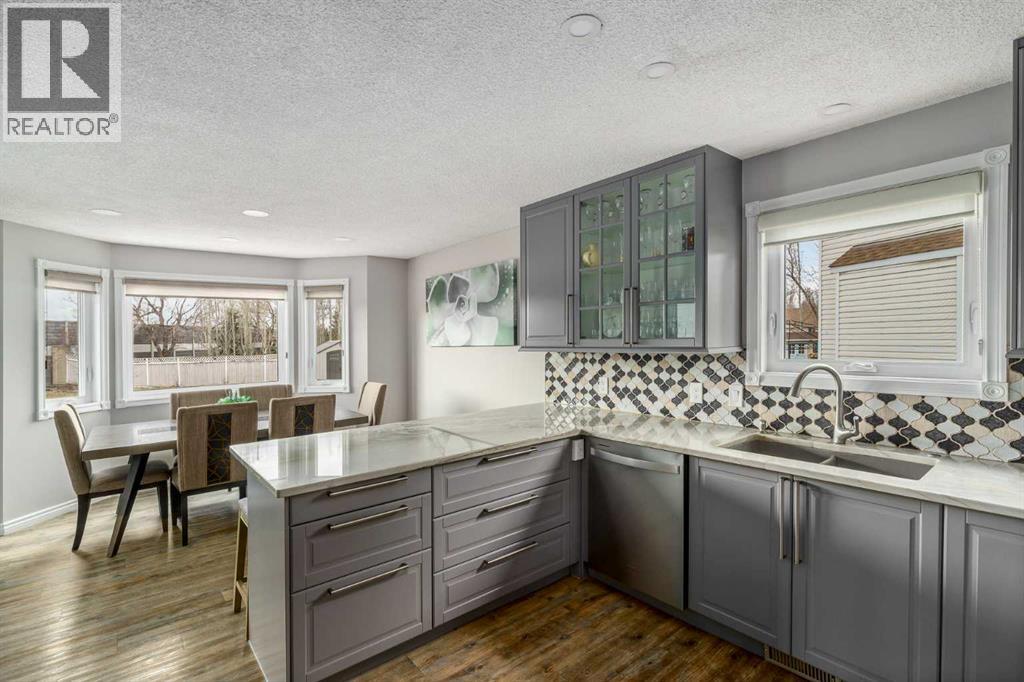 Rare opportunity in Douglas Glen. This home sits on a premium pie-shaped cul-de-sac lot, offering a significantly larger and more private backyard than typical properties in the area. Minimal traffic, more usable space, and a setting that’s hard to find.featuring a large composite deck with a gazebo, leading to a custom stamped concrete keyhole fireplace area perfect for entertaining or private relaxation. This property offers nearly 2,300 sq ft of fully developed living space, including a fully finished basement with a bedroom and ensuite. Inside, you’ll find a fully renovated kitchen that elevates the entire home. The living room welcomes you with a soaring vaulted ceiling and large windows, filling the space with natural light and creating an open, airy feel, anchored by a striking stone-faced fireplace feature wall. The dining area overlooks the expansive backyard, featuring a mature apple tree, beautifully maintained flower beds and raspberry bushes creating a peaceful and scenic setting.This property stands out with extensive upgrades, giving buyers peace of mind and true move-in-ready living. Major components have been addressed, including the roof, furnace, vinyl flooring throughout the main level, triple-glazed windows, AC, upgraded light fixtures and a kitchen sink garburator. This home is just minutes from golf courses, tennis courts, playgrounds and seasonal skating. Explore the outdoors with pathways leading to Fish Creek Park and the Bow River, ideal for walking, biking, and year-round enjoyment. Walk to Quarry Park or Douglas Square for everyday essentials including shopping, restaurants, the YMCA, medical services, and transit. Commuting is effortless with quick access to Deerfoot Trail, along with alternative routes like Ogden Rd providing efficient access all the way into downtown. (id:63190)