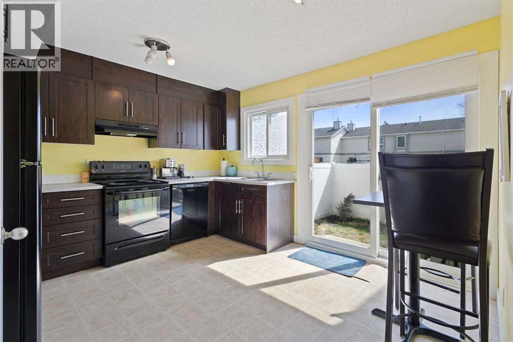 Welcome to sought-after Deer Ridge—where comfort, convenience, and nature come together. Ideally located just steps from transit, everyday amenities, and the scenic pathways of Fish Creek Park, this beautifully maintained home offers the perfect balance of urban access and outdoor living. This move-in-ready 2-bedroom, 1.5-bath home offers comfort and convenience. Bright front living room with large window, and an updated kitchen featuring espresso cabinetry, ample counter space, pantry, and black appliances. The dining area opens to a fully fenced private backyard.Upstairs includes a spacious primary bedroom with double closet, a refreshed 4-piece bath, and a second bedroom with ample natural light. Well-managed complex with major updates already completed, including new Vinyl Laminate, Hot water tank, windows, roof and fencing. Assigned parking stall right outside your gate, with additional parking available. This home offers both peace of mind and long-term value.A fantastic opportunity for first-time buyers, downsizers, or investors—this is a home you won’t want to miss. Book your private showing today! (id:63190)