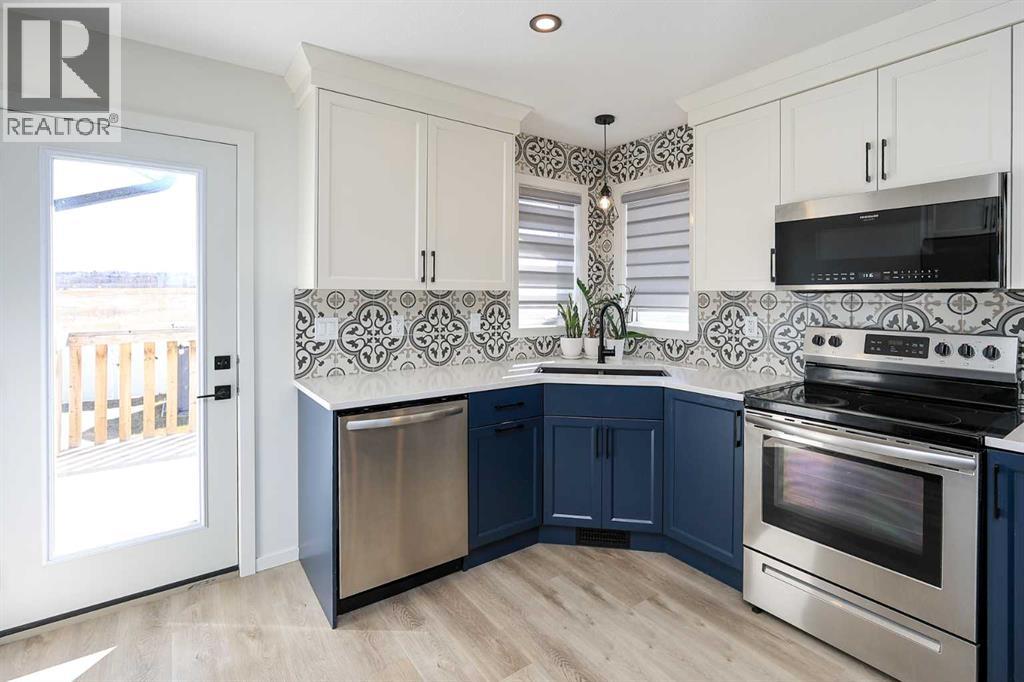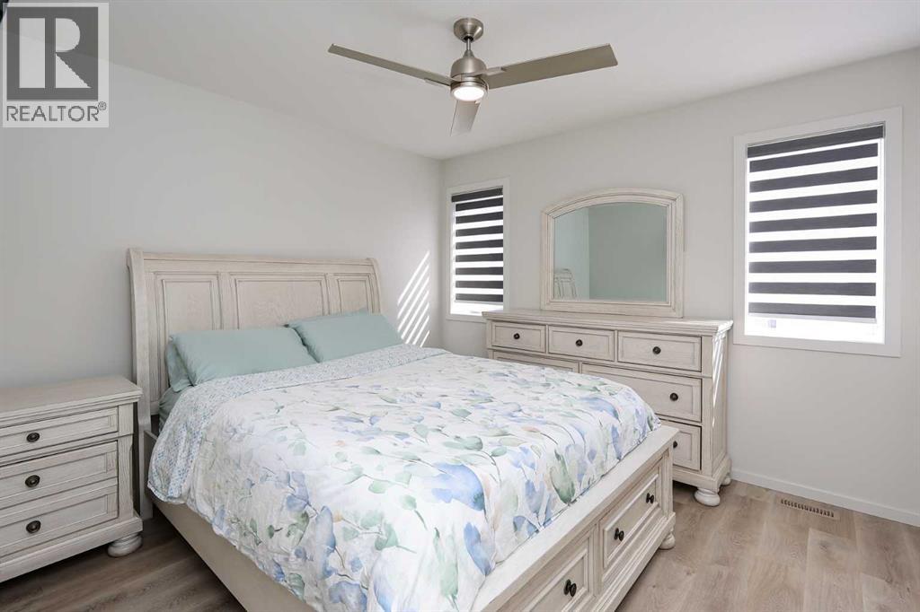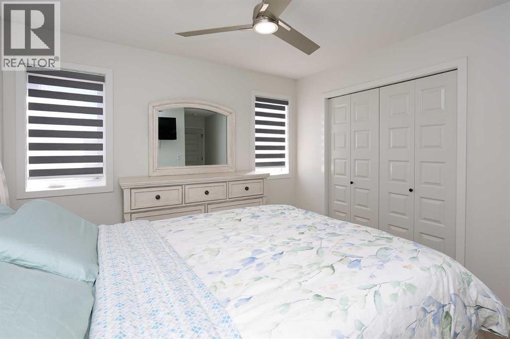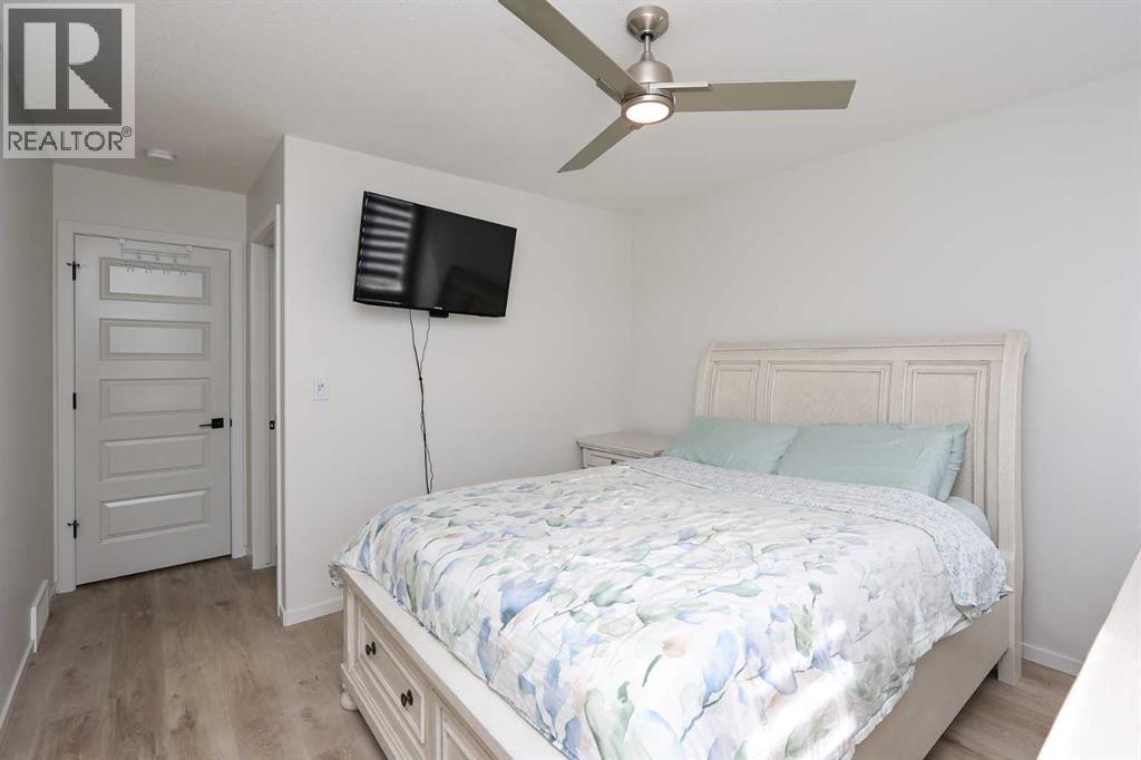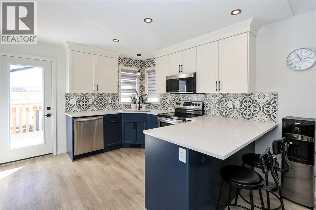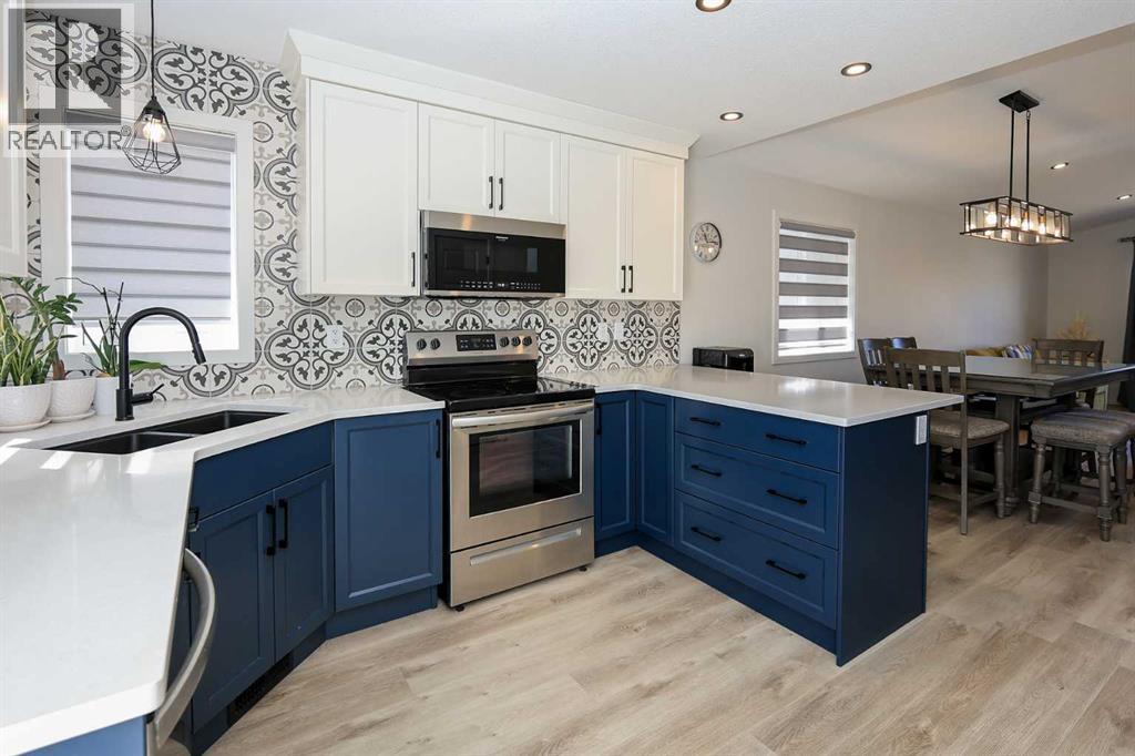 ORIGINAL OWNER HOME ~ FULLY DEVELOPED 4 BEDROOM, 3 BATHROOM BI-LEVEL IN TIMBER RIDGE ~ GATED RV PARKING ~ Landscaped front yard ~ Covered front entry leads to a welcoming foyer with over 12' ceilings and a large closet ~ Open concept main floor layout complemented by vinyl plank flooring ~ The living room features cathedral vaulted ceilings and a large west facing window that allows for natural light to fill the space ~ Easily host large gatherings in the dining room another large window ~ The stylish kitchen offers a functional layout with plenty of two toned cabinets, endless quartz countertops including a peninsula with a counter height eating bar, full tile backsplash, windows above the sink, wall pantry and a garden door to the deck ~ East facing deck with aluminum railings and space for storage below ~ The primary bedroom can easily accommodate a king size bed, has ample closet space, and a convenient 4 piece ensuite ~ Second main floor bedroom is also a generous size and is located next to the 4 piece main bathroom ~ The fully finished basement has large above grade windows, and offers a huge family room, 2 bedrooms, a 4 piece bathroom, walk-in storage closet, and laundry with more space for storage ~ Other great features include; central air conditioning, custom blinds, water softener ~ The fully fenced backyard is landscaped, has a garden shed, plenty of grassy yard space, and a gravel RV parking pad with double gates to the back alley access ~ Located in desirable Timber Ridge, known for it's walkability, numerous schools, parks, playgrounds, walking trails and shopping plazas with excellent shopping and dining ~ Easy access to Balmoral Golf Course, Canyon Ski Resort & Rec Area ~ Pride of ownership is evident! (id:63190)