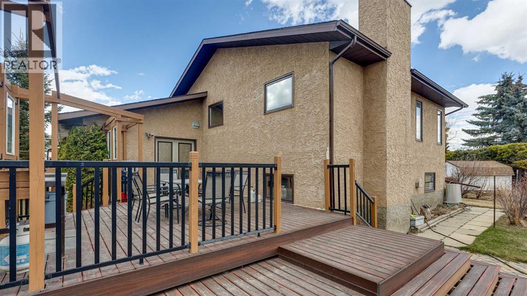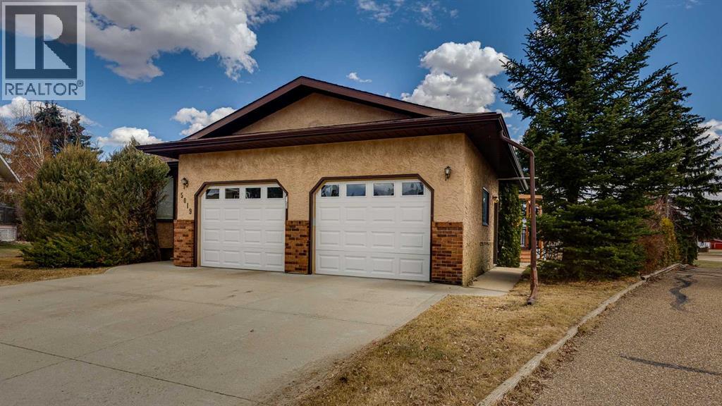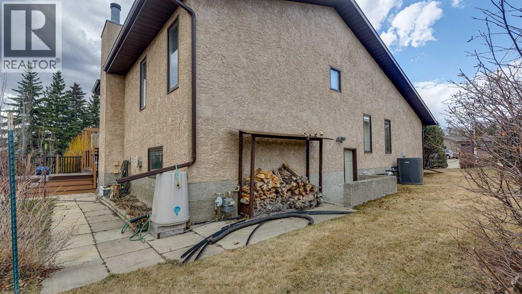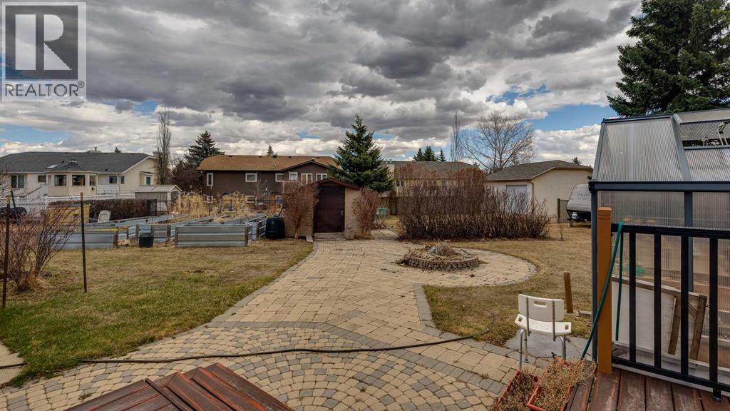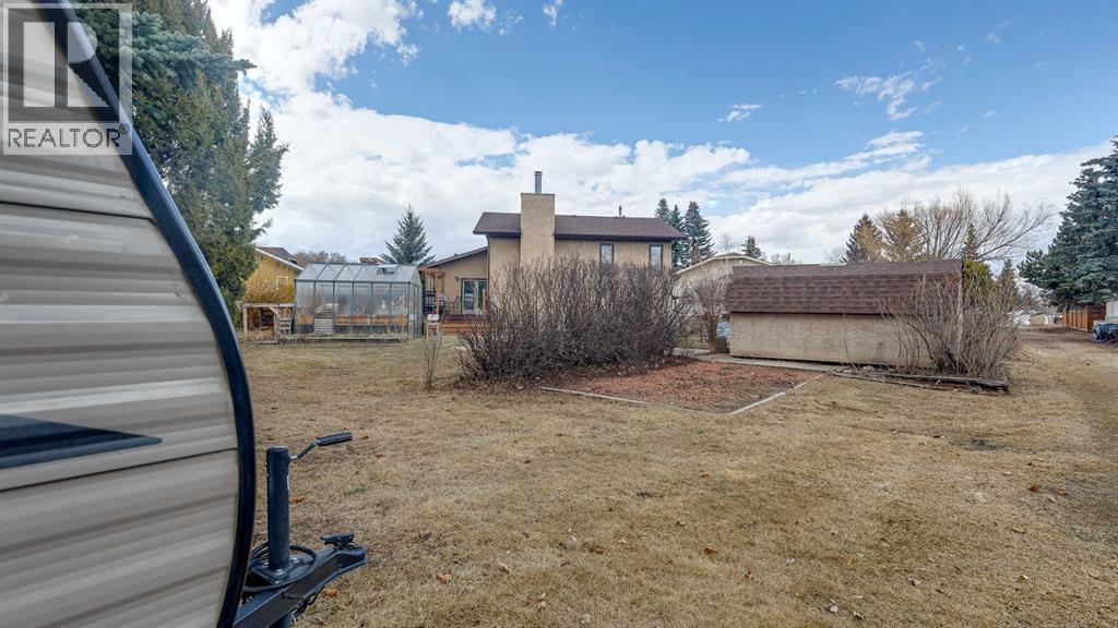 5019 60 Street Close is ideally located in one of Lacombe's most desirable neighborhoods. Curb appeal is high with the home's stucco and brick exterior.The private, pie-shaped backyard will check all the boxes for most homeowners. Parking and RV parking (with plenty of room for long trailers or a large motorhome) is easily accessible from the back lane. The large deck covered with composite deck material features privacy glass, built-in drink counters, and a natural gas line for the cooking grill. The paving stone patio area with fire pit provides additional space for rest, relaxation, and entertaining. Large trees offer some shade, but not too much, as the raised garden beds (included in sale) and greenhouse (also included) catch plenty of sun during the growing season. You will appreciate the extra storage space in the garden shed.Step inside through the front door to spacious entry and open living/dining area with vaulted ceilings. The modern kitchen features a large double sink, stainless steel appliances, gas top stove, striking hood fan, separate oven, glass tile backsplash, and luxurious stain-resistant countertops. A built-in workstation is smartly tucked into a light filled corner with pleasant outside views.Three bedrooms fill the upper level. The good-sized primary bedroom is connected to a stunning 3 piece bathroom. (All the bathrooms in this home have been significantly upgraded.) The tile work is impressive. The shower is barrier-free (no step is required). The other two bedrooms are perfect for little ones and/or guests. These rooms share a second, 3 piece bathroom on this floor. It too, has been renovated and features amazing tile work and a barrier-free shower.The spacious family room in the lower level has a wood burning fireplace faced with tile and brick. The fourth bedroom is located just off the family room. The 4 piece ensuite bathroom attached to the bedroom is impressive. Finished similarly to the upstairs bathrooms, this spa-like bathroom has a steam shower with sitting bench and a bonus jetted tub. The laundry room is situated on this level as well. The separate entrance to the side yard on this level is readily accessed from the front driveway or backyard parking pad.The 2nd lower level gives the homeowner further options. The largest space can function as a recreation area, theater room, craft area, or exercise room. There is storage galore on this level including a true cold room. The utility room is loaded with quality appliances: high efficiency furnace, hot water tank, water softener, automatic humidifier control, central vacuum, and heat recovery ventilator that provides energy efficient air exchange and improved air quality. All this, plus a high quality air conditioner.The attached heated garage (with drain) offers convenient access to the kitchen (for grocery days).5019 60 Street Close is a terrific family home. Homes with special yards like this are hard to find in the City of Lacombe. (id:63190)