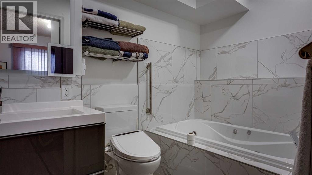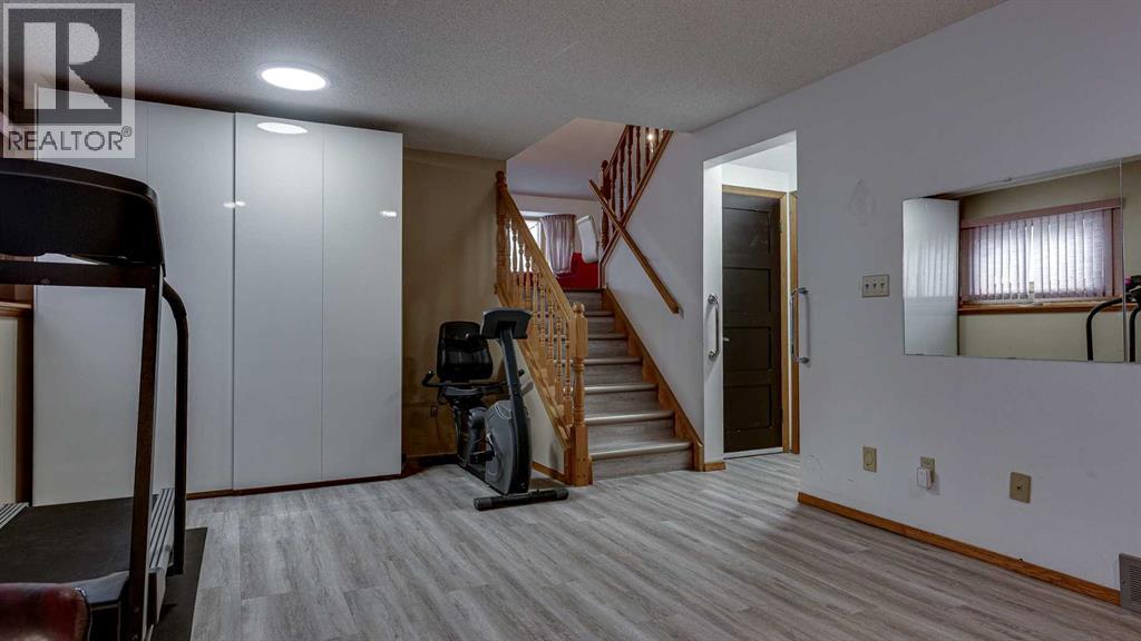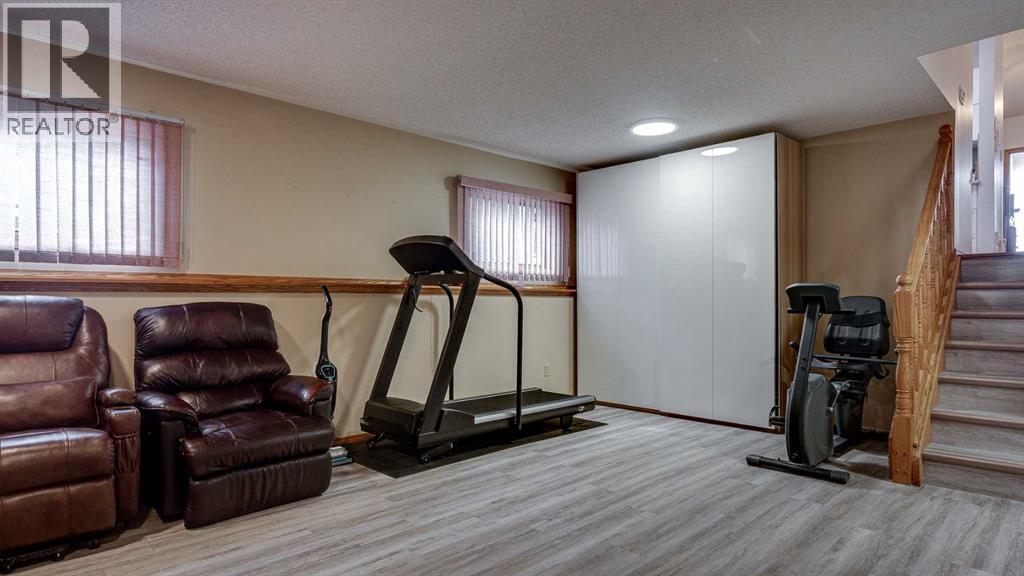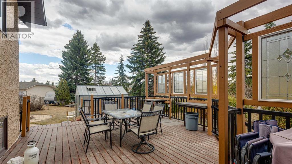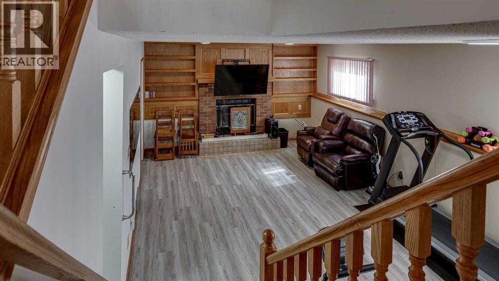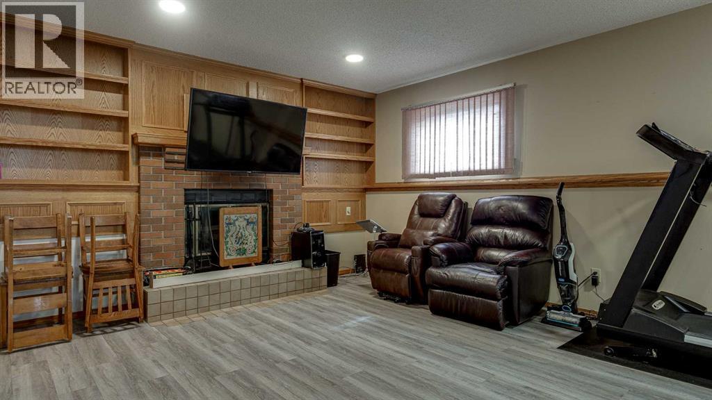 5019 60 Street Close is ideally located in one of Lacombe's most desirable neighborhoods. Curb appeal is high with the home's stucco and brick exterior.The private, pie-shaped backyard will check all the boxes for most homeowners. Parking and RV parking (with plenty of room for long trailers or a large motorhome) is easily accessible from the back lane. The large deck covered with composite deck material features privacy glass, built-in drink counters, and a natural gas line for the cooking grill. The paving stone patio area with fire pit provides additional space for rest, relaxation, and entertaining. Large trees offer some shade, but not too much, as the raised garden beds (included in sale) and greenhouse (also included) catch plenty of sun during the growing season. You will appreciate the extra storage space in the garden shed.Step inside through the front door to spacious entry and open living/dining area with vaulted ceilings. The modern kitchen features a large double sink, stainless steel appliances, gas top stove, striking hood fan, separate oven, glass tile backsplash, and luxurious stain-resistant countertops. A built-in workstation is smartly tucked into a light filled corner with pleasant outside views.Three bedrooms fill the upper level. The good-sized primary bedroom is connected to a stunning 3 piece bathroom. (All the bathrooms in this home have been significantly upgraded.) The tile work is impressive. The shower is barrier-free (no step is required). The other two bedrooms are perfect for little ones and/or guests. These rooms share a second, 3 piece bathroom on this floor. It too, has been renovated and features amazing tile work and a barrier-free shower.The spacious family room in the lower level has a wood burning fireplace faced with tile and brick. The fourth bedroom is located just off the family room. The 4 piece ensuite bathroom attached to the bedroom is impressive. Finished similarly to the upstairs bathrooms, this spa-like bathroom has a steam shower with sitting bench and a bonus jetted tub. The laundry room is situated on this level as well. The separate entrance to the side yard on this level is readily accessed from the front driveway or backyard parking pad.The 2nd lower level gives the homeowner further options. The largest space can function as a recreation area, theater room, craft area, or exercise room. There is storage galore on this level including a true cold room. The utility room is loaded with quality appliances: high efficiency furnace, hot water tank, water softener, automatic humidifier control, central vacuum, and heat recovery ventilator that provides energy efficient air exchange and improved air quality. All this, plus a high quality air conditioner.The attached heated garage (with drain) offers convenient access to the kitchen (for grocery days).5019 60 Street Close is a terrific family home. Homes with special yards like this are hard to find in the City of Lacombe. (id:63190)
