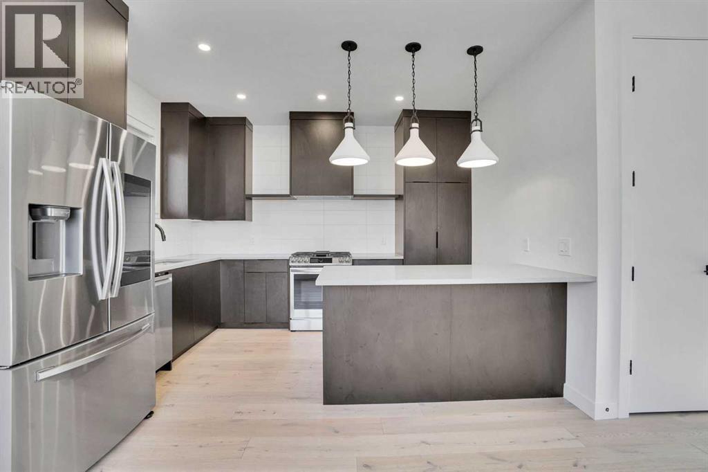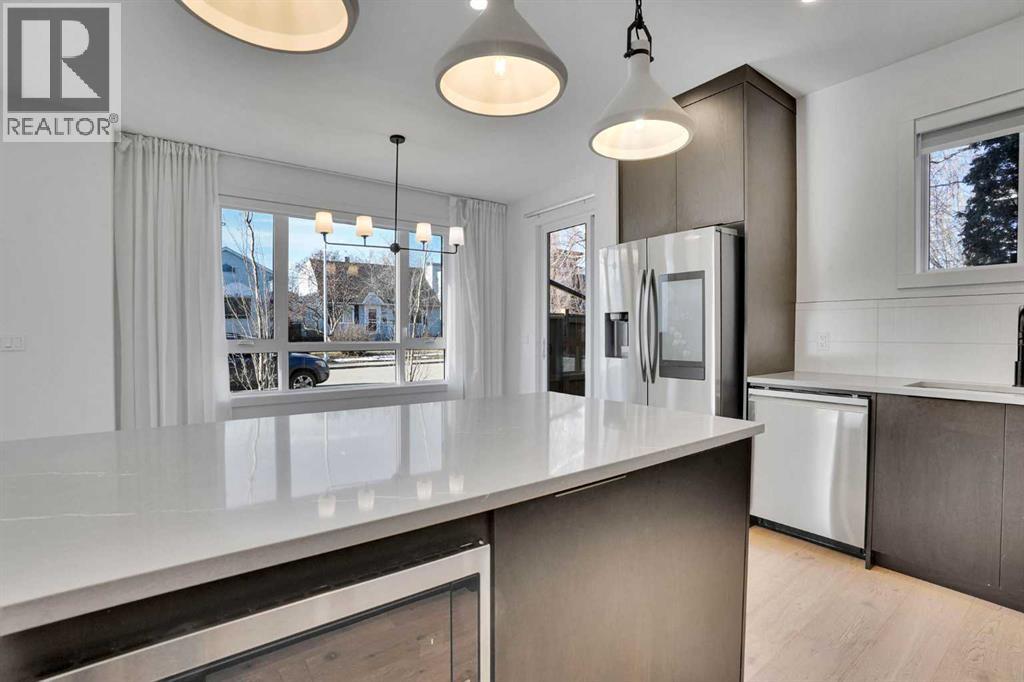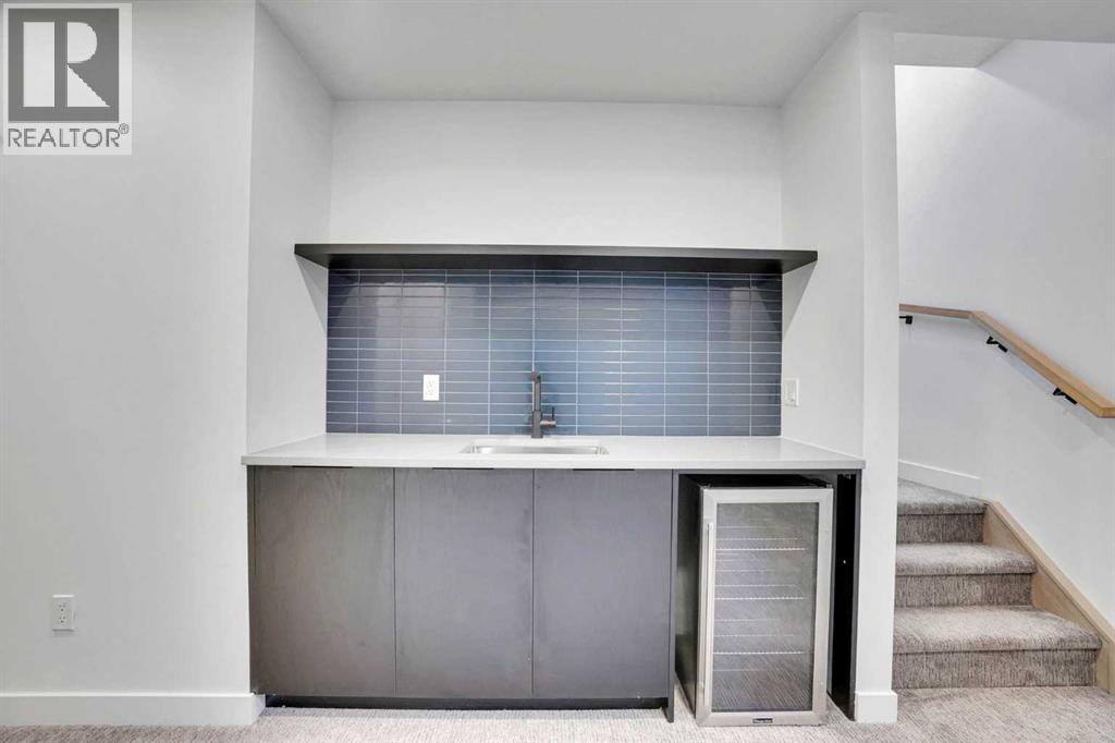 Welcome to the Brownstones of Mount Pleasant. Great opportunity to own a townhome w/ over 1700 sqft of living space in the heart of one of the top inner-city communities! This modern brownstone home designed by New Century Design and MartinLee Designs features an open concept layout with White Oak engineered hardwood floors throughout the main level, textured finishes, and custom spatial enhancing elements. The chef-inspired kitchen features a large breakfast bar, quartz countertops, and a stainless steel appliance package that includes a gas stove. As you head upstairs, you will find 2 bedrooms with ensuite bathrooms and a laundry room with built-in shelving and ample storage. The large PRIMARY bedroom is designed to fit a king-size bed, with his and hers walk-in closets and a 4-piece ensuite. The basement is fully developed with a third bedroom, a spacious recreation room, and a wet bar. Additional features include a BBQ gas line on the patio, an electric fireplace in the living room, built-in all closets, innovative home features (NEST and doorbell), and A/C rough-ins. With an 85 Bike score, most errands can be accomplished without a car. These units are also a short distance to downtown, a 5-minute drive, or just a 13-minute bike ride. Right around the corner from amazing restaurants and cafes such as 4TH SPOT KITCHEN AND BAR, JOHNS BREAKFAST & LUNCH, TURCA CAFE & MARKET, (id:63190)