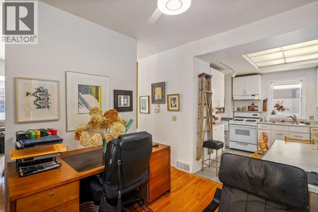 A one-of-a kind residence ideally situated in the heart of the eclectic Mission district; set along a pedestrian-oriented corridor across from a school and bicycle network, steps from the Elbow River, a couple of blocks from the amenities along Fourth Street and 17th Avenue, and mere minutes to the Erlton C-train station and Calgary Stampede Grounds. This charming 2.5 storey character home is full of life, with narrow oak hardwood throughout and natural light that spills across each level through framed glass doors. Experience the beauty of nature from the comfort of your own home with a covered front patio/sunroom, upper balcony, back deck, and private west-facing yard. The main floor includes a cozy front living room, bright kitchen and adjacent dining space, and powder room tucked underneath the staircase. Ascend to the second level, featuring two sizeable bedrooms, a full bathroom, and a den area with access to the spacious balcony. The third level loft is a versatile alcove with vaulted ceilings and skylights, perfect for an additional bedroom, fitness area, artist studio, or anything else that fits your unique lifestyle. The basement includes a large recreation space, storage, laundry, separate entrance and an additional full bathroom. A convenient driveway on the north side can accommodate two vehicles, and an additional private entrance on the south offers potential to convert the walk-up basement into an illegal or legal suite. This home has been immaculately maintained and updated over the years, including upper windows, drywall & plumbing (1990), addition of double paned windows (2009), roof (2022), outside paint (2022), furnace (2023), and gutter (2024). Enjoy a home full of history that is still exceptionally efficient and completely mechanically and structurally sound, with energy costing $200 in the summer months and $350 in the winter. This property is a true testament to the urban living experience in an awe-inspiring natural setting, with winding p athways, unparalleled views and an abundance of inner city amenities at your doorstep. (id:63190)