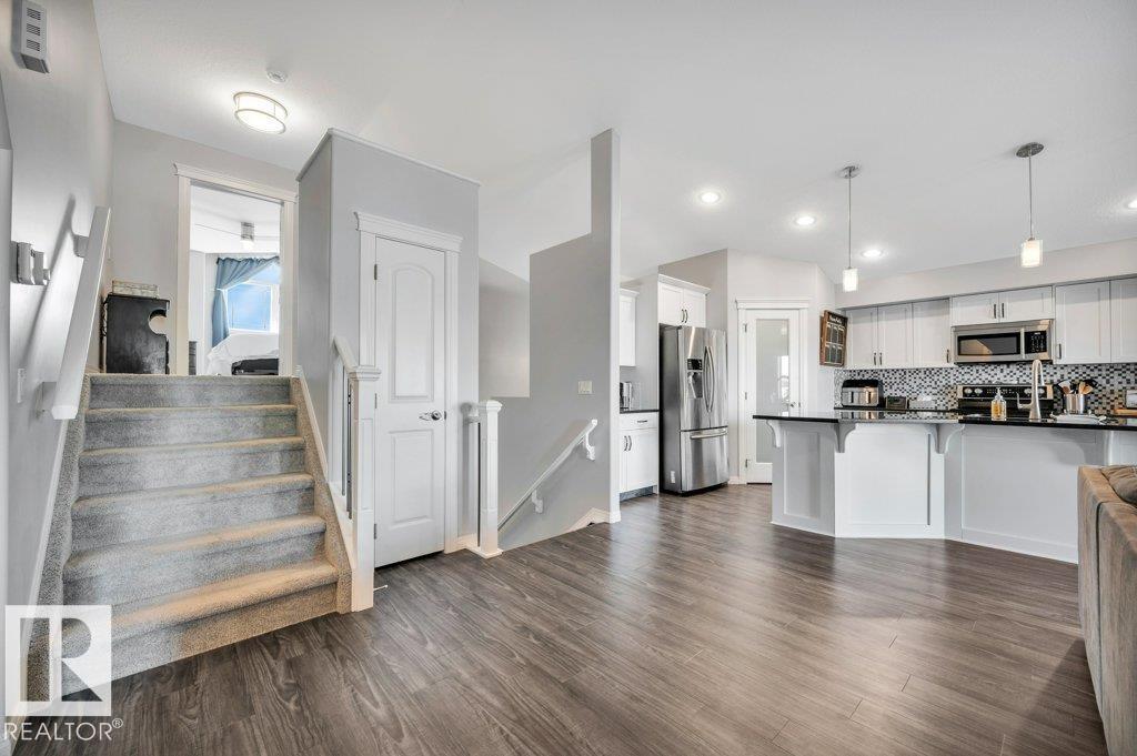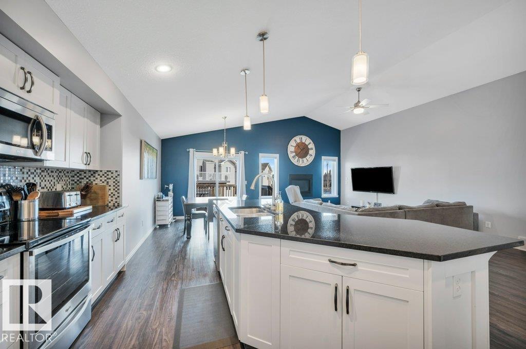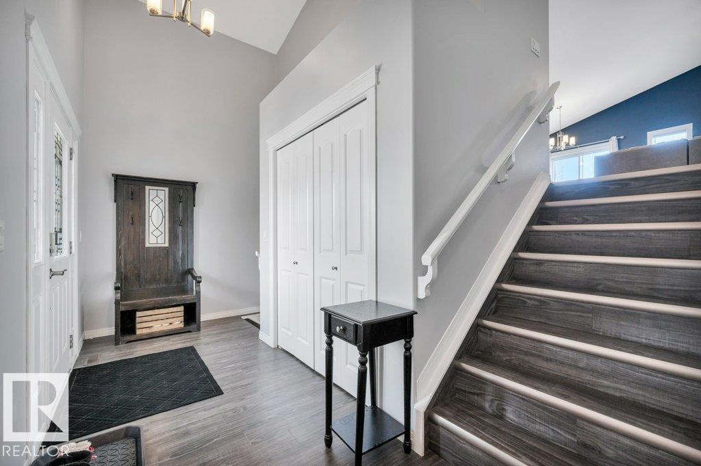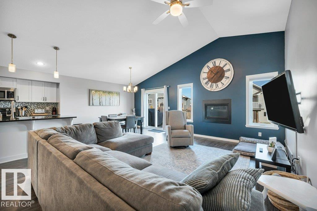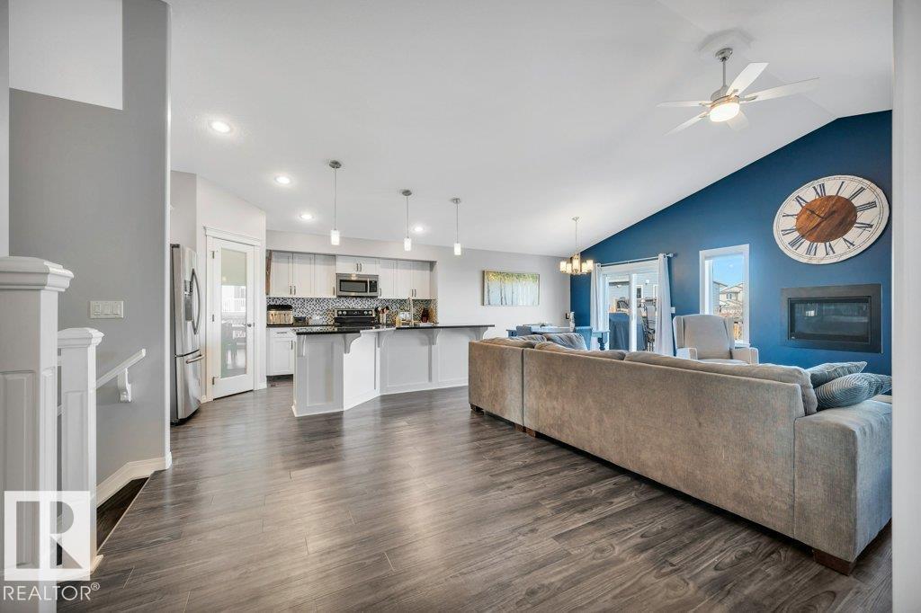 BIG, BEAUTIFUL BI-LEVEL offering a total of 2757 sqft of living space, located in a quiet, family-friendly neighbourhood in the growing community of Gibbons. Bright, generous entry of the home invites you to the main level, that features vinyl plank flooring, fresh paint, impressive vaulted ceilings & an open-concept layout, ideal for everyday living & entertaining. The spacious living room complimented by cozy gas fireplace, flows into the dining area & kitchen. Good working kitchen highlights gorgeous, granite countertops with eat up bar, tile backsplash, corner pantry & SS appliances. Step out onto the deck & enjoy the backyard space w/ greenhouse, dog run, storage under the deck. Find 2 Bedrooms & 4pc Bath on the home's main level. Large Primary Bedroom on upper level presents walk-in closet, 4pc ensuite w/ corner jacuzzi tub & separate shower. Handy laundry room at entrance level. Expansive basement ready for your design. Close to schools, parks, trails & amenities. 20 min to Fort Sask & N. Edmonton (id:63190)