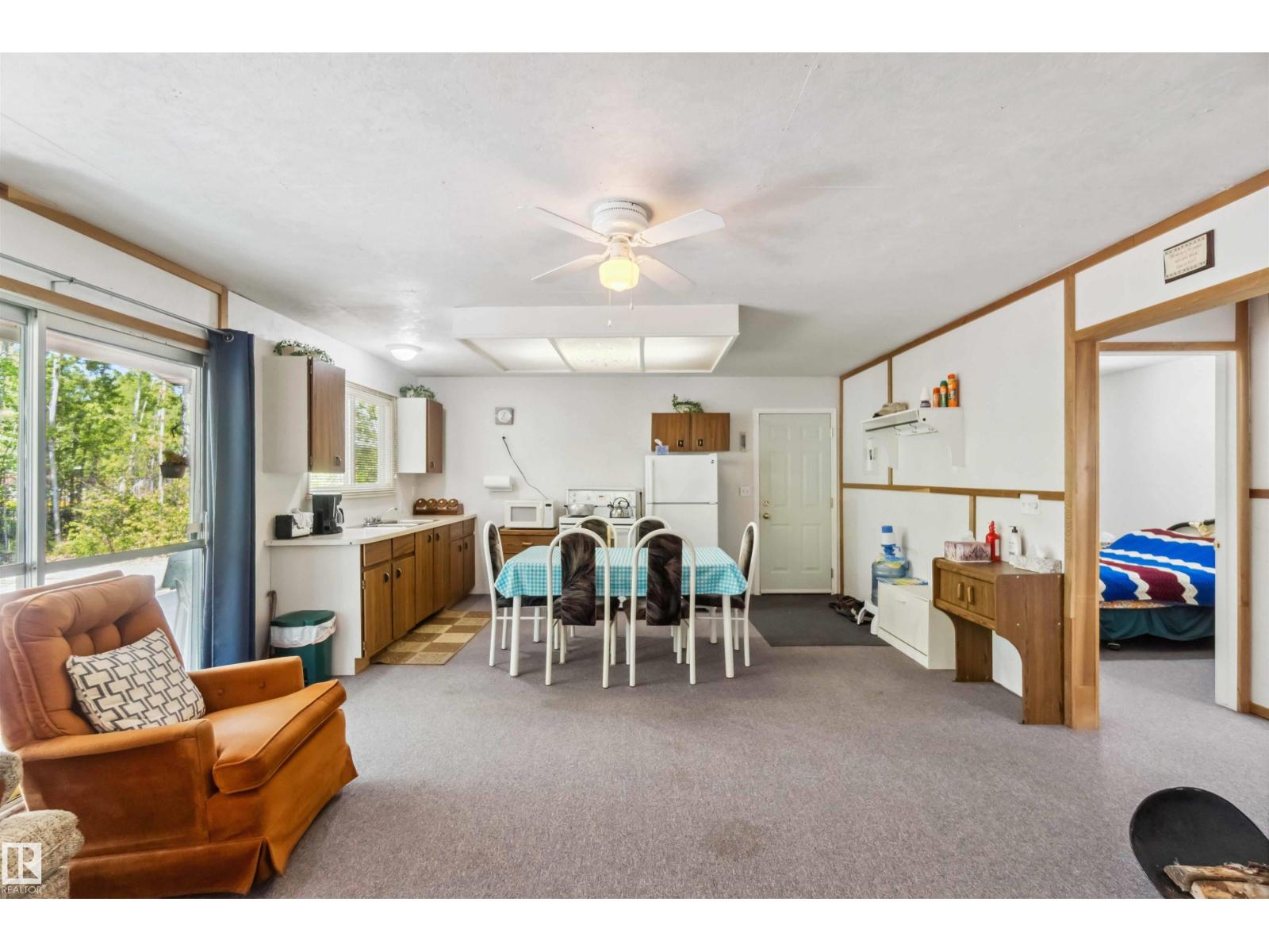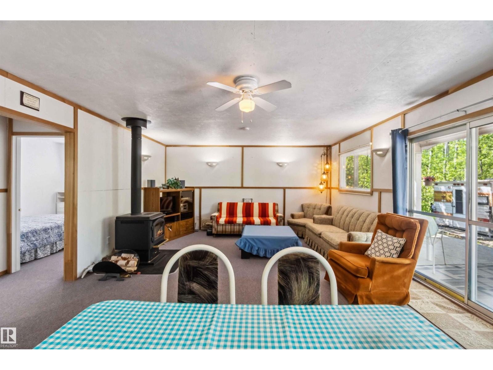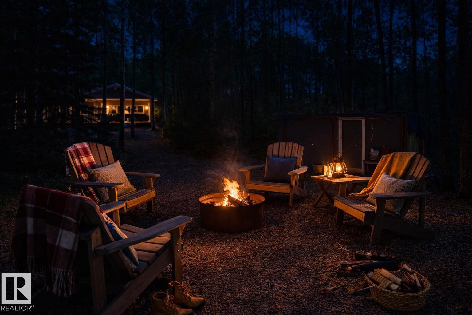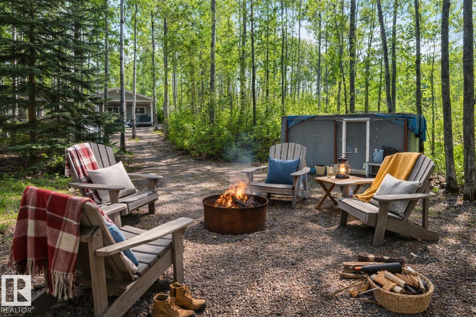 The best of both worlds — just 75 minutes from Edmonton. Minutes from Thunder Lake, this cabin sits on a private, treed 0.51-acre lot behind a gated driveway — & it might be the most affordable escape you'll ever own. Power to the cabin, no water or gas bills, and an outhouse on the property. Simple, low-maintenance, and ready for you to show up and enjoy. Two bedrooms & a bath give you everything you need for the little time you'll spend inside. The days here fill themselves. Quads, ATVs, and golf carts allowed to be driven on the roads, so you can ride straight from your yard to the trails, the boat launch, or the beach without loading anything up. No hauling. Just go. Come evening, the fire pit becomes the main event. Summer nights that stretch on, stars you forgot existed, and nowhere you need to be. The included furniture means you walk in ready — and the bonus camper included in the sale gives you extra sleeping space or storage for gear. With plenty of room for your trailer and your friends' too. (id:63190)