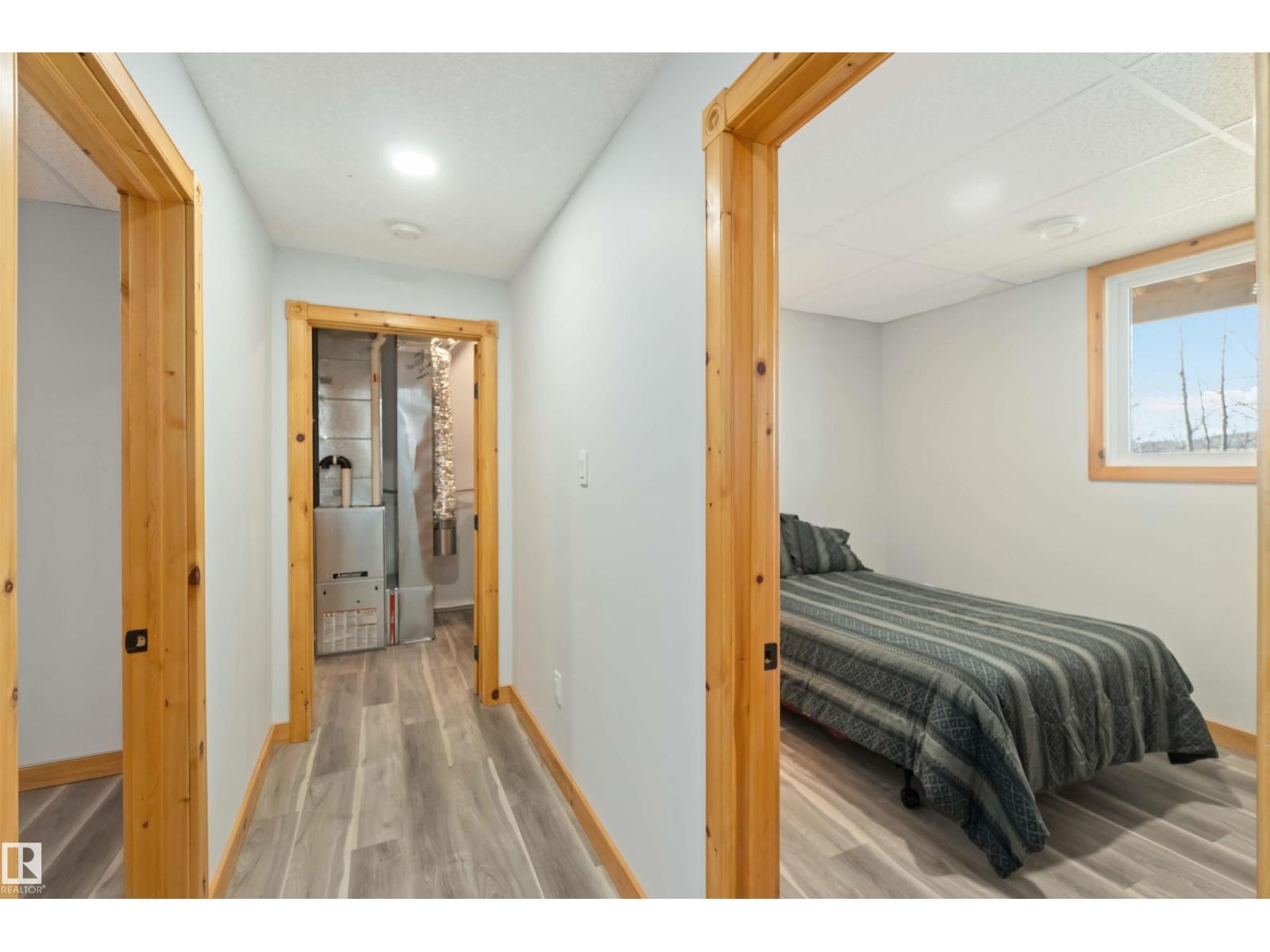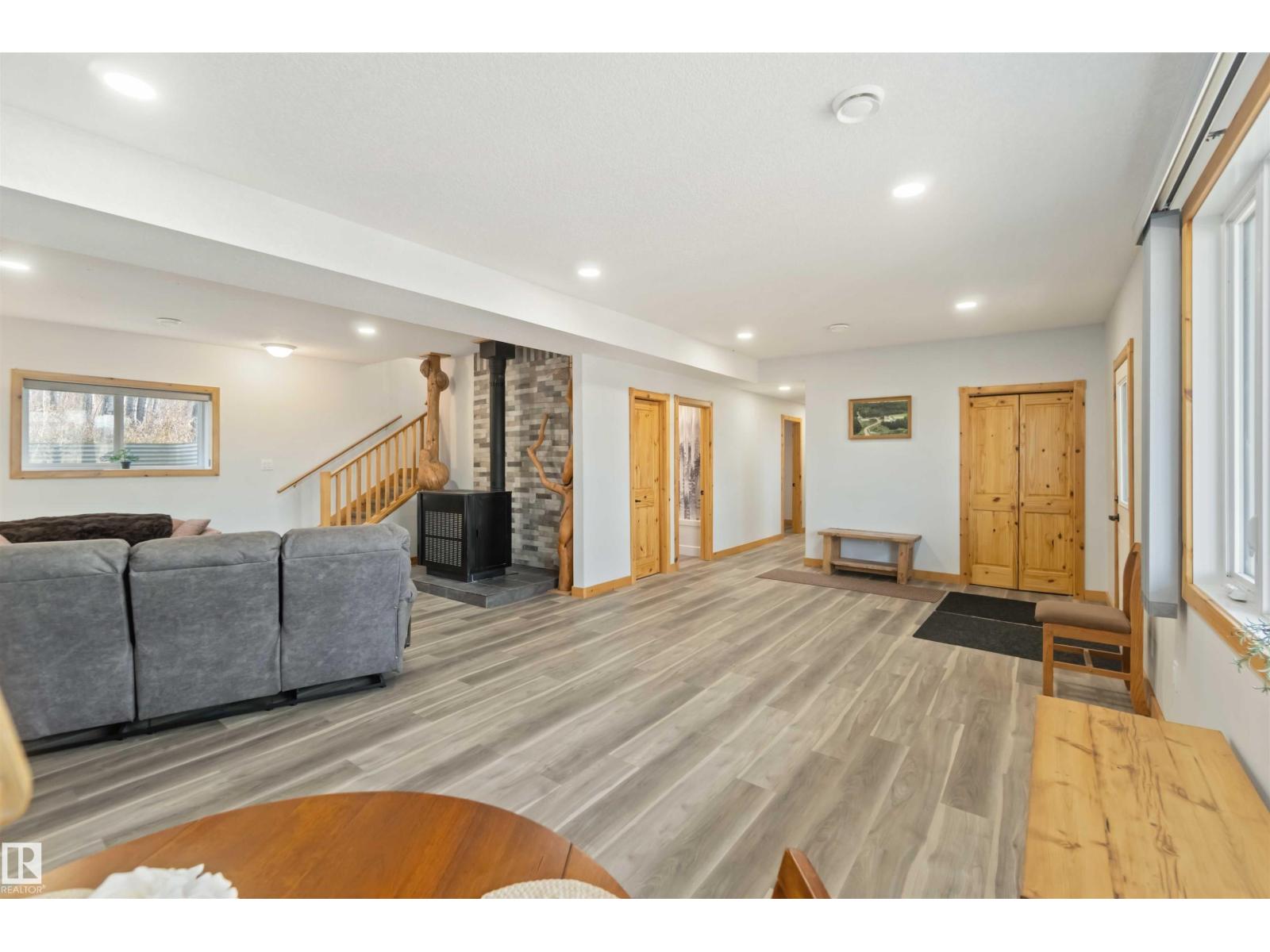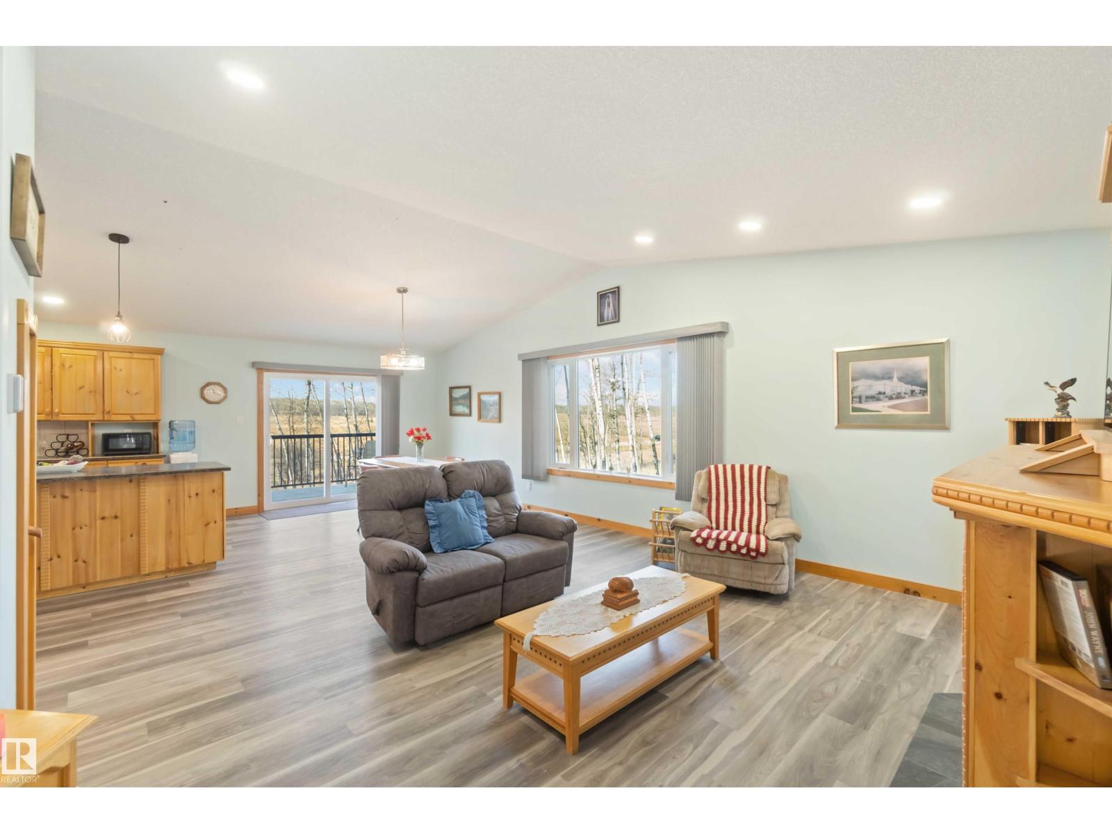 Discover the perfect balance of comfort, freedom & functionality. This hillside bungalow with a walkout basement sits on 6.13 acres of privacy and modern amenities. On the main level you’ll find 2 bedrooms & 2 full baths. The primary offers a spacious retreat with a walk-in shower & walk-in closet. The open-concept main floor kitchen, living & dining area features handcrafted SOLID PINE cabinetry, & a large island, gas fireplace & outdoor balcony access - perfect for family connection or weekend entertaining. Downstairs, the walkout basement includes cozy IN FLOOR heat, a wood-burning stove, & flex space for games, kids or extended family. Whether you’re a hobbyist, homesteader, or growing family, this home was designed to work as hard as you do. Outside, a heated triple garage gives you the freedom to take on projects year-round; from mechanics & woodworking to storing your toys. Mature trees, close proximity to the highway, a lake minutes away, this acreage blends modern comfort with everyday adventure. (id:63190)